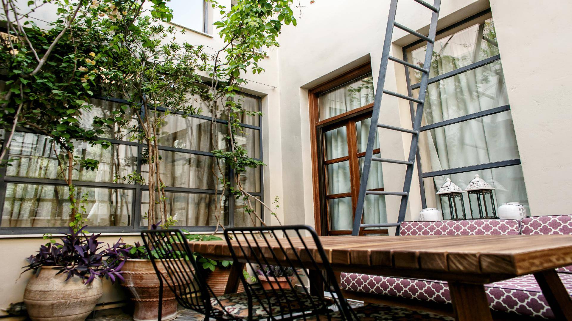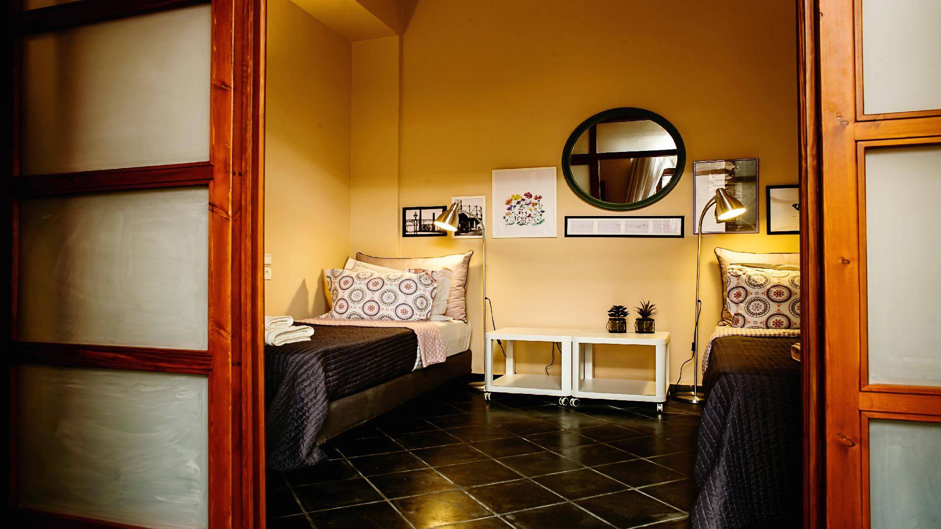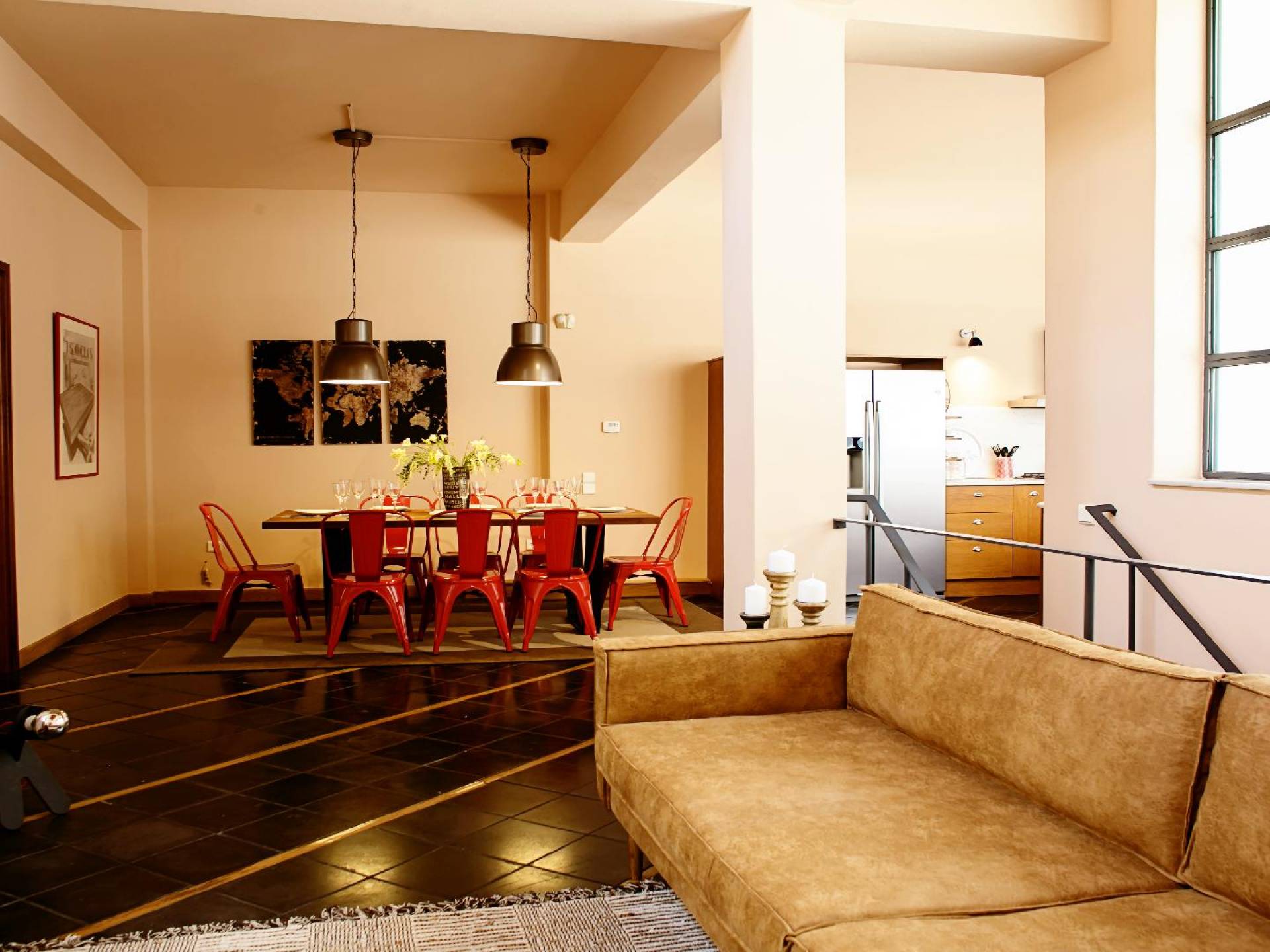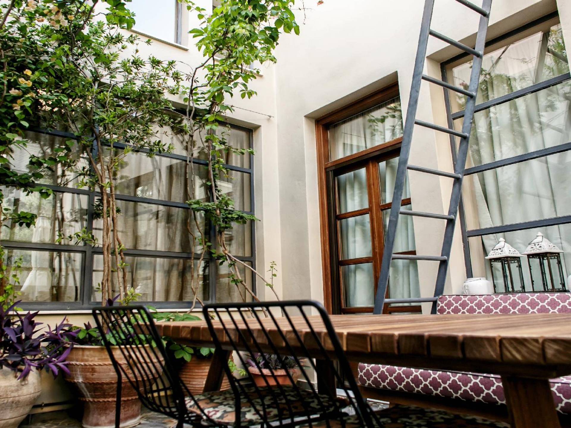 Το δάπεδο με ξύλινες οροφές διαθέτει πλήρως εξοπλισμένη κουζίνα, τραπεζαρία για 8 άτομα, καθιστικό και βεράντα με επιπλέον τραπεζαρία-καθιστικό. Αυτός ο όροφος αποτελείται επίσης από 2 δίκλινα υπνοδωμάτια με κρεβάτια king size και ένα κοινόχρηστο μεγάλο μπάνιο με μπανιέρα που μπορεί να προσεγγιστεί με μια μοναδική μεταλλική γέφυρα που διασχίζει την πισίνα. Όλα τα δωμάτια έχουν πρόσβαση στη βεράντα ή το αίθριο, είναι άνετα με ελάχιστη διακόσμηση, μοναδικά χρώματα και καλαίσθητες λεπτομέρειες. Στρώστε το τραπέζι έξω, μοιραστείτε το φαγητό και τη συγκινητική εμπειρία με τους αγαπημένους σας. Or, μπορείτε όλοι να επισκεφθείτε τα μπαρ-εστιατόρια που βρίσκονται κοντά. Ας μην ξεχνάμε, το πολυσύχναστο κέντρο είναι μόλις λίγα μέτρα μακριά και η νύχτα είναι πάντα νέα εκεί!