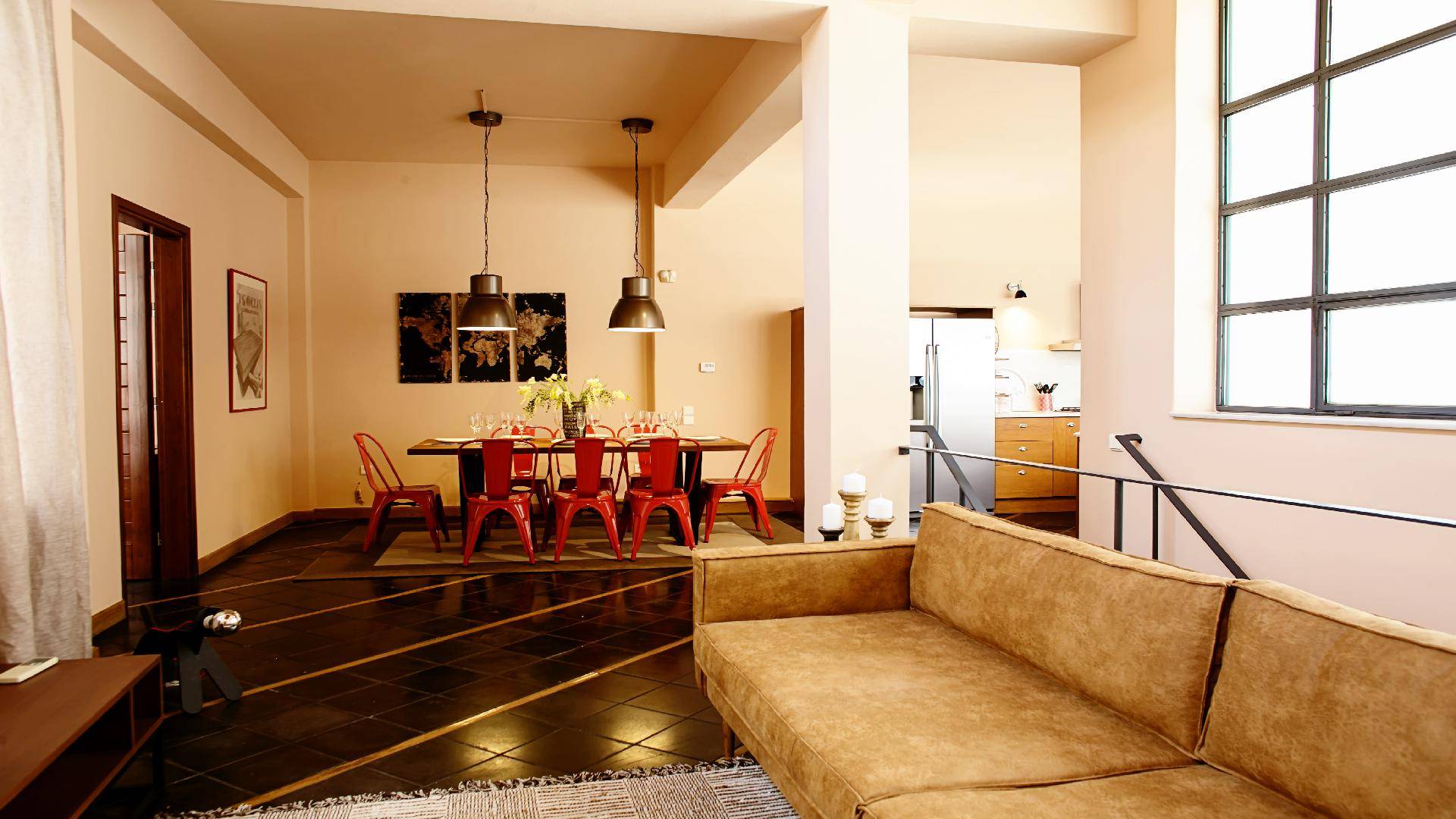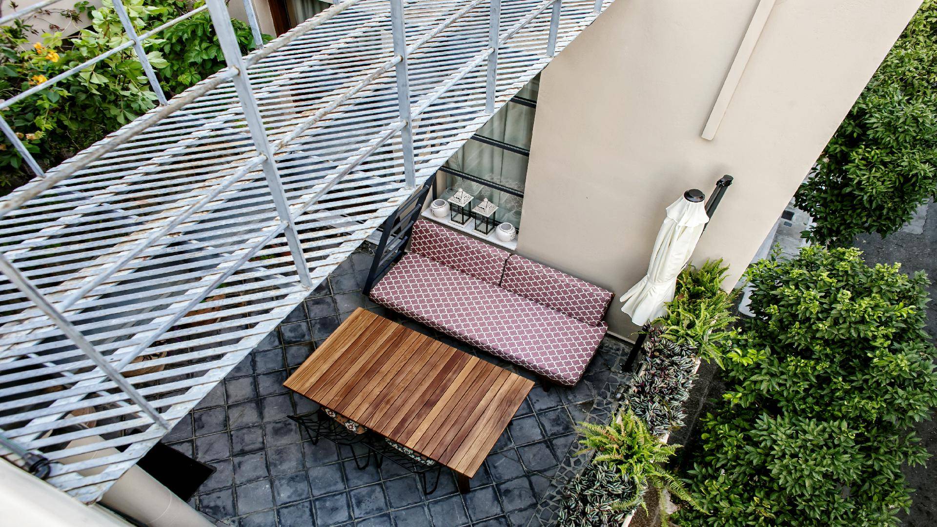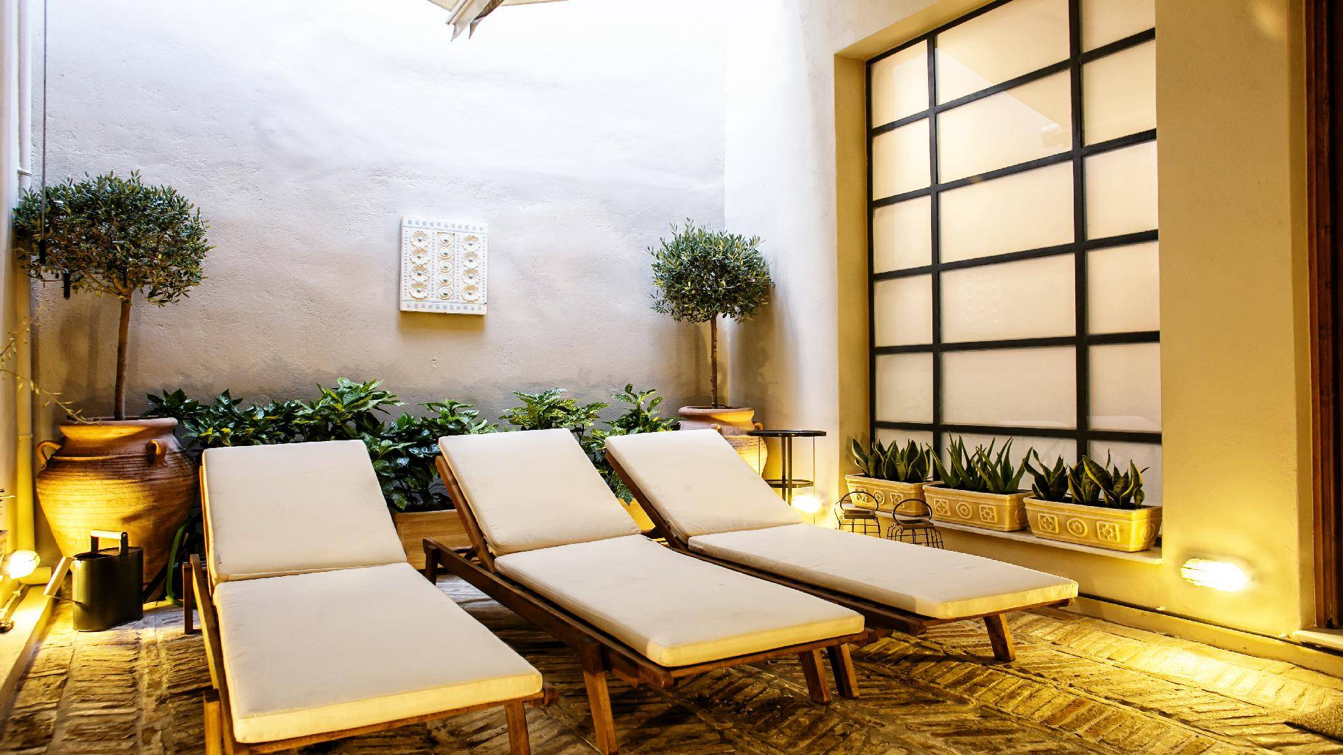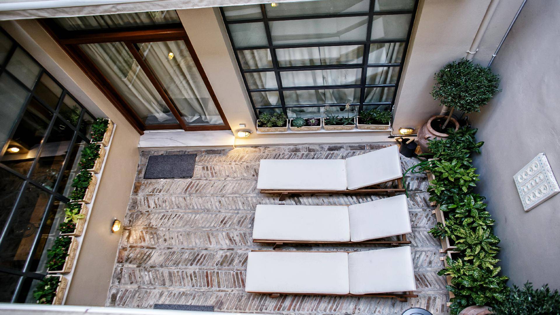 Το δάπεδο με ξύλινες οροφές διαθέτει πλήρως εξοπλισμένη κουζίνα, τραπεζαρία για 8 άτομα, καθιστικό και βεράντα με επιπλέον τραπεζαρία-καθιστικό. Αυτός ο όροφος αποτελείται επίσης από 2 δίκλινα υπνοδωμάτια με κρεβάτια king size και ένα κοινόχρηστο μεγάλο μπάνιο με μπανιέρα που μπορεί να προσεγγιστεί με μια μοναδική μεταλλική γέφυρα που διασχίζει την πισίνα. Όλα τα δωμάτια έχουν πρόσβαση στη βεράντα ή το αίθριο, είναι άνετα με ελάχιστη διακόσμηση, μοναδικά χρώματα και καλαίσθητες λεπτομέρειες. Στρώστε το τραπέζι έξω, μοιραστείτε το φαγητό και τη συγκινητική εμπειρία με τους αγαπημένους σας. Or, μπορείτε όλοι να επισκεφθείτε τα μπαρ-εστιατόρια που βρίσκονται κοντά. Ας μην ξεχνάμε, το πολυσύχναστο κέντρο είναι μόλις λίγα μέτρα μακριά και η νύχτα είναι πάντα νέα εκεί!