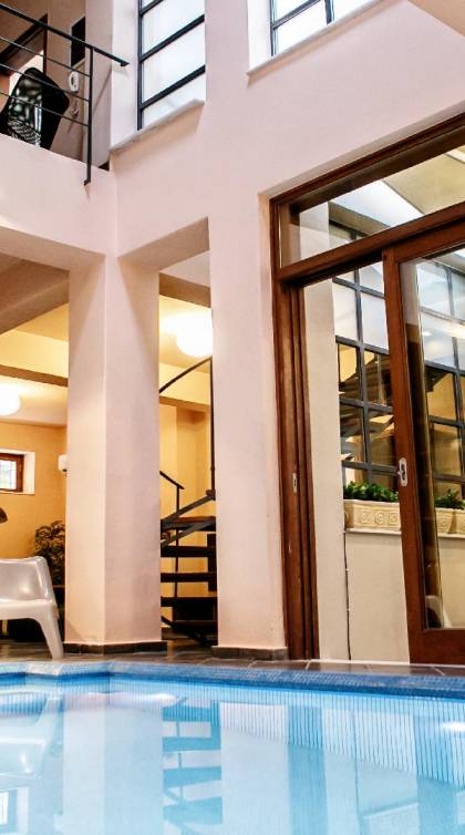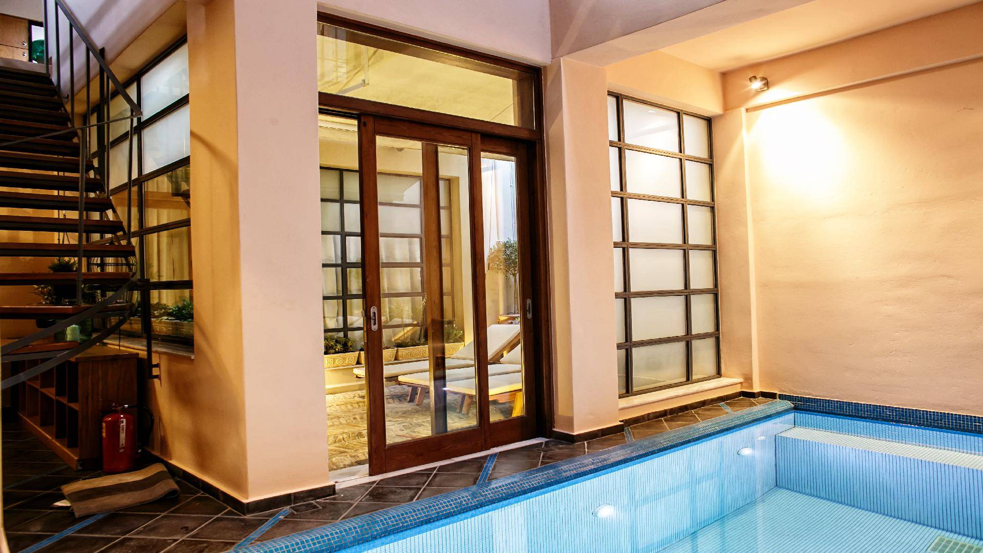 Το Meliti Villa διαθέτει μεγάλους ανοιχτούς κοινόχρηστους χώρους, μια πλήρως εξοπλισμένη κουζίνα με μεγάλα παράθυρα με θέα στο υποκείμενο αίθριο δίπλα στην εσωτερική πισίνα. Ο χώρος της κουζίνας επικοινωνεί με ένα ευρύχωρο σαλόνι-τραπεζαρία και έχει πρόσβαση στη βεράντα. Μεγάλη ποικιλία ανέσεων, καθιστούν τη Villa Meliti ιδανική επιλογή για οικογένειες, φίλους ή ακόμα και εταιρείες που επιθυμούν να κοινωνικοποιηθούν, ενώ ταυτόχρονα διατηρούν την ιδιωτική τους ζωή όταν χρειάζεται. Οι επισκέπτες θα συγκεντρωθούν γύρω από τη μοναδική εσωτερική πισίνα της βίλας στο κέντρο της πόλης και θα έχουν ατελείωτες στιγμές διασκέδασης. Το ισόγειο περιλαμβάνει ένα ευρύχωρο σαλόνι και δύο υπνοδωμάτια με κοινόχρηστο μπάνιο. Το ένα με διπλό κρεβάτι και το άλλο με δύο μονά κρεβάτια. Αυτός ο όροφος διαθέτει επίσης αίθριο με ξαπλώστρες και φυσικά την υπέροχη εσωτερική πισίνα που διαθέτει μηχανισμό «κολύμπι ενάντια στο ρεύμα».