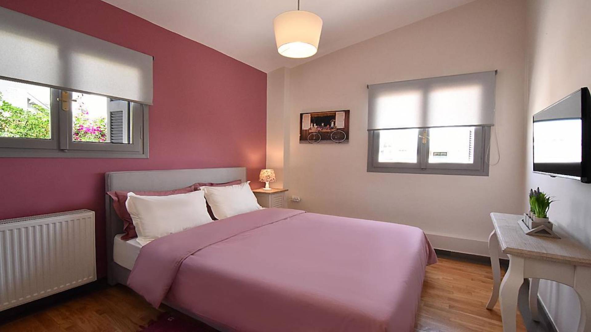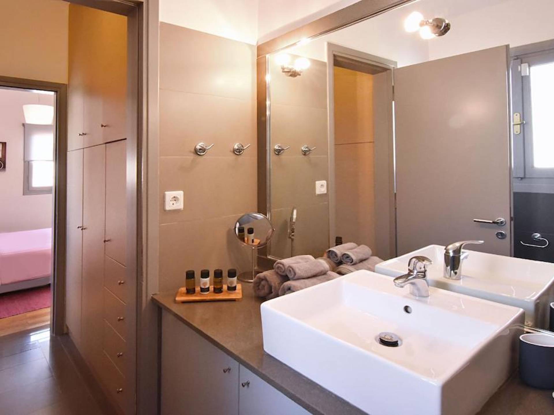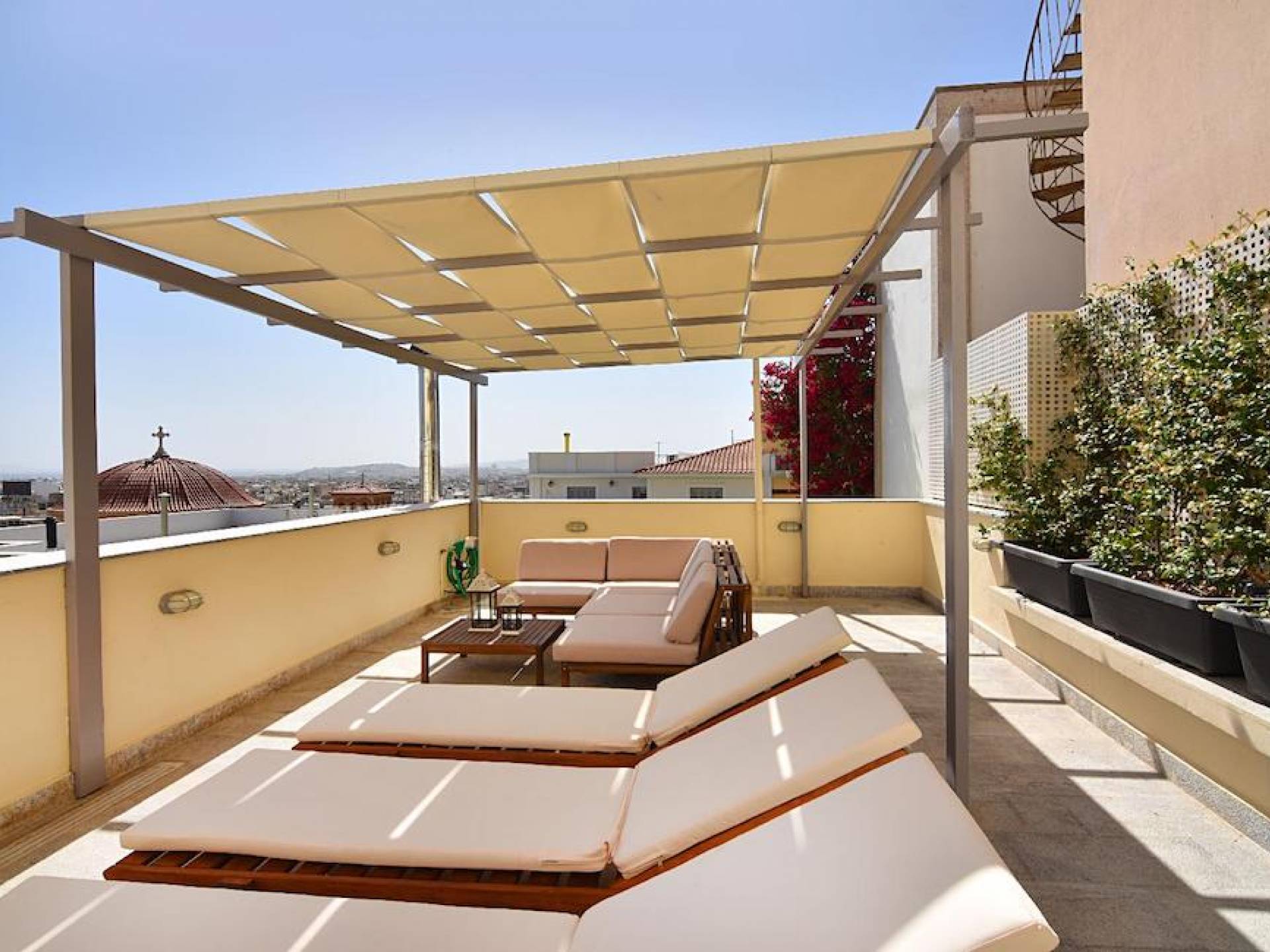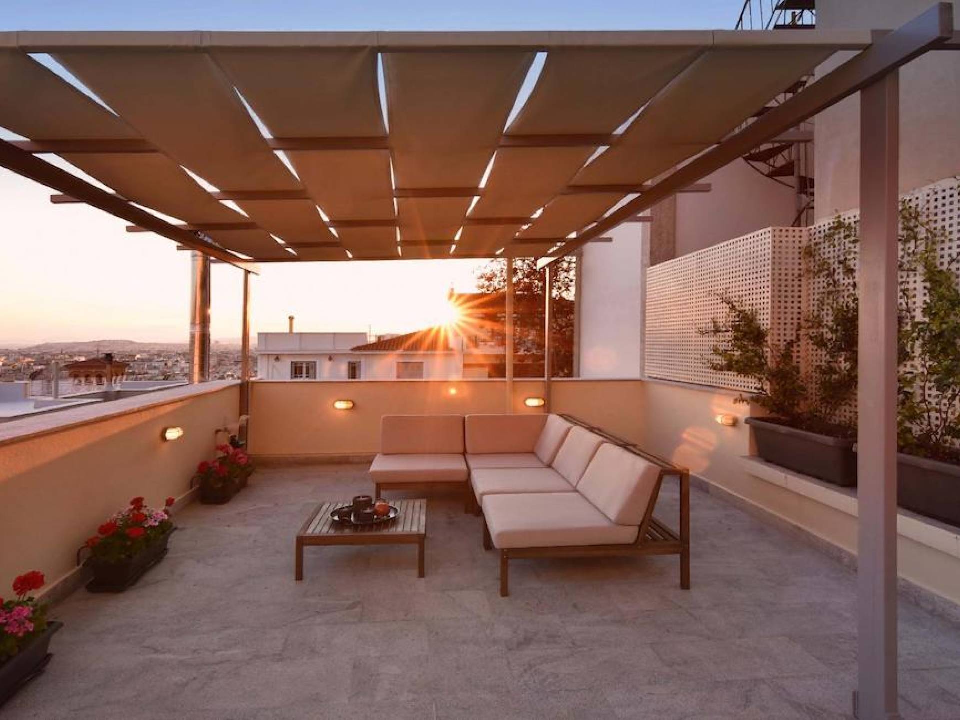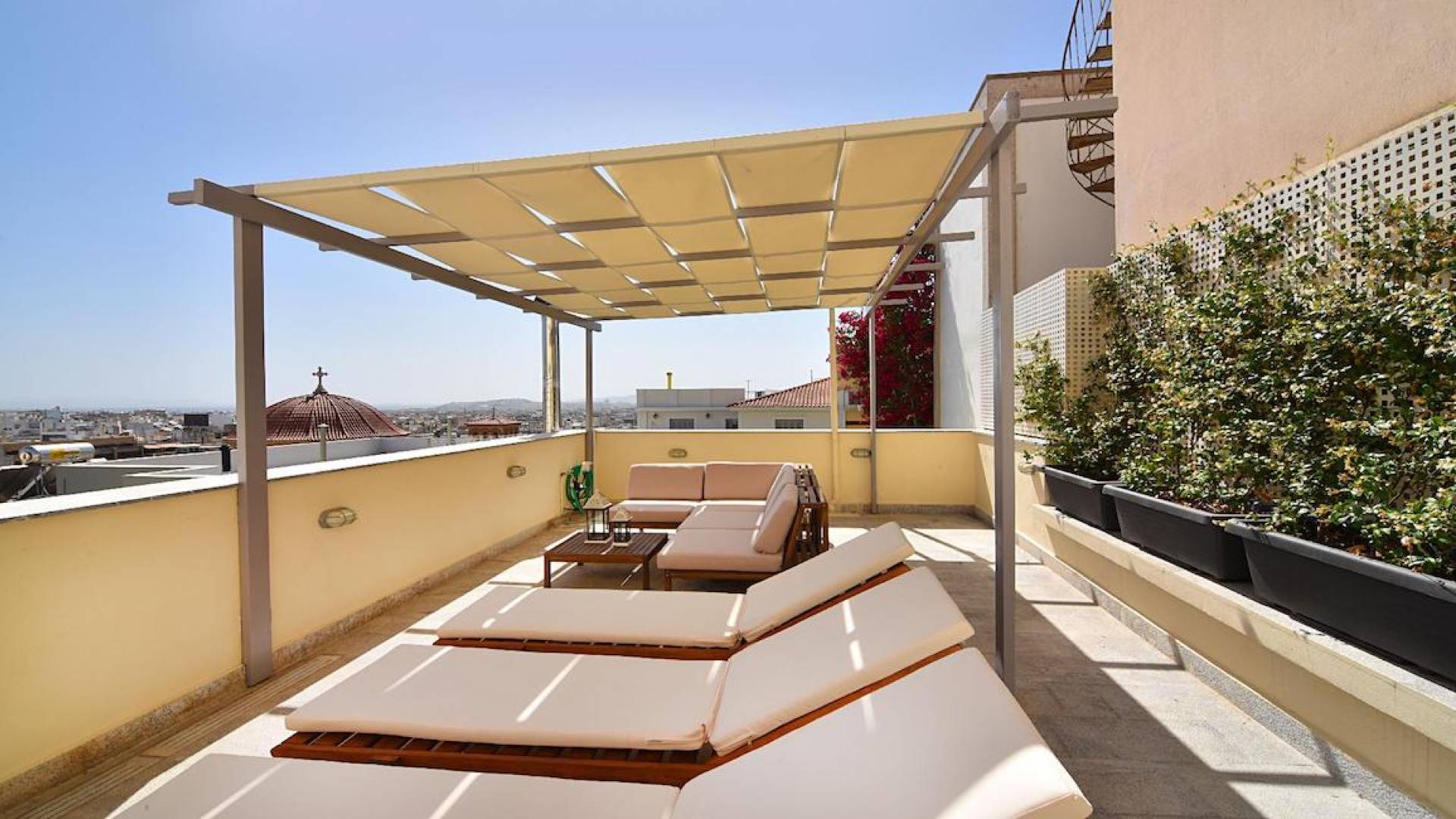 Ο πρώτος όροφος διαθέτει ένα υπνοδωμάτιο king size με ιδιωτικό μπάνιο, ένα υπνοδωμάτιο με διπλό κρεβάτι και ένα δωμάτιο με 2 μονά κρεβάτια που μοιράζονται ένα μπάνιο με ντους. Ο δεύτερος όροφος διαθέτει ένα μεγάλο υπνοδωμάτιο με διπλό κρεβάτι και ιδιωτικό μπάνιο με μπανιέρα τζακούζι. Αυτός ο όροφος διαθέτει επίσης υπέροχο roof garden με ξαπλώστρες και καθιστικό με σκιά με πέργκολα που προσφέρει υπέροχη θέα στην Αθήνα και μαγευτικά ηλιοβασιλέματα.