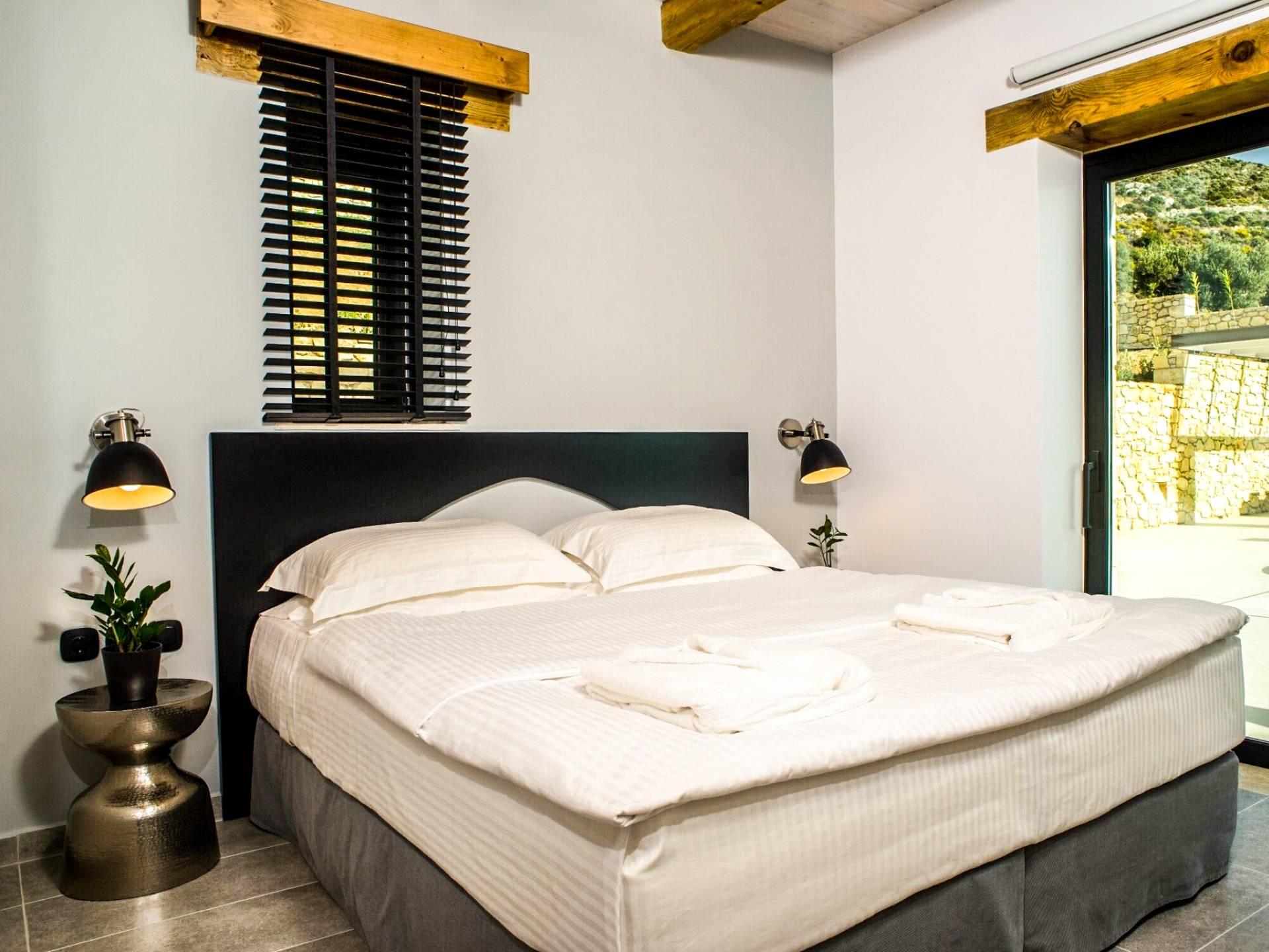 Το Aeolian Villa 2 Crete αποτελείται από τρία υπνοδωμάτια με ιδιωτικό μπάνιο. Τα υπνοδωμάτια κυριαρχούν στα χρώματα του κρητικού τοπίου. Το γκρίζο των βραχωδών κρητικών βουνών, το καφέ της άμμου και το πράσινο των ελαιόδεντρων. Τα δύο υπνοδωμάτια είναι εξοπλισμένα με king-size κρεβάτια και το τρίτο έχει δύο μονά κρεβάτια που έχουν μετατραπεί σε ένα king-size κρεβάτι. Όλος ο εξοπλισμός λευκών ειδών φέρει την υπογραφή της COCO-MAT, γνωστής για τα υψηλής ποιότητας βιολογικά προϊόντα της.