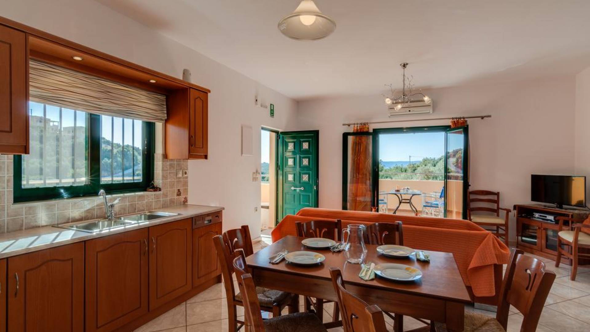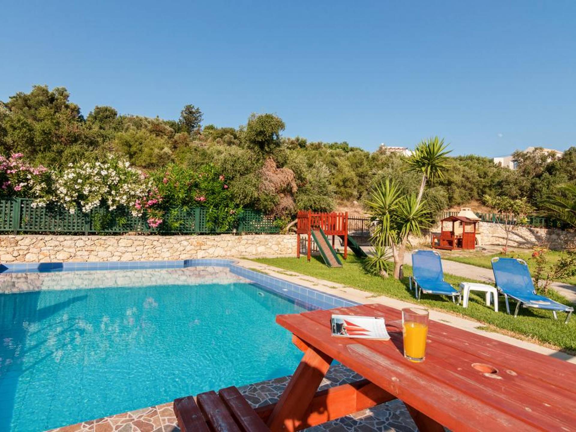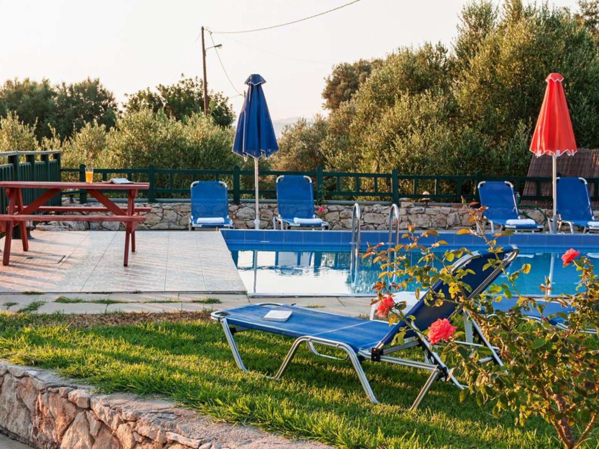 Η μεγάλη βεράντα με πανοραμική θέα στη θάλασσα και ο χώρος ανάπαυσης κοντά στις πισίνες είναι επαρκώς εξοπλισμένοι με μια μεγάλη ποικιλία από άνετα έπιπλα εξωτερικού χώρου που αποτελούνται από τραπεζάκια, τραπεζάκι, καρέκλες, ξαπλώστρες και ομπρέλες. Αν θέλετε να δοκιμάσετε ένα νόστιμο γεύμα σε μια από τις υπέροχες ταβέρνες του χωριού Αλμυρίδα, μπορείτε εύκολα να περπατήσετε μέχρι το κέντρο του χωριού, που απέχει μόλις 8 λεπτά με τα πόδια.