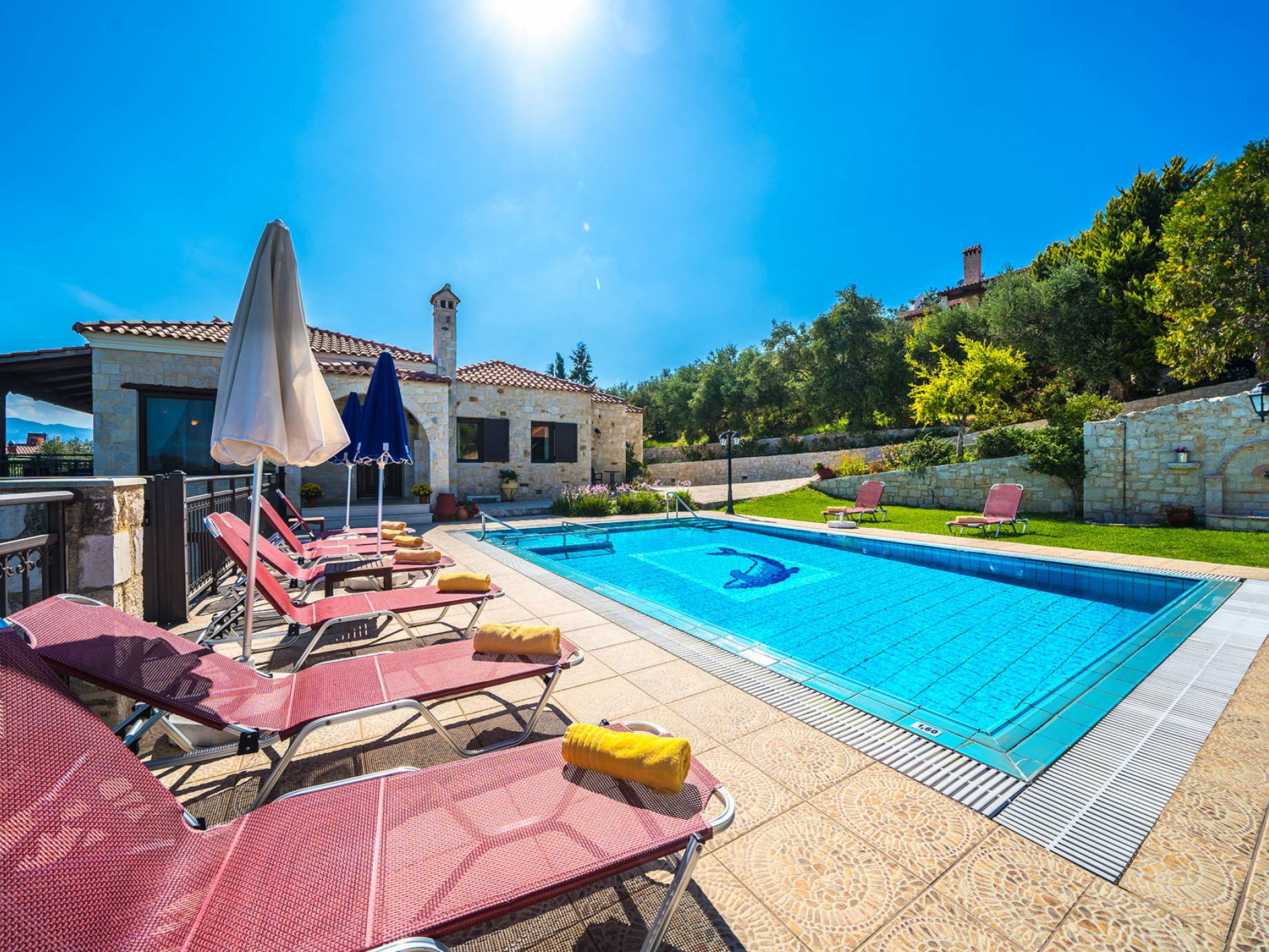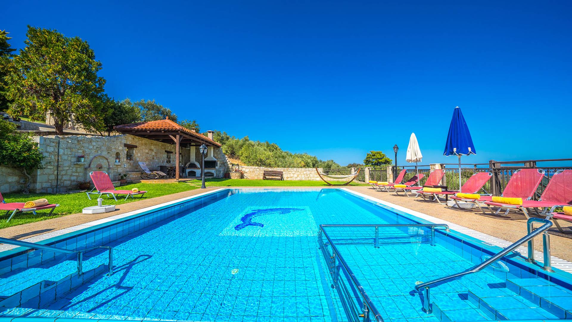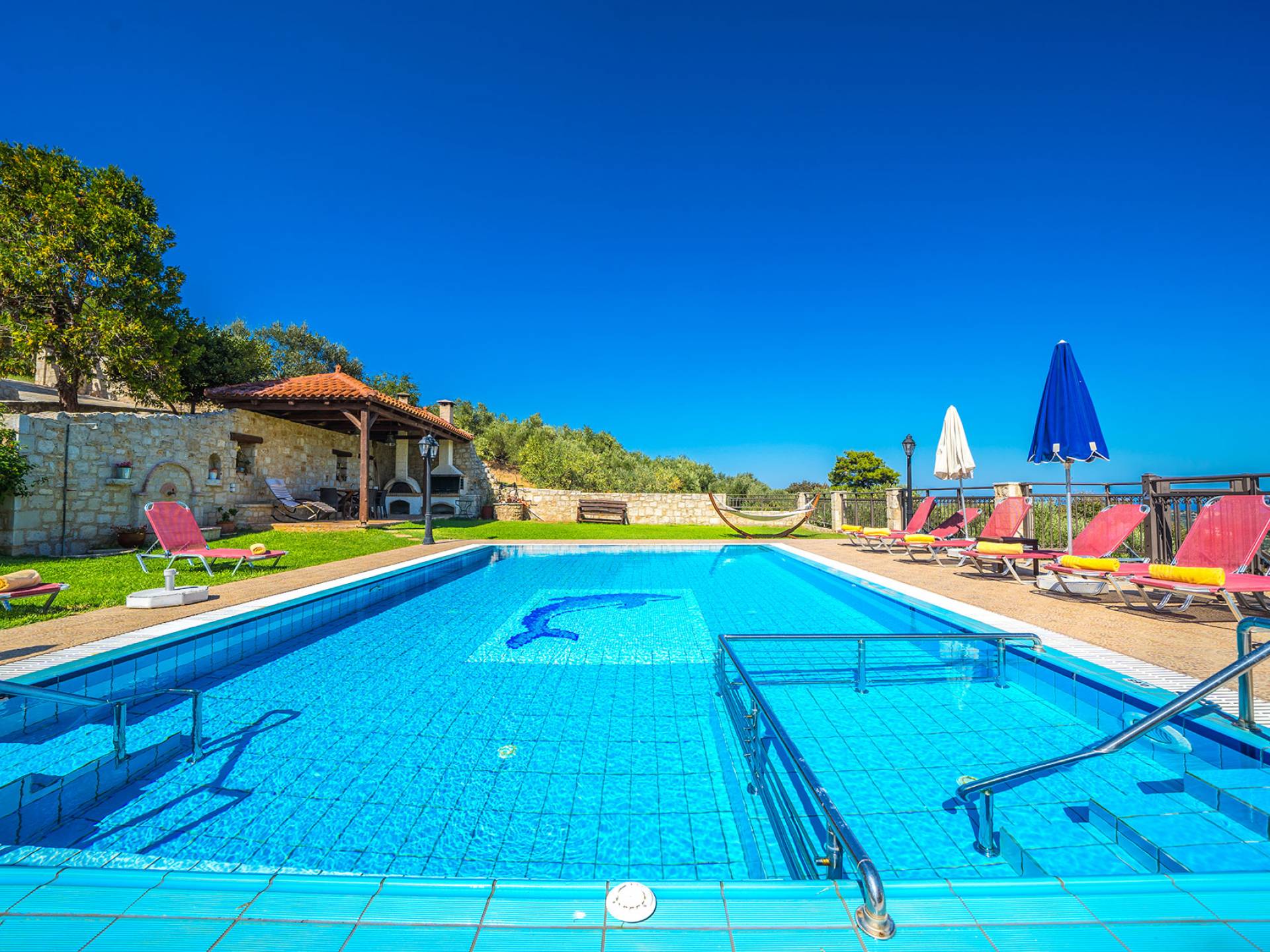 - Ιδιωτική πισίνα (10m x 5m) + ξεχωριστή παιδική πισίνα