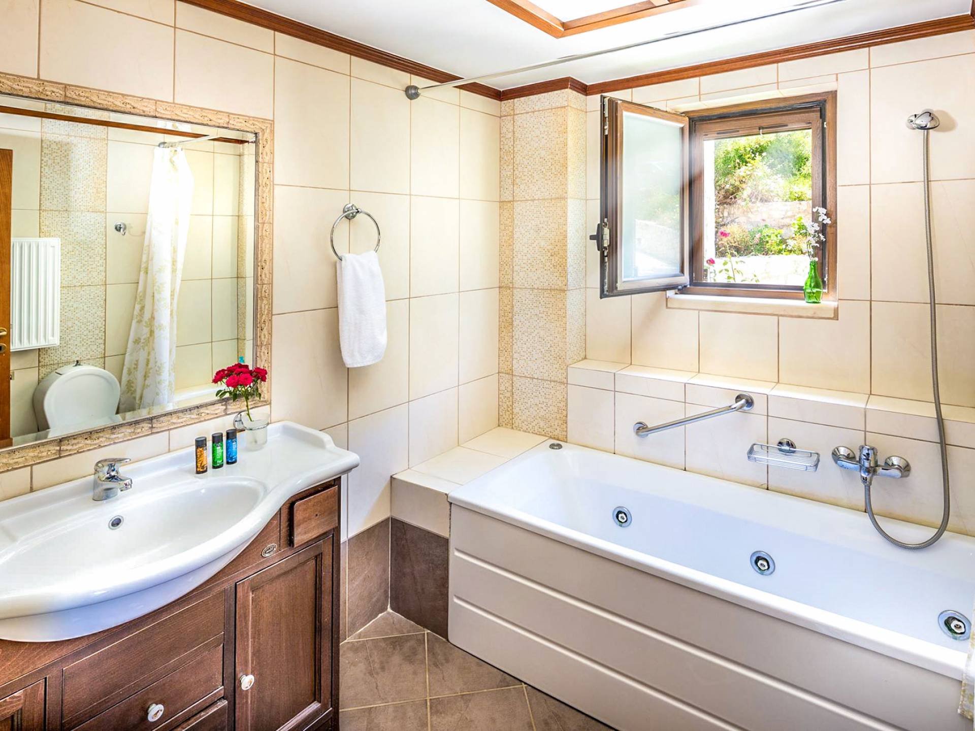- Υπνοδωμάτιο 4 με δύο μονά κρεβάτια, μπάνιο με υδροηλεκτρική μάζα και ιδιωτικό αίθριο με πρόσβαση στον κήπο.
