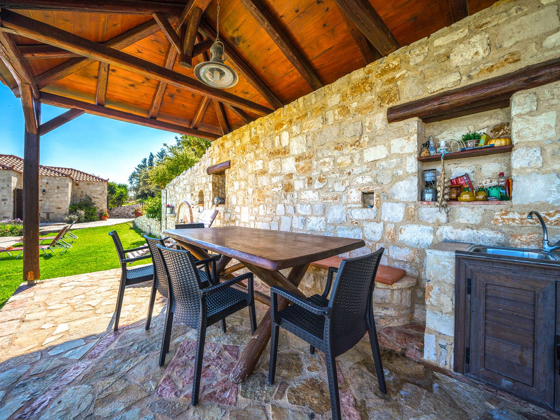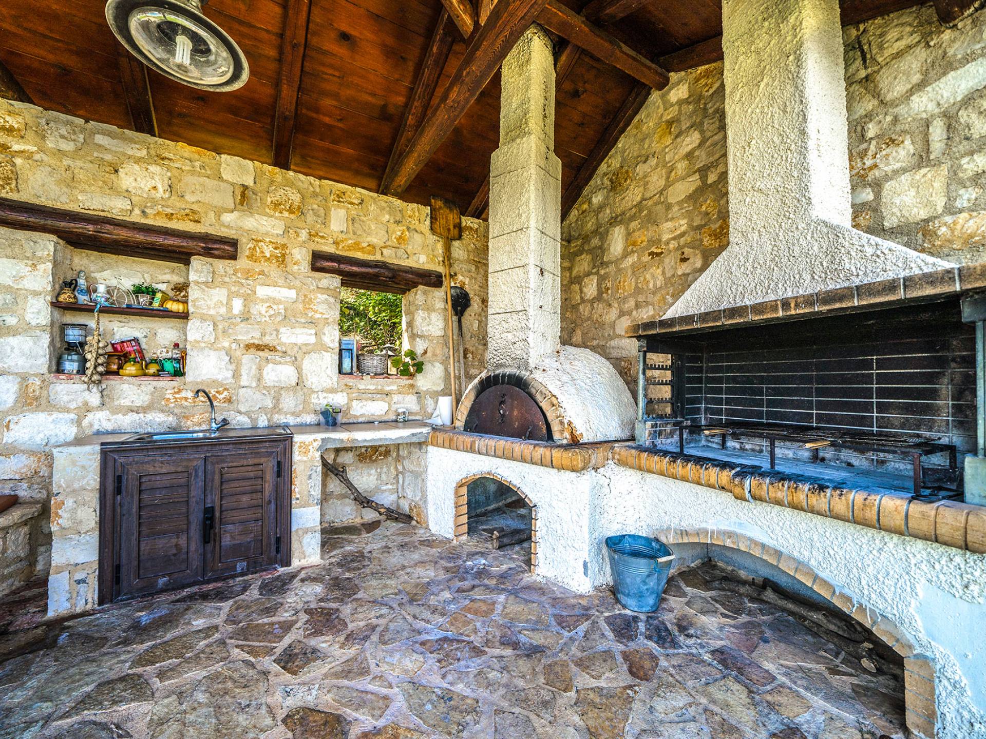 - καλυμμένο BBQ και υπαίθρια τραπεζαρία για τραπεζαρία al fresco