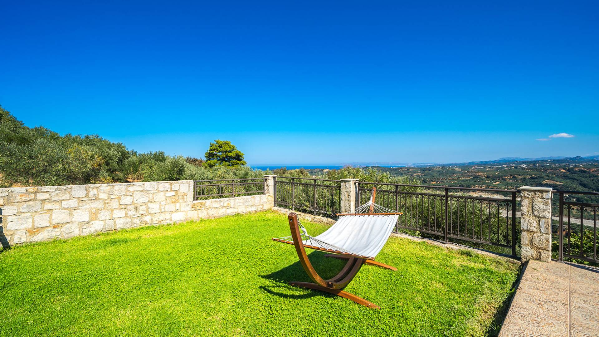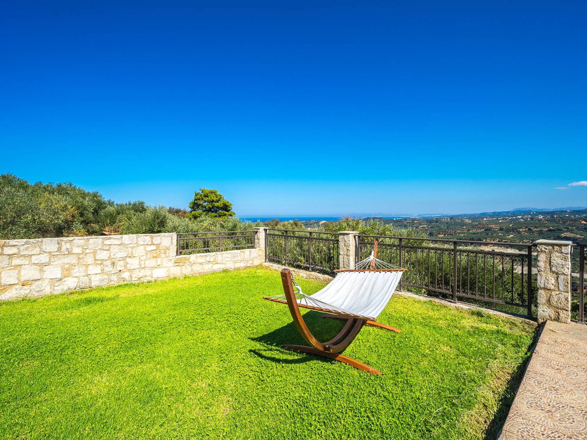 - κήπο γκαζόν δύο επιπέδων με εκπληκτική θέα