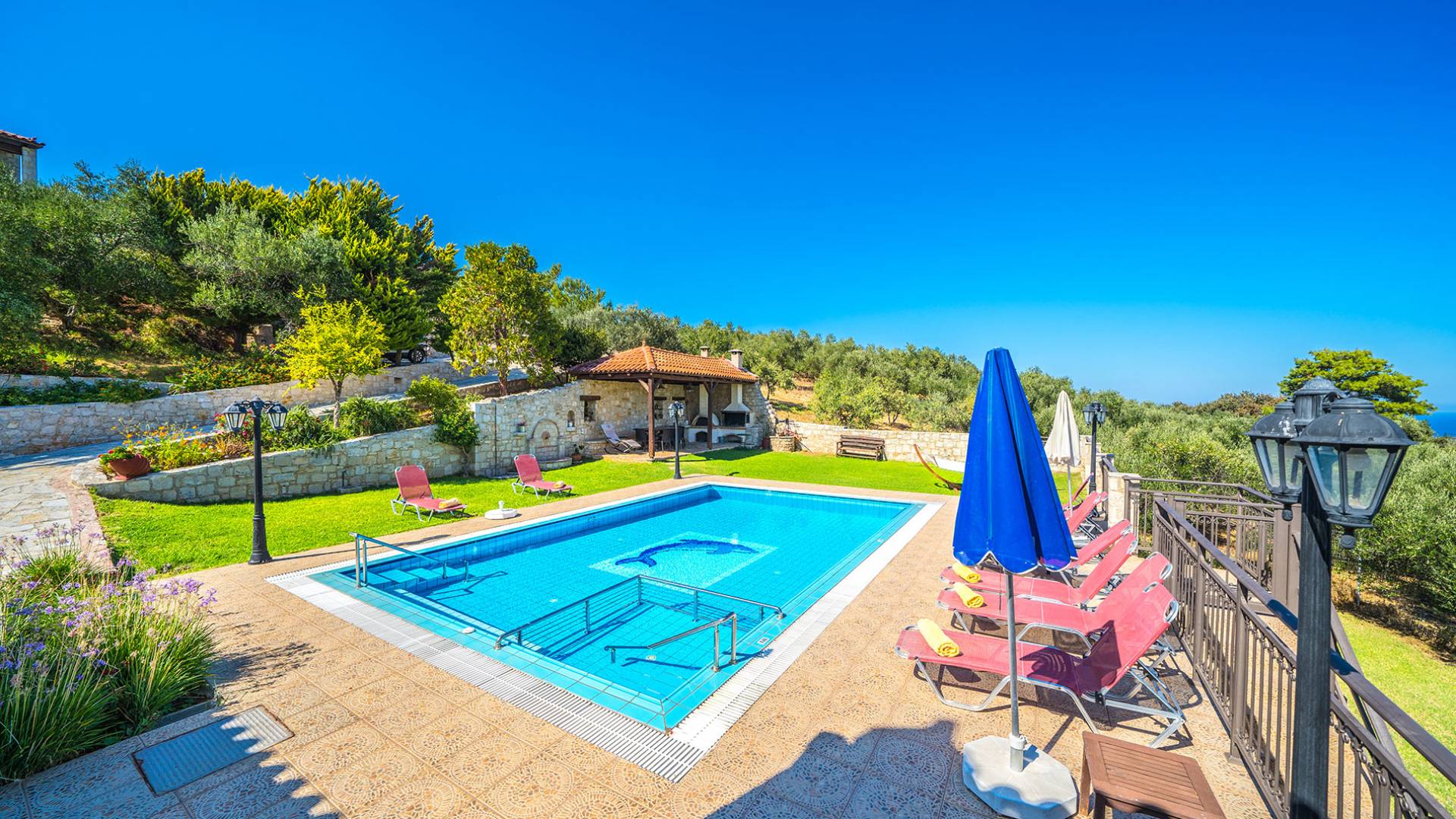 - Τεράστια ιδιωτική πισίνα και πλούσιοι υπαίθριοι χώροι