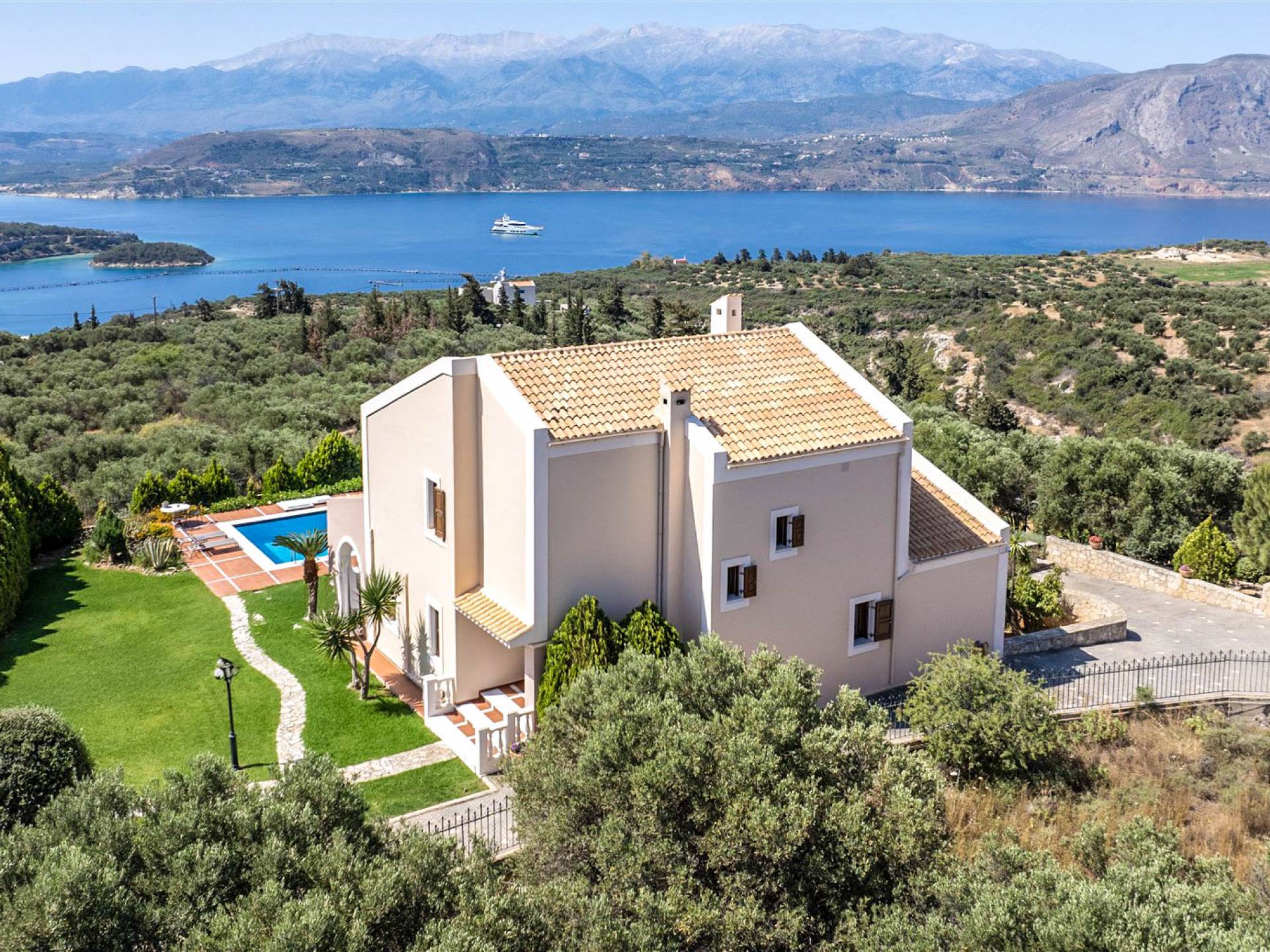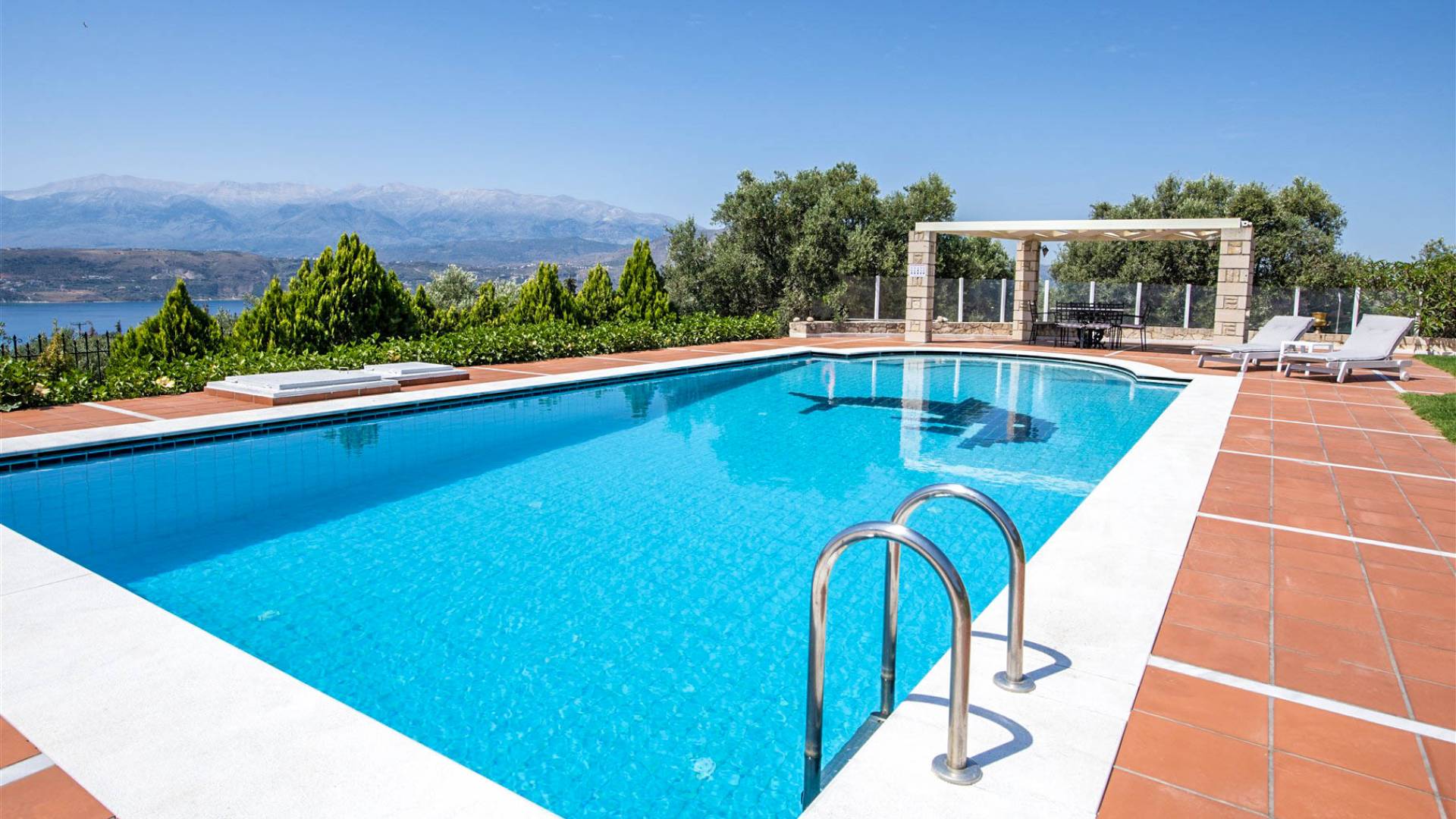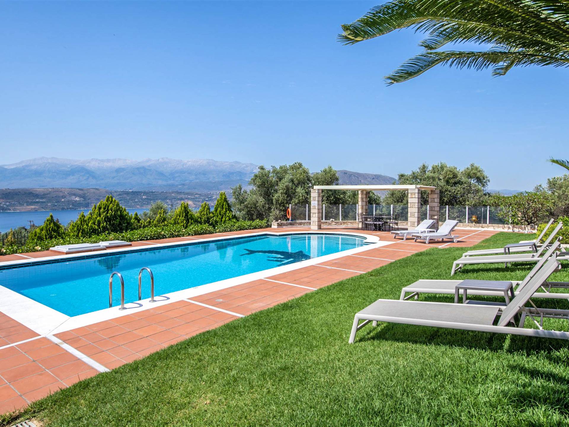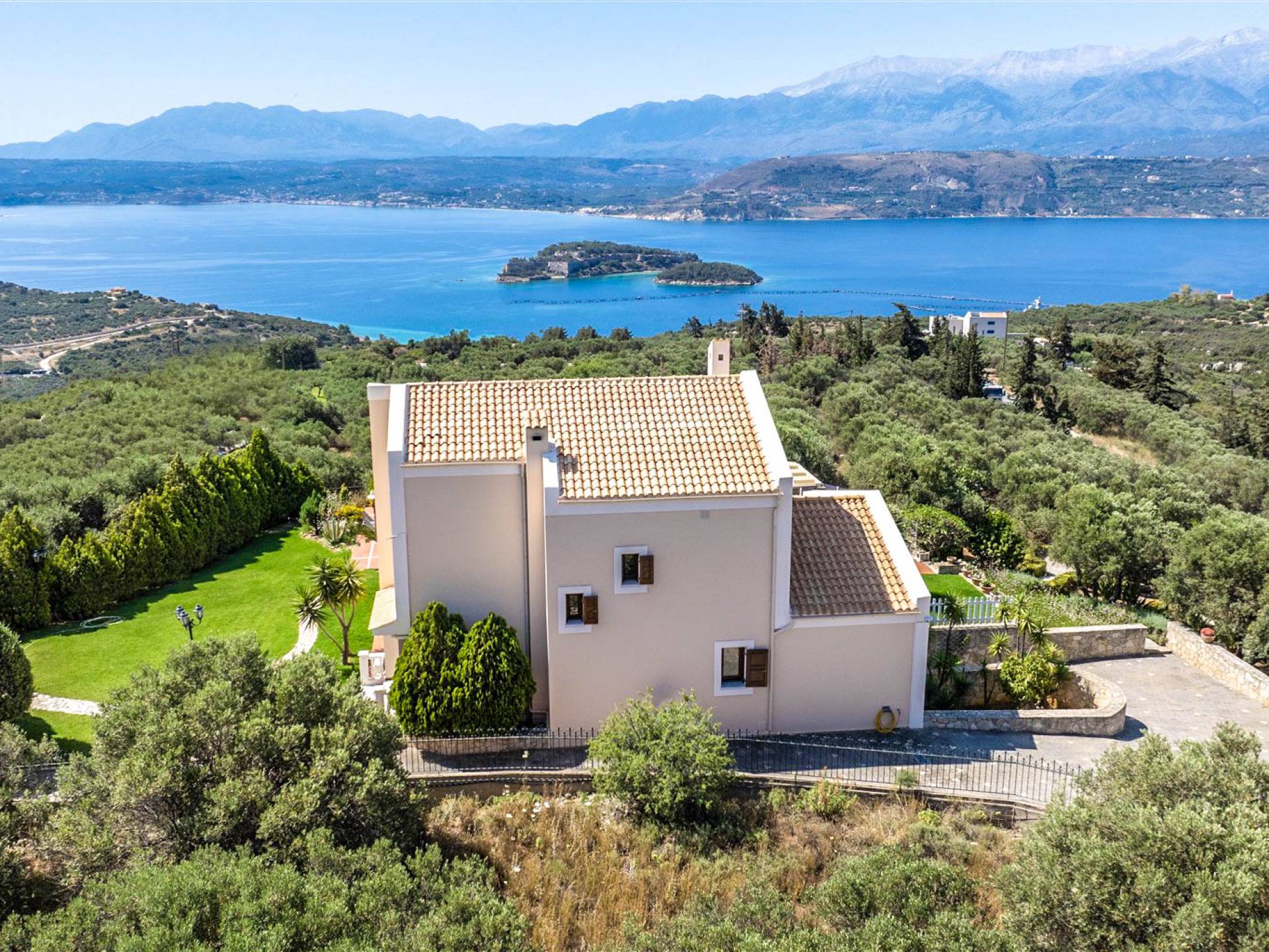 Το Ionas Villa Chania στεγάζεται σε ένα ιδιωτικό κτήμα 3.800μ² διακοσμημένο με 50 ελαιόδεντρα και περιποιημένους κήπους και διαθέτει μια γενναιόδωρη πισίνα με πλακάκια 70μ². Η υπερυψωμένη του θέση προσφέρει αδιάκοπη πανοραμική θέα στον κόλπο της Σούδας και στα μαγευτικά Λευκά Όρη.