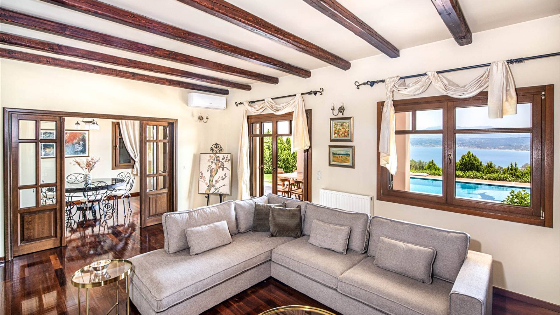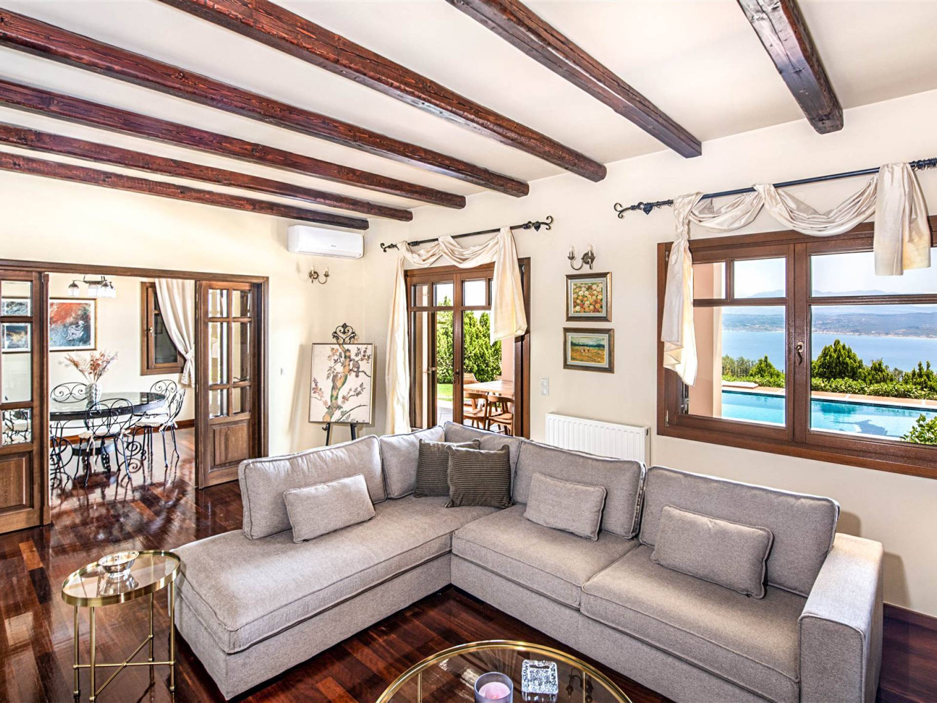 Οι βίλες στο Λουτράκι είναι προσεγμένα σχεδιασμένες, ενσωματωμένες αρμονικά στο φυσικό περιβάλλον. Πολλές διαθέτουν ιδιωτική πισίνα, σκιερές βεράντες με θέα στη θάλασσα και εύκολη πρόσβαση στην παραλία. Κάθε στιγμή εδώ είναι ξεχωριστή—από τον πρωινό καφέ με θέα το πέλαγος μέχρι ένα ποτήρι κρασί στο ηλιοβασίλεμα.