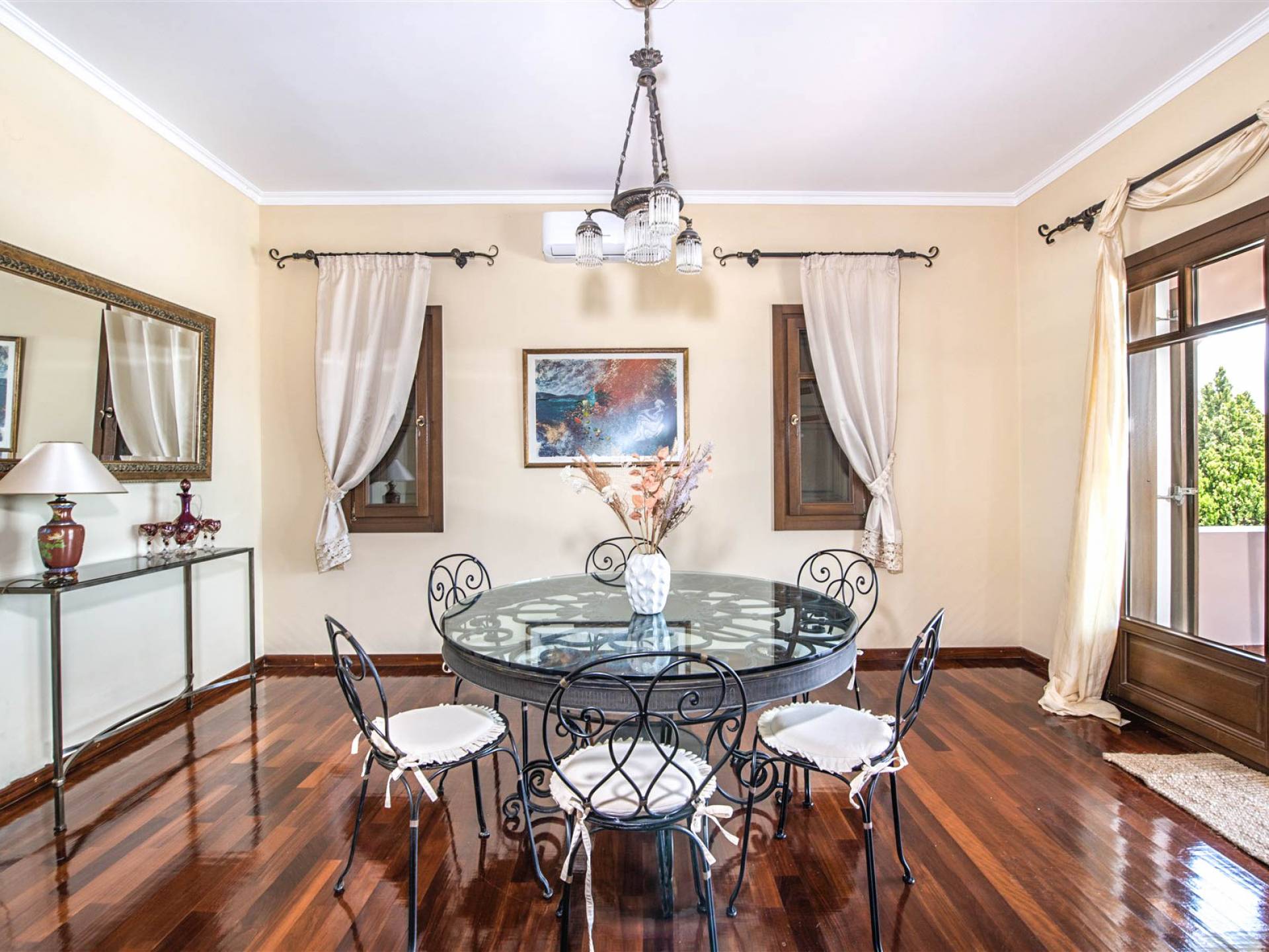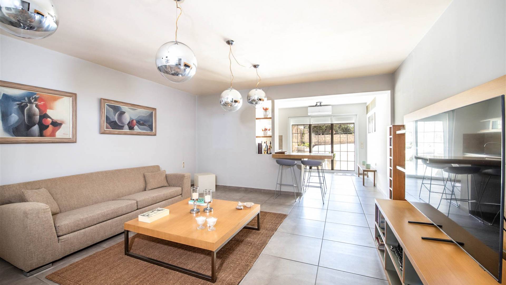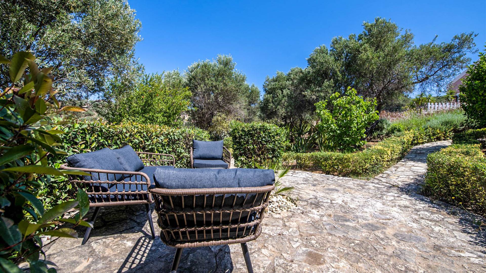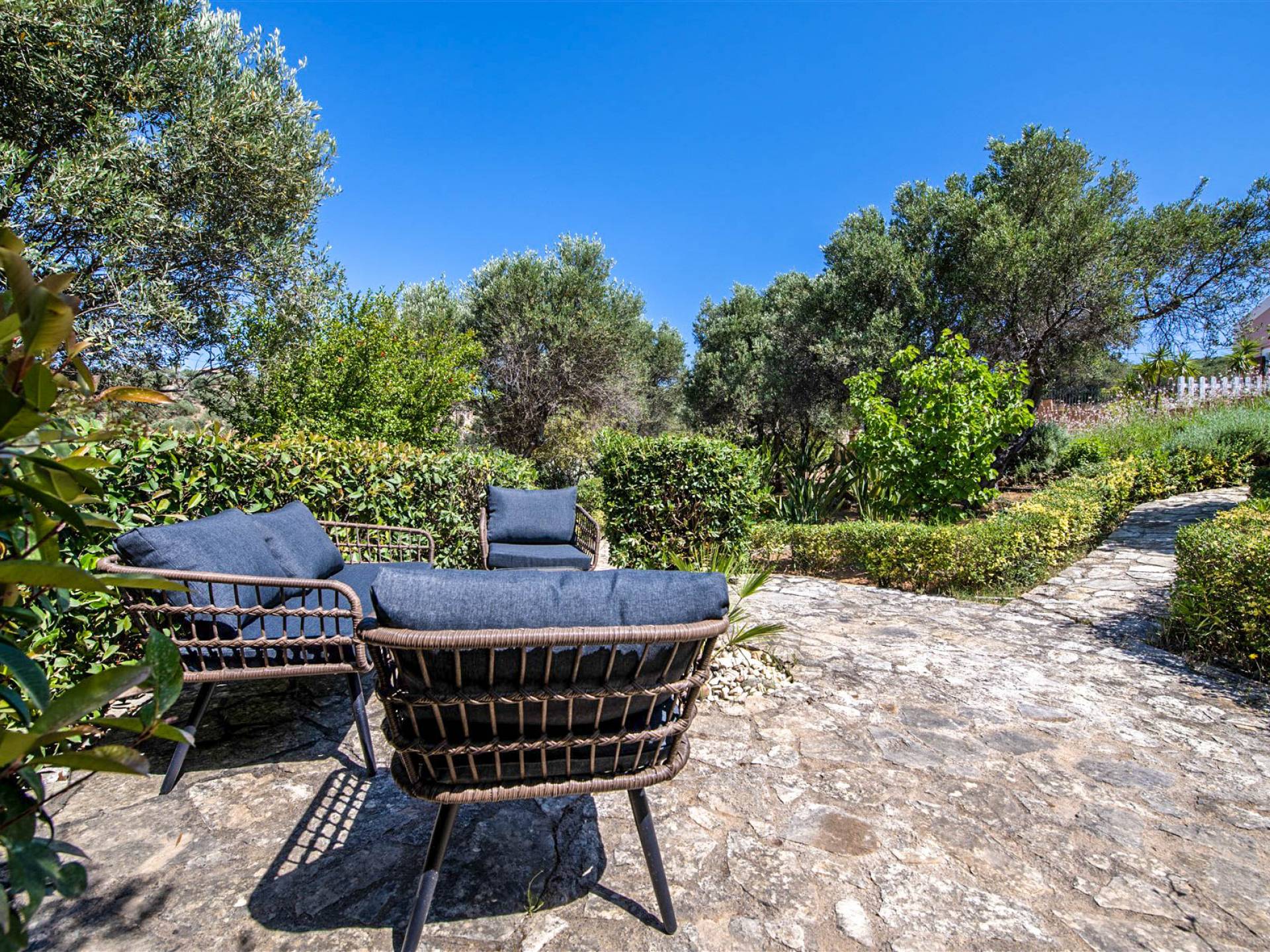 Το σπίτι που ανανεώθηκε πρόσφατα με νέα κομψά έπιπλα, είναι ταυτόχρονα μοντέρνο και φιλόξενο. Έξω, οι επισκέπτες θα απολαύσουν σκιερούς χώρους σαλονιού, ενσωματωμένο μπάρμπεκιου και απόλυτη απομόνωση, ενισχυμένη από έναν γειτονικό ελαιώνα 1.700μ² που διασφαλίζει ότι η θέα σας δεν θα εμποδίζεται ποτέ. Με πλήρη μόνωση, δύο γκαράζ και άφθονο αποθηκευτικό χώρο, η βίλα είναι επίσης ιδανική για διαμονή όλο το χρόνο.
