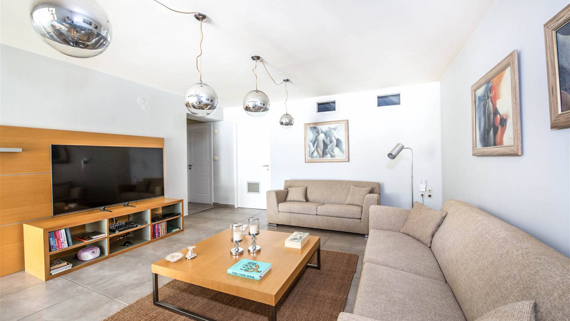 Η διάταξη της βίλας περιλαμβάνει δύο κουζίνες επώνυμων σχεδιαστών, δύο ηλιόλουστες γκαλερί, ένα άνετο σαλόνι με τζάκι, ένα γραφείο και την επιλογή δημιουργίας ενός αυτόνομου διαμερίσματος επισκεπτών στο χαμηλότερο επίπεδο—ιδανικό για πρόσθετη ιδιωτικότητα ή φιλοξενία εκτεταμένων ομάδων.