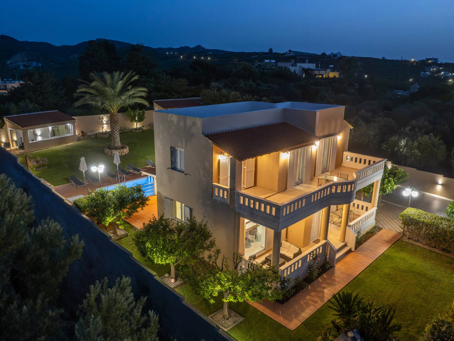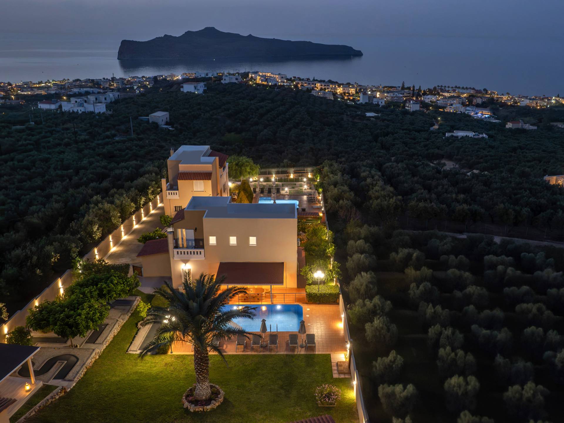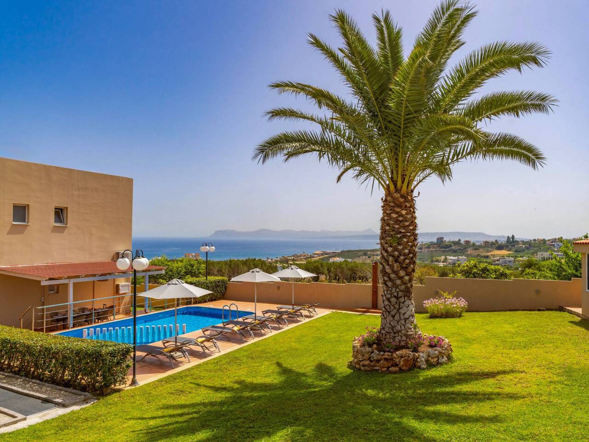Έξω, υπάρχει μια ατομική πισίνα 40 τ.μ. και ένα μίνι γκολφ. Η γύρω περιοχή είναι καλυμμένη με ελαιώνες. Ο ατομικός κήπος της Majestic Villa 1 Chania περιλαμβάνει χώρο στάθμευσης, χώρο με γκαζόν και σκεπαστή ξύλινη πέργκολα, όπου βρίσκονται το μπάρμπεκιου και η τραπεζαρία στον κήπο. Η πισίνα περιβάλλεται από ξαπλώστρες και ομπρέλες για στιγμές χαλάρωσης θαυμάζοντας τη θέα που κόβει την ανάσα. Ένας χώρος με γκαζόν είναι ιδανικό μέρος για να παίζουν τα παιδιά, καθώς υπάρχουν κούνιες. Θα απολαύσουν επίσης το ατομικό μας μίνι γκολφ.