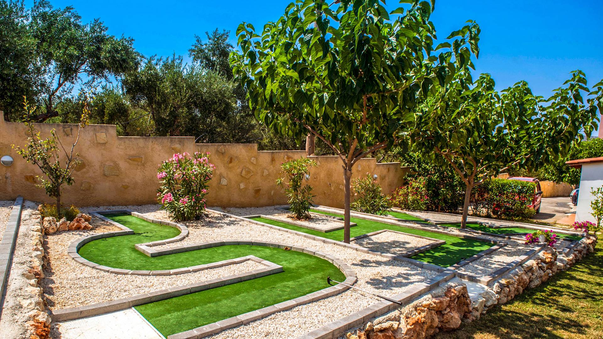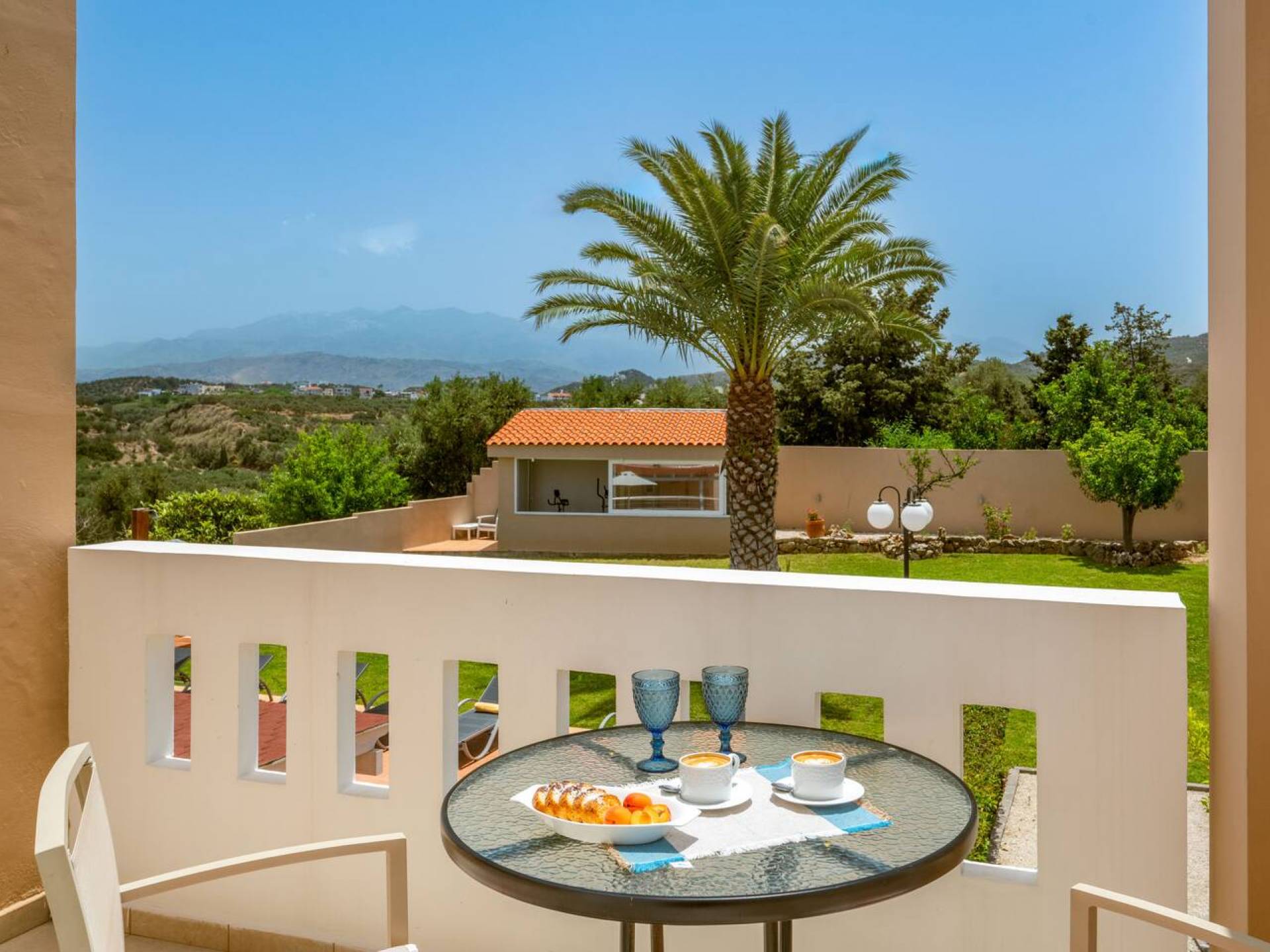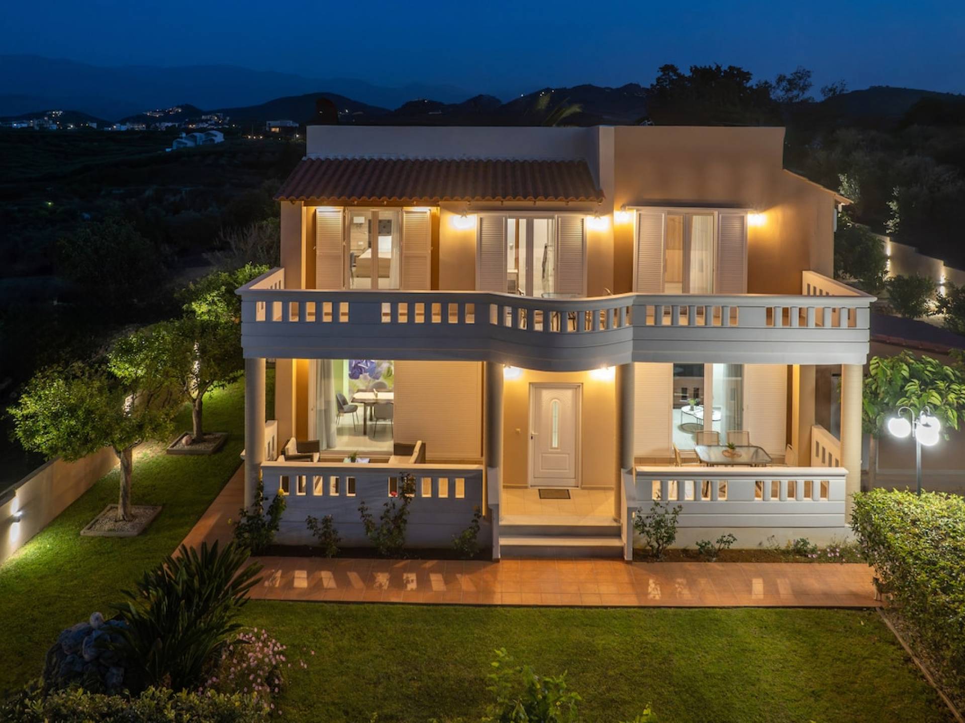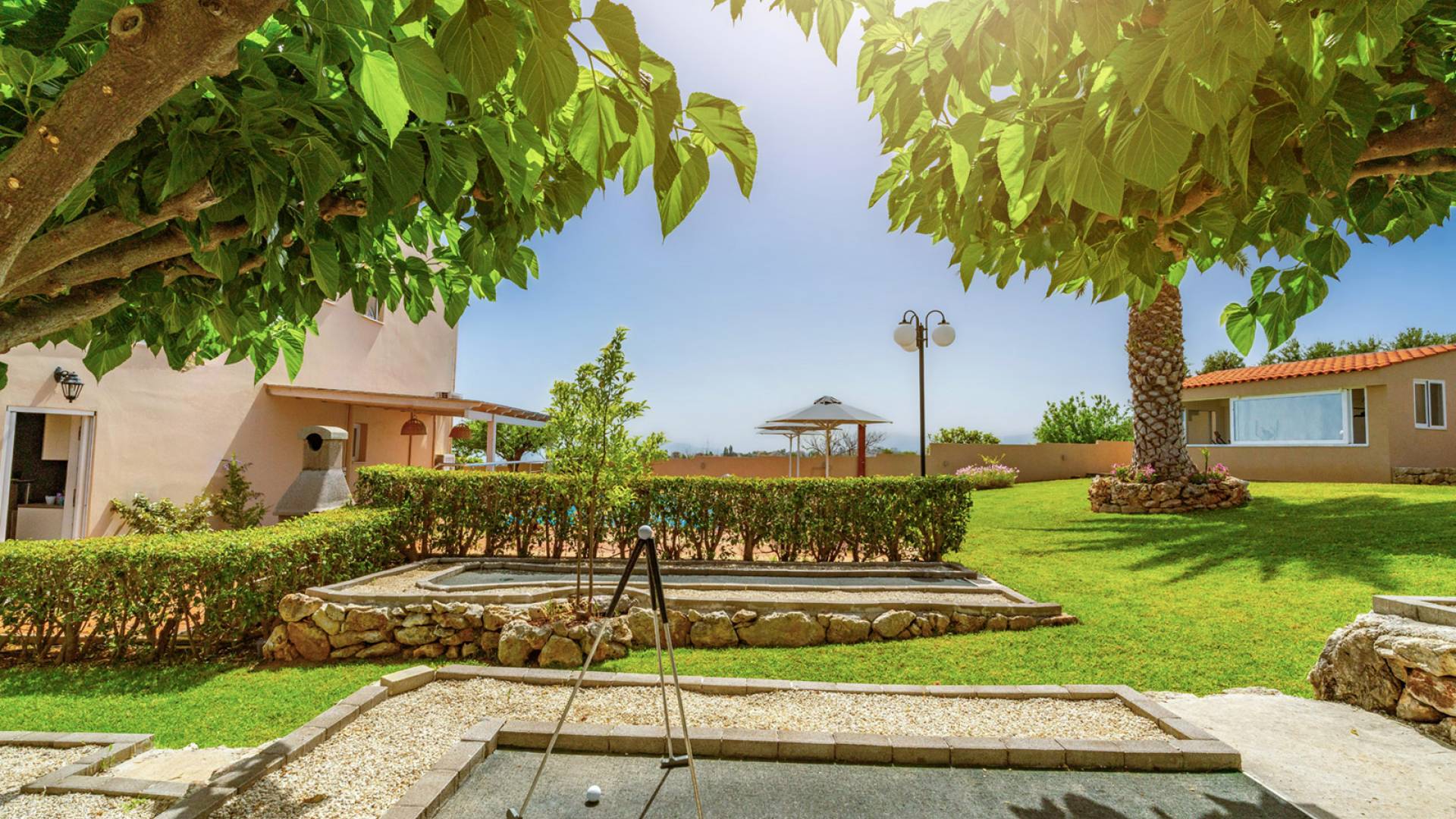 Έξω, υπάρχει μια ατομική πισίνα 40 τ.μ. και ένα μίνι γκολφ. Η γύρω περιοχή είναι καλυμμένη με ελαιώνες. Ο ατομικός κήπος της Majestic Villa 1 Chania περιλαμβάνει χώρο στάθμευσης, χώρο με γκαζόν και σκεπαστή ξύλινη πέργκολα, όπου βρίσκονται το μπάρμπεκιου και η τραπεζαρία στον κήπο. Η πισίνα περιβάλλεται από ξαπλώστρες και ομπρέλες για στιγμές χαλάρωσης θαυμάζοντας τη θέα που κόβει την ανάσα. Ένας χώρος με γκαζόν είναι ιδανικό μέρος για να παίζουν τα παιδιά, καθώς υπάρχουν κούνιες. Θα απολαύσουν επίσης το ατομικό μας μίνι γκολφ.