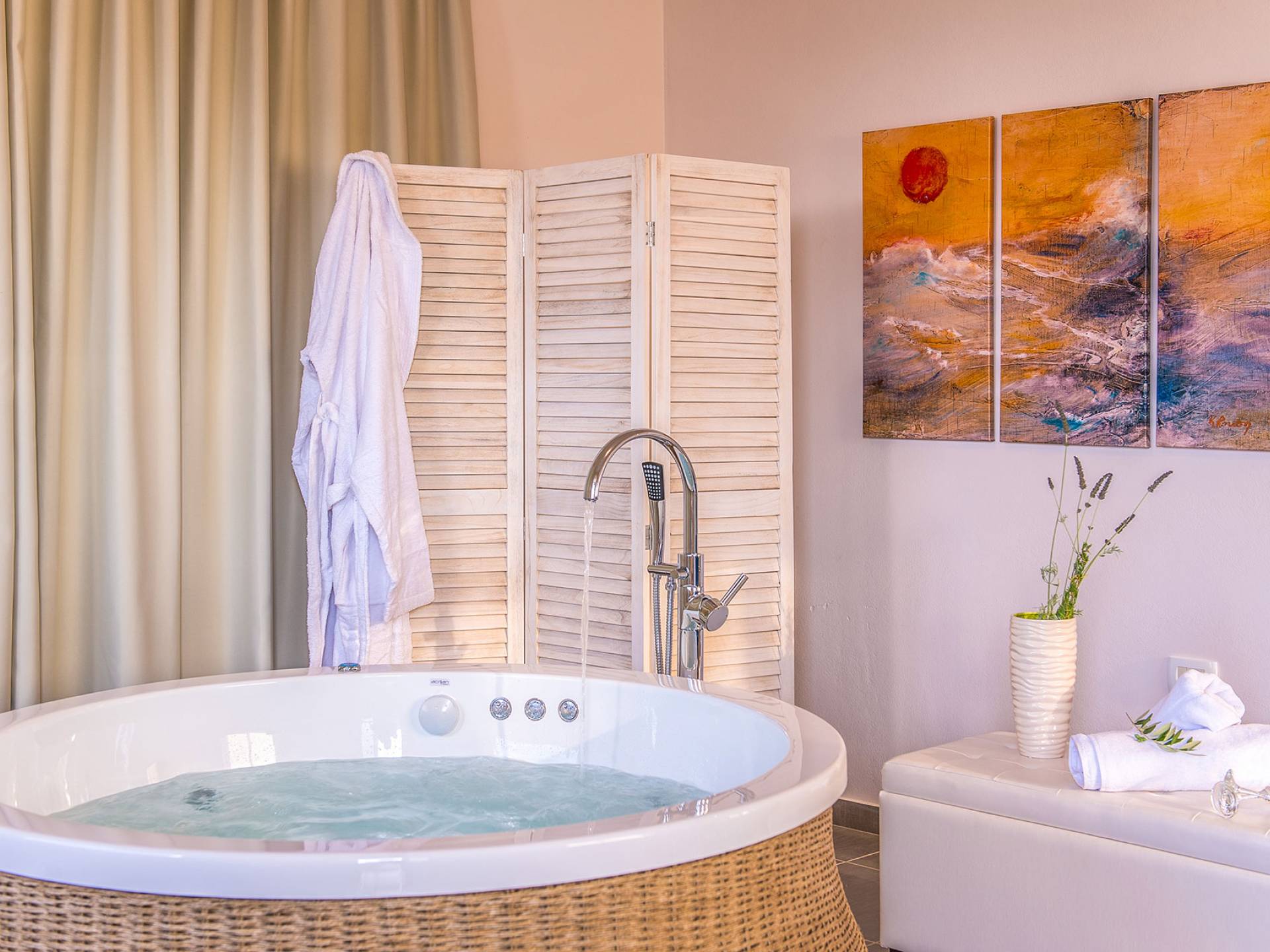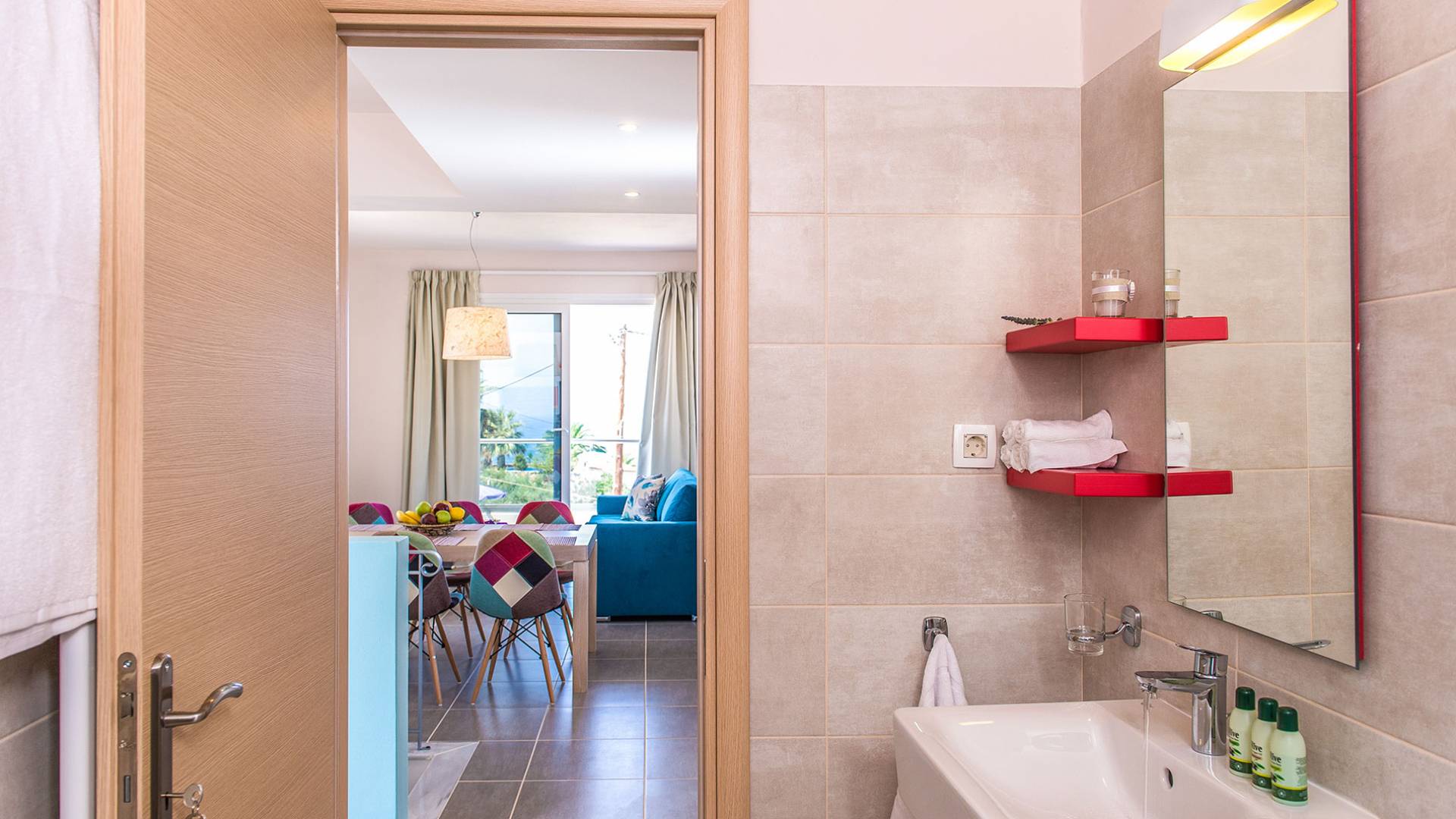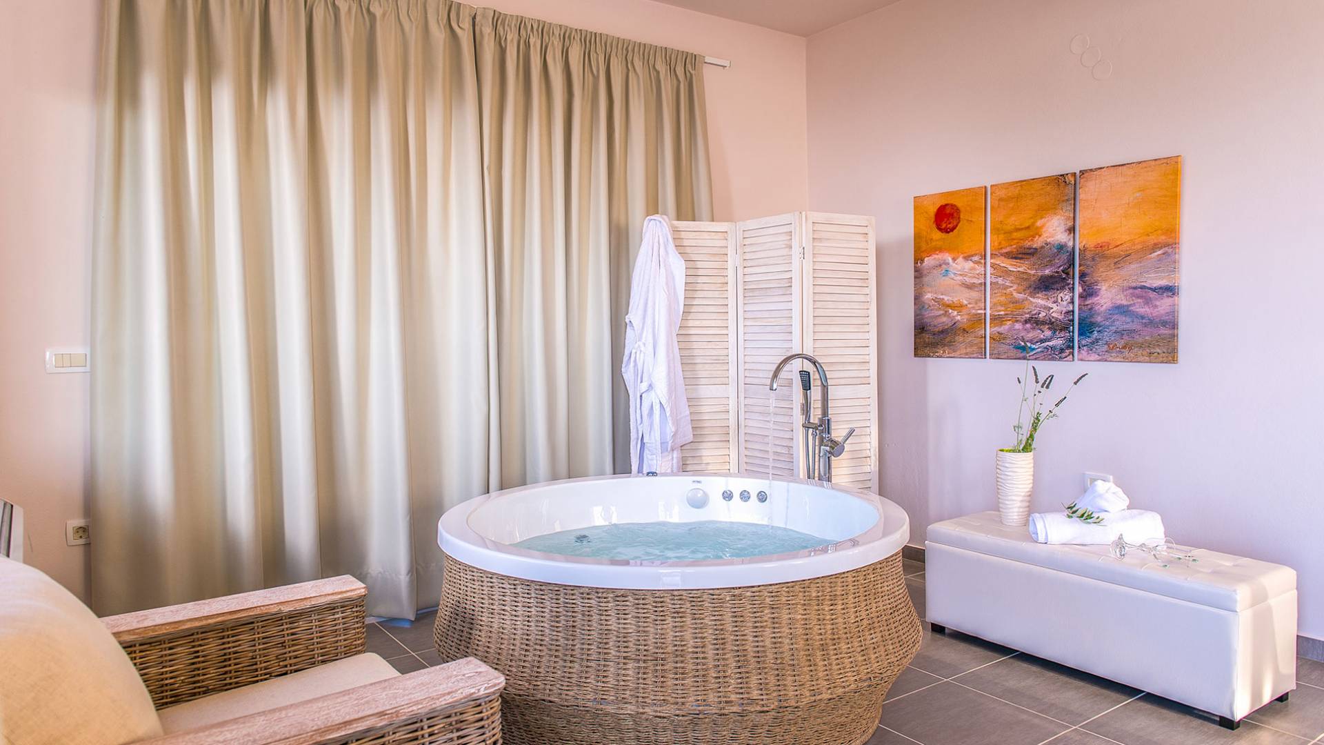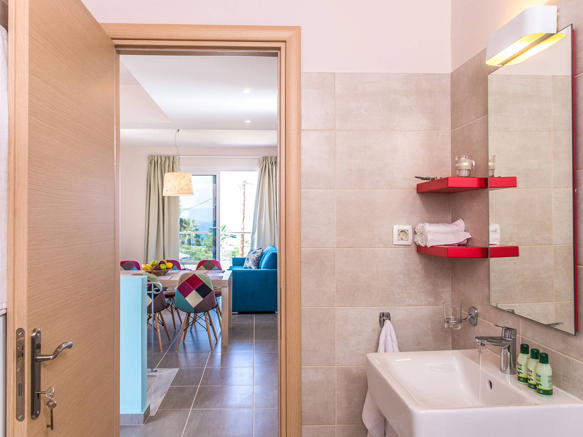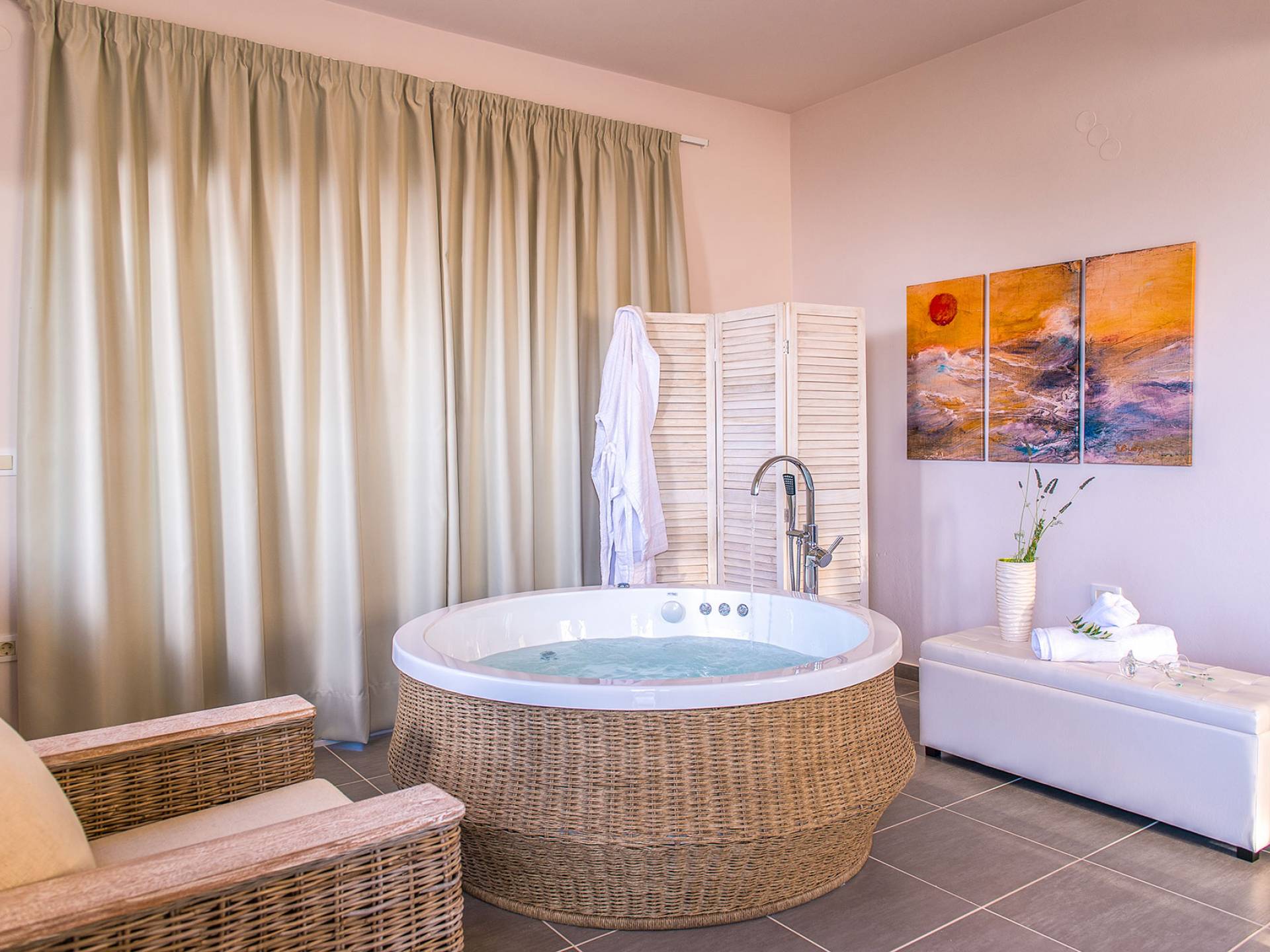 Marjorie Villa Chania: Ανοίγοντας τις πόρτες του αίθριου από τα υπνοδωμάτια, βρίσκετε την ιδιωτική πισίνα που περιβάλλεται από μια ευρύχωρη βεράντα και παρτέρια, με ένα μικρό χώρο με γρασίδι. Υπάρχει ένα φορητό μπάρμπεκιου και εξωτερικό τραπέζι φαγητού και καρέκλες για δείπνο alfresco ενώ παρακολουθείτε το ηλιοβασίλεμα. Μην ξεχνάτε τα μικρά στο πάρτι σας - υπάρχει επίσης ξεχωριστή παιδική πισίνα. Μπαίνοντας στην μπροστινή πόρτα στο κάτω επίπεδο υπάρχει ένας μικρός διάδρομος με 2 πόρτες που οδηγούν στα υπνοδωμάτια. Μια σπειροειδής σκάλα σας μεταφέρει στο σαλόνι με υπέροχη θέα στη θάλασσα που θα βελτιώσει τη διαμονή σας. Στον επάνω όροφο, το ενιαίο σαλόνι είναι ένα τέλειο μέρος για να χαλαρώσετε μακριά από τη ζέστη του ήλιου. Η κομψή, καλαίσθητη επίπλωση και οι δροσεροί ουδέτεροι τόνοι με πιτσιλιές χρώματος δημιουργούν έναν πραγματικά χαλαρό χώρο. Τα 2 μπαλκόνια προσφέρουν θέα στην πισίνα και τον κήπο με απέραντη θέα στο Αιγαίο Πέλαγος.