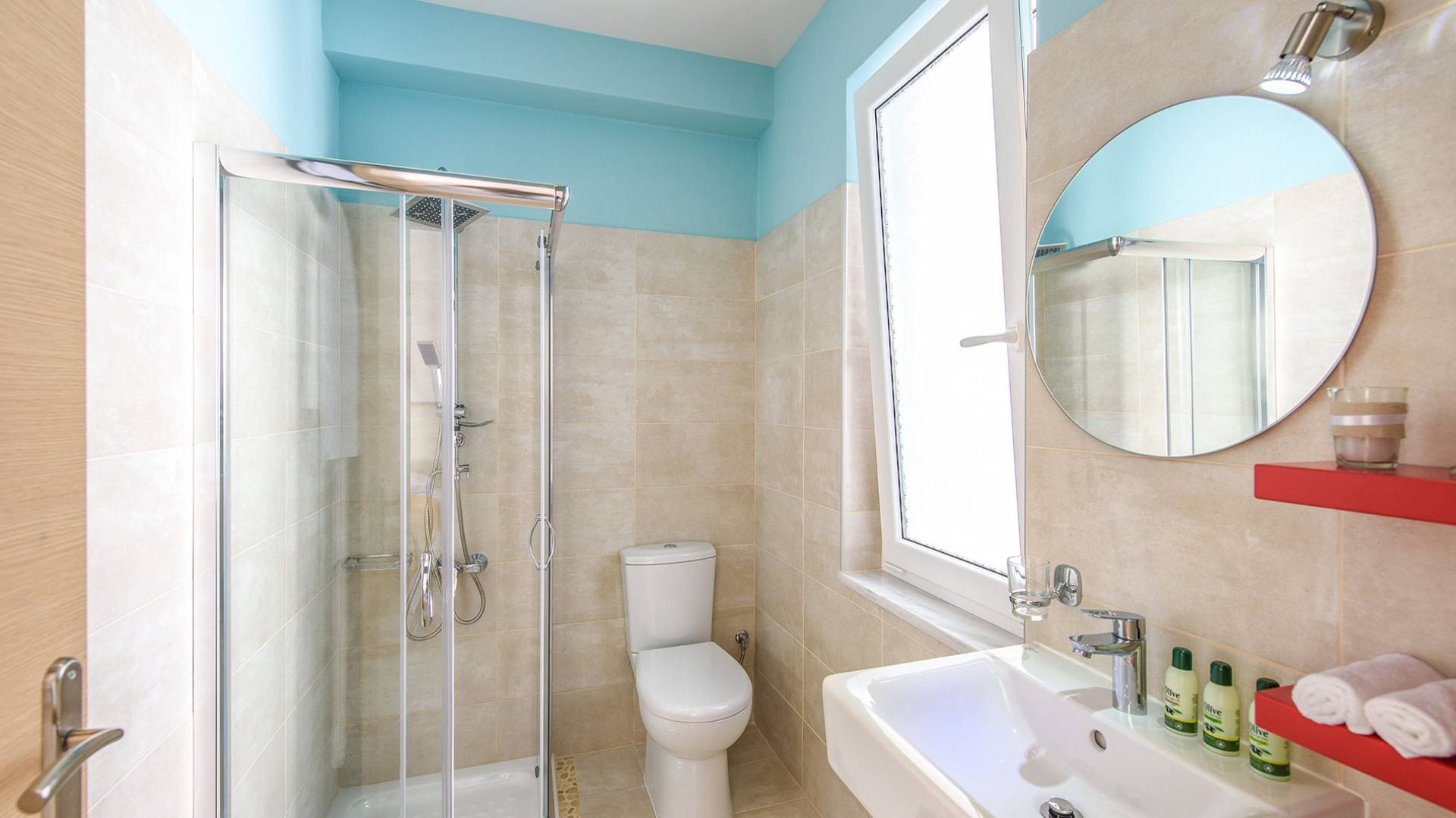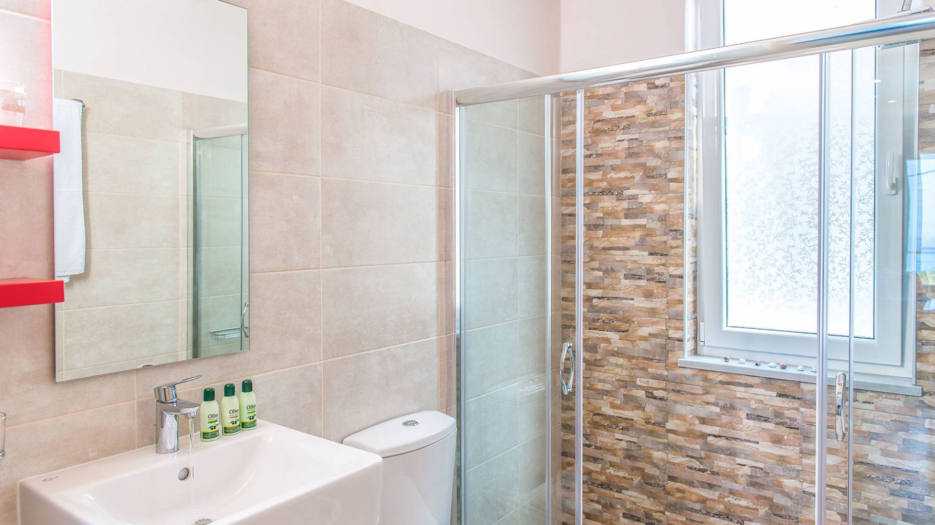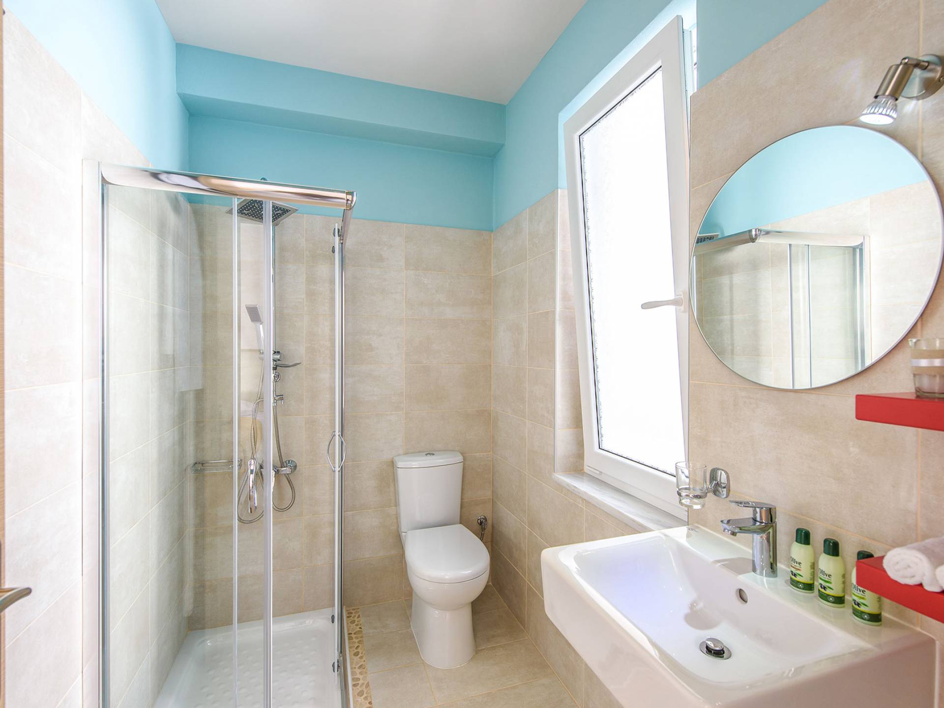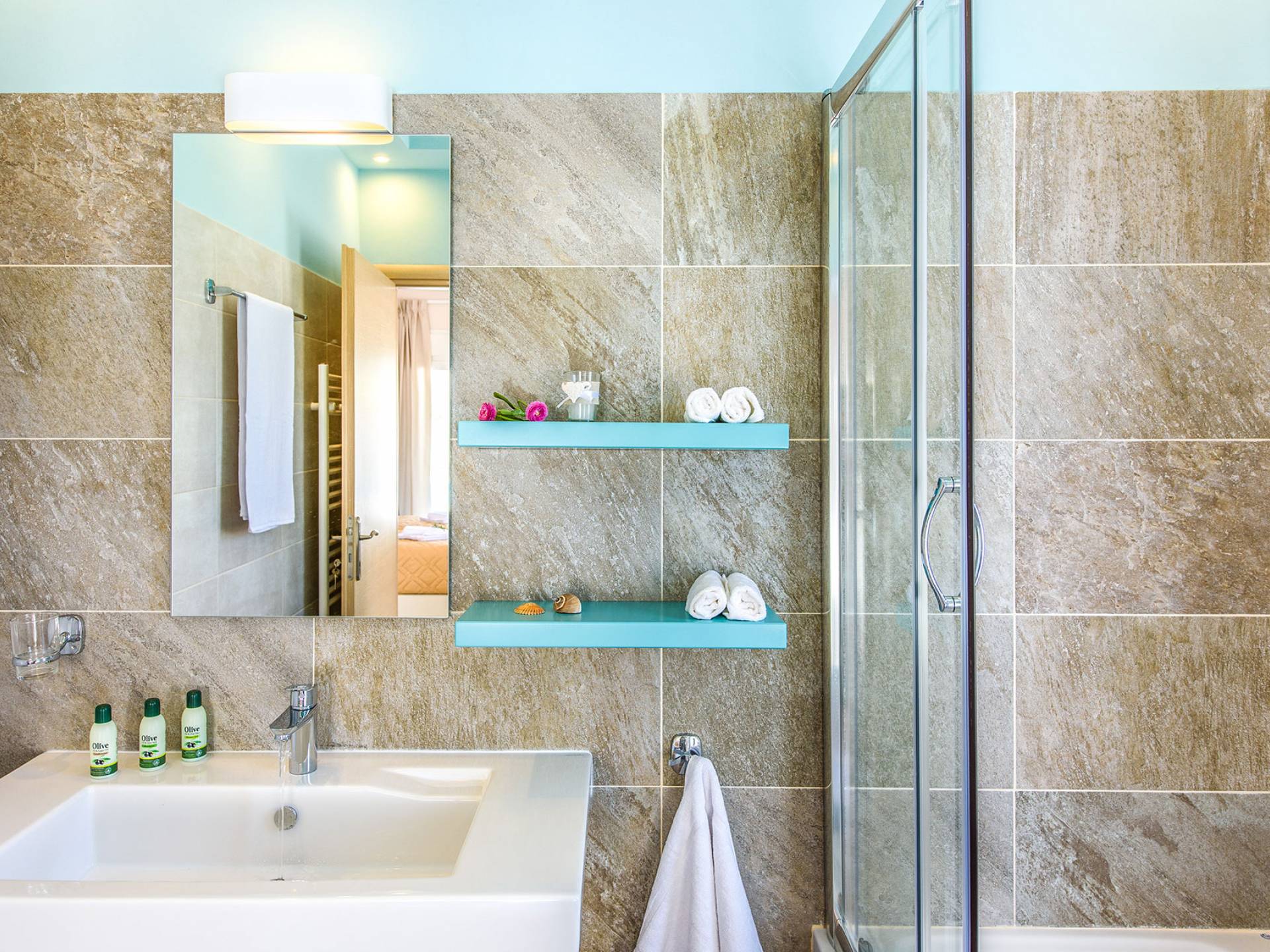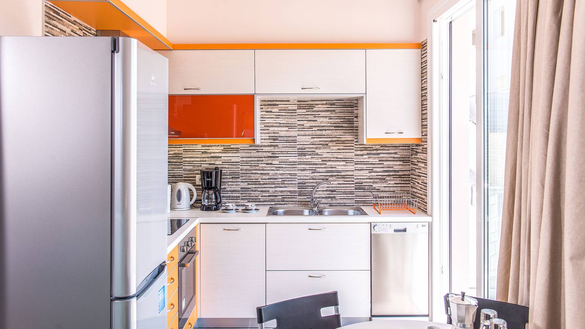 Η σύγχρονη, συμπαγής κουζίνα οδηγεί από το σαλόνι και διαθέτει 2 τραπέζια φαγητού και σετ καρέκλας. Είναι καλά εξοπλισμένο για όλες τις ανάγκες εστίασης κατά τη διάρκεια των διακοπών σας. Και τα δύο υπνοδωμάτια βρίσκονται στο ισόγειο. Το δίκλινο υπνοδωμάτιο είναι φωτεινά επιπλωμένο και διαθέτει πόρτες βεράντας που οδηγούν απευθείας στη βεράντα της πισίνας. Ακριβώς έξω από αυτό το υπνοδωμάτιο, υπάρχει το ιδιωτικό μπάνιο. Το δίκλινο υπνοδωμάτιο με 2 μονά κρεβάτια διαθέτει ποιοτικά εξαρτήματα, πόρτες βεράντας που οδηγούν στη βεράντα της πισίνας και ιδιωτικό ντους. Υπάρχει ένα επιπλέον ντους στο επάνω επίπεδο μεταξύ του σαλονιού και της κουζίνας.