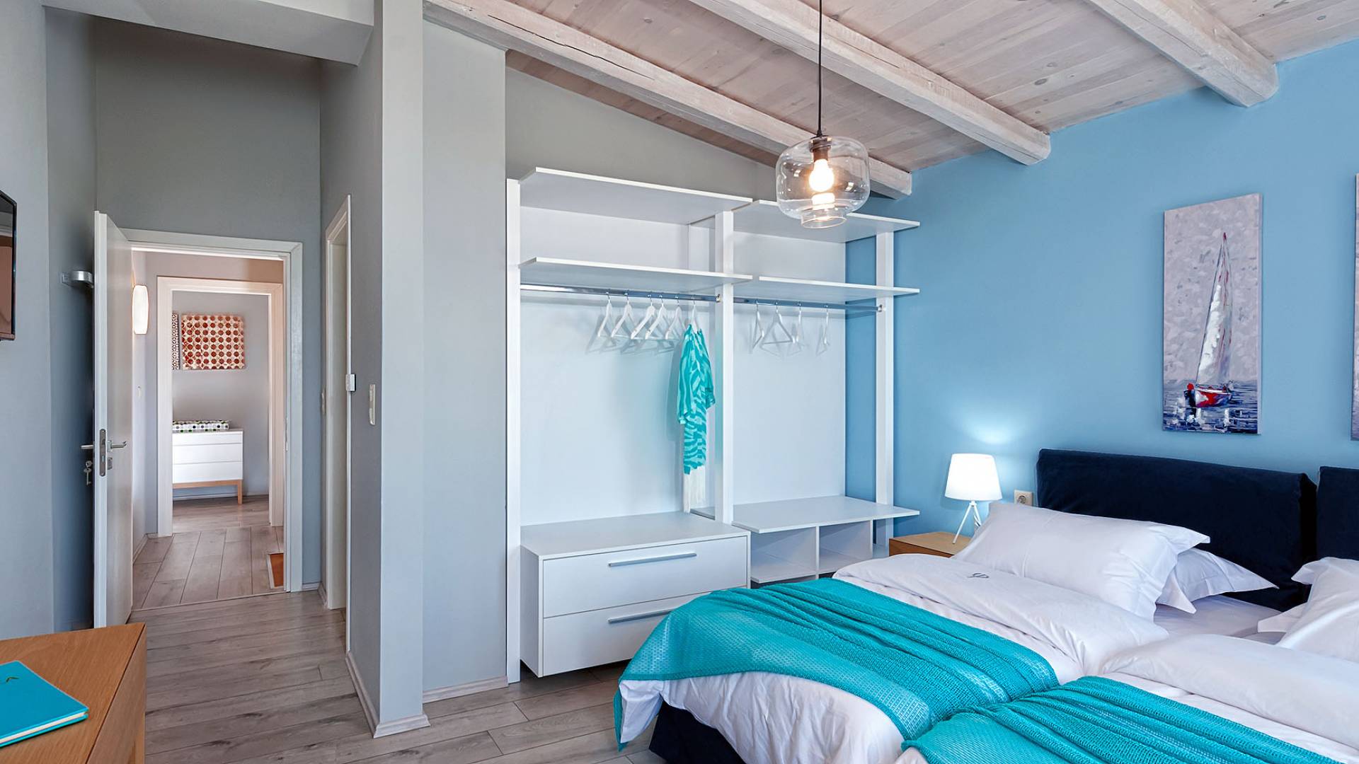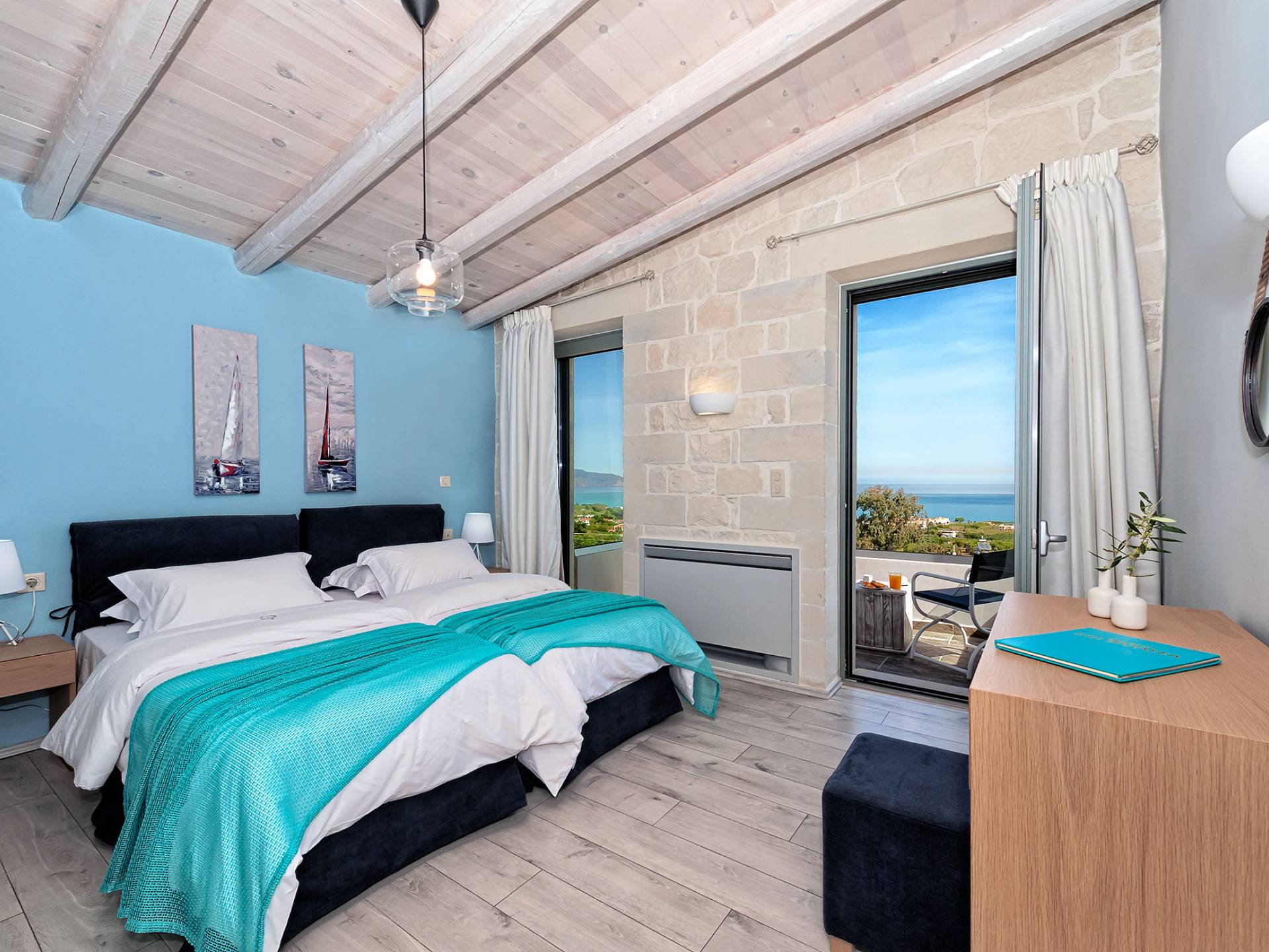 Δεύτερο Υπνοδωμάτιο: Δύο μονά κρεβάτια (μετατρέπονται σε king size) & ιδιωτικό μπαλκόνι με εκπληκτική θέα.