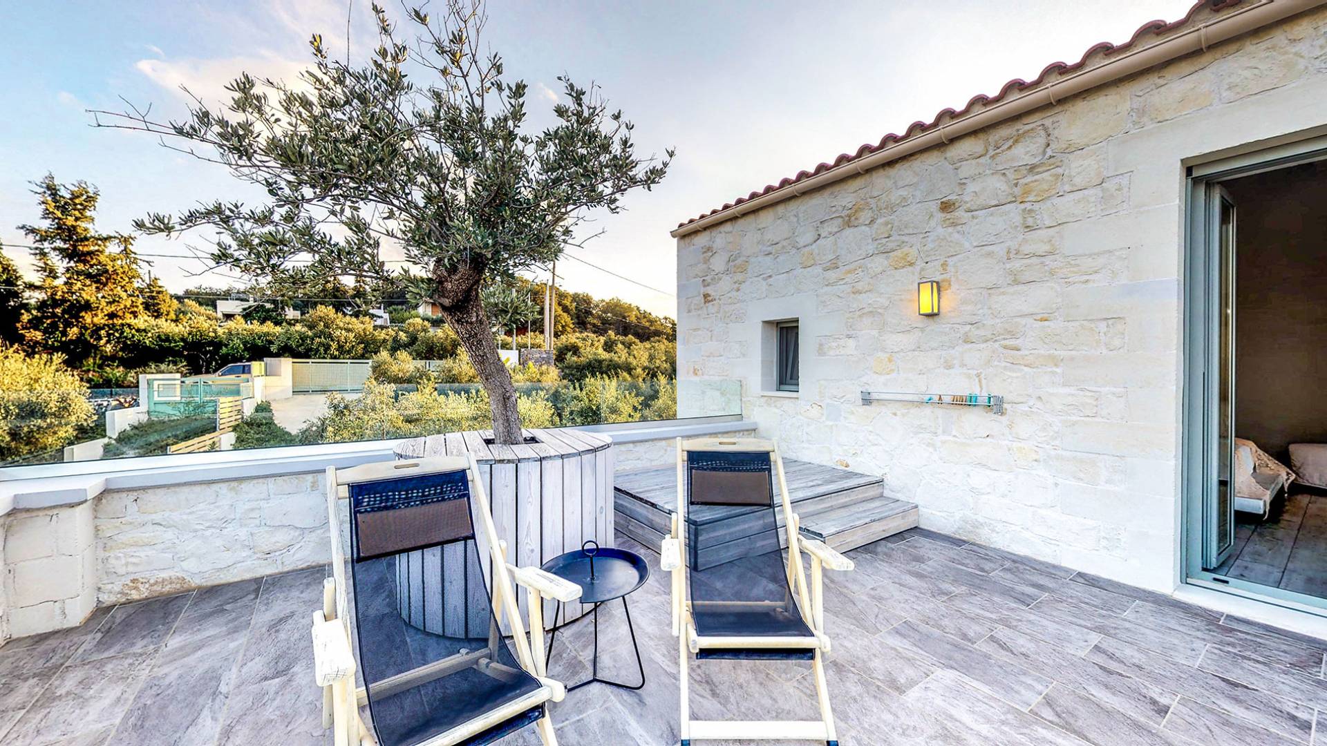 Μεγάλο Μπαλκόνι: Πανοραμική θέα, έπιπλα εξωτερικού χώρου και υδρομασάζ.
