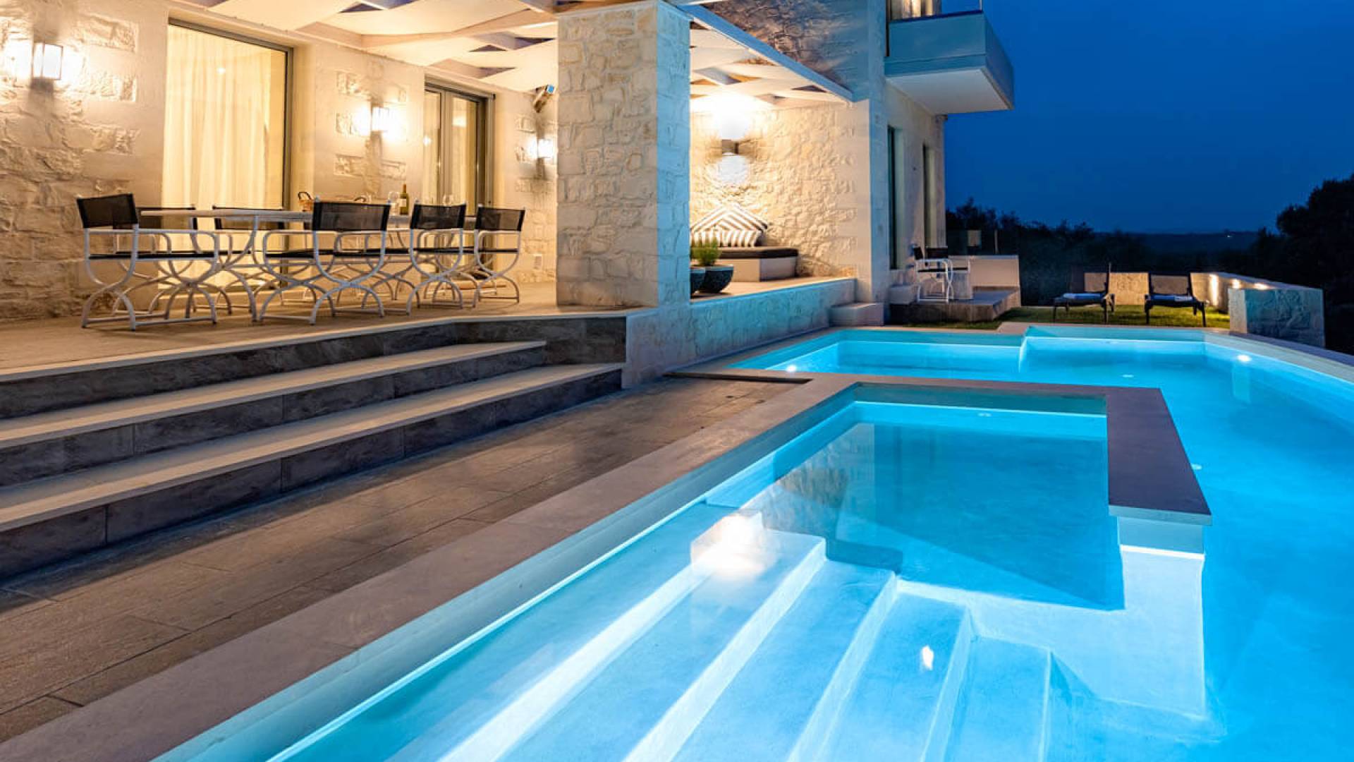Ιδιωτική πισίνα infinity 45 τ.μ., θερμαινόμενη, με ρηχό τμήμα για παιδιά