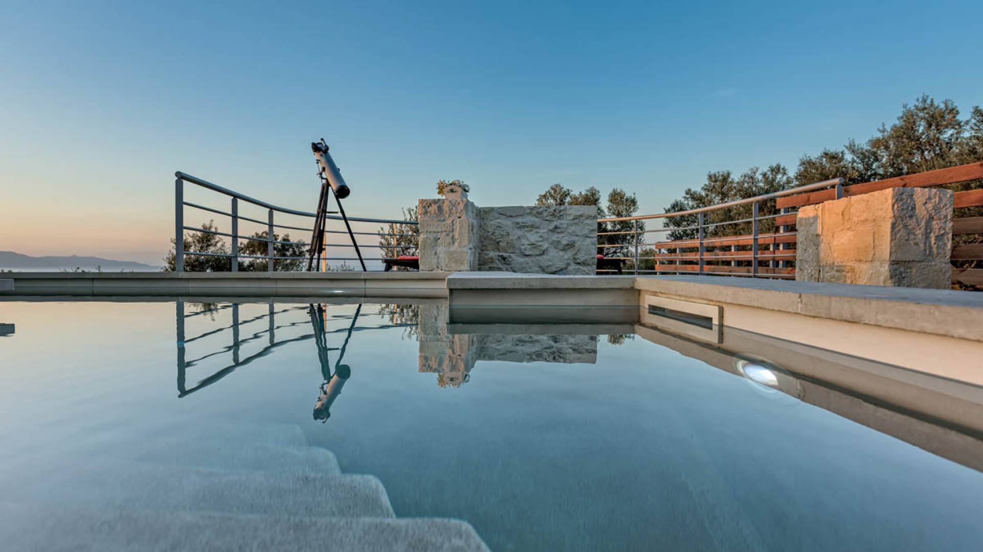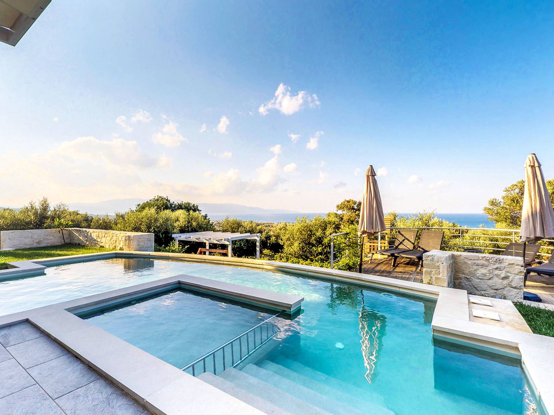 Ιδιωτική θερμαινόμενη πισίνα infinity με ρηχό τμήμα για παιδιά.
