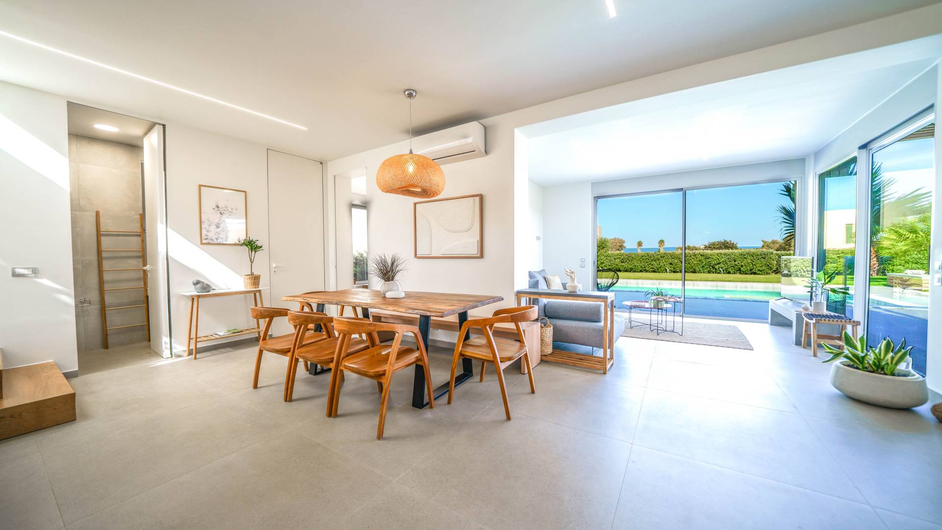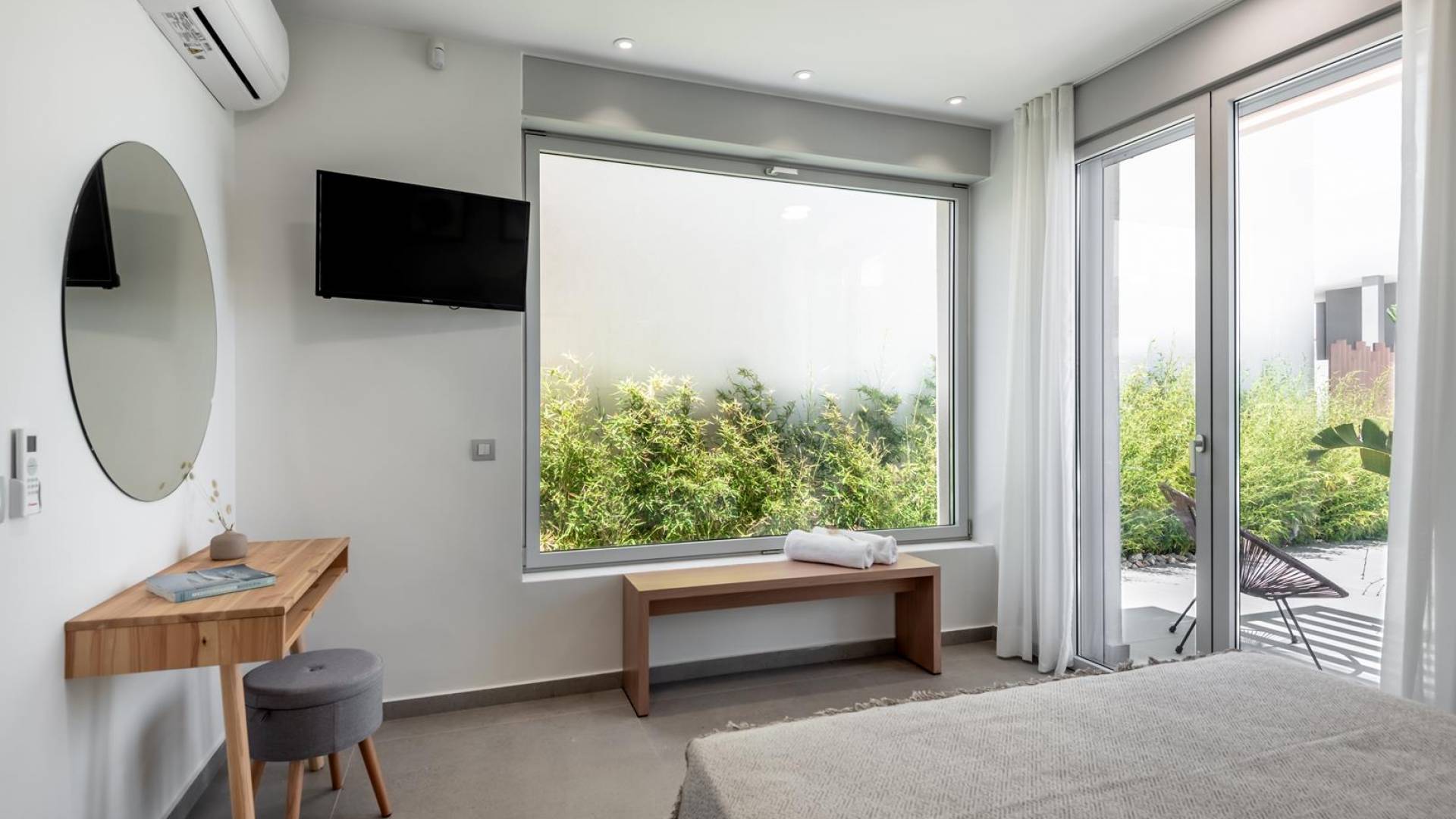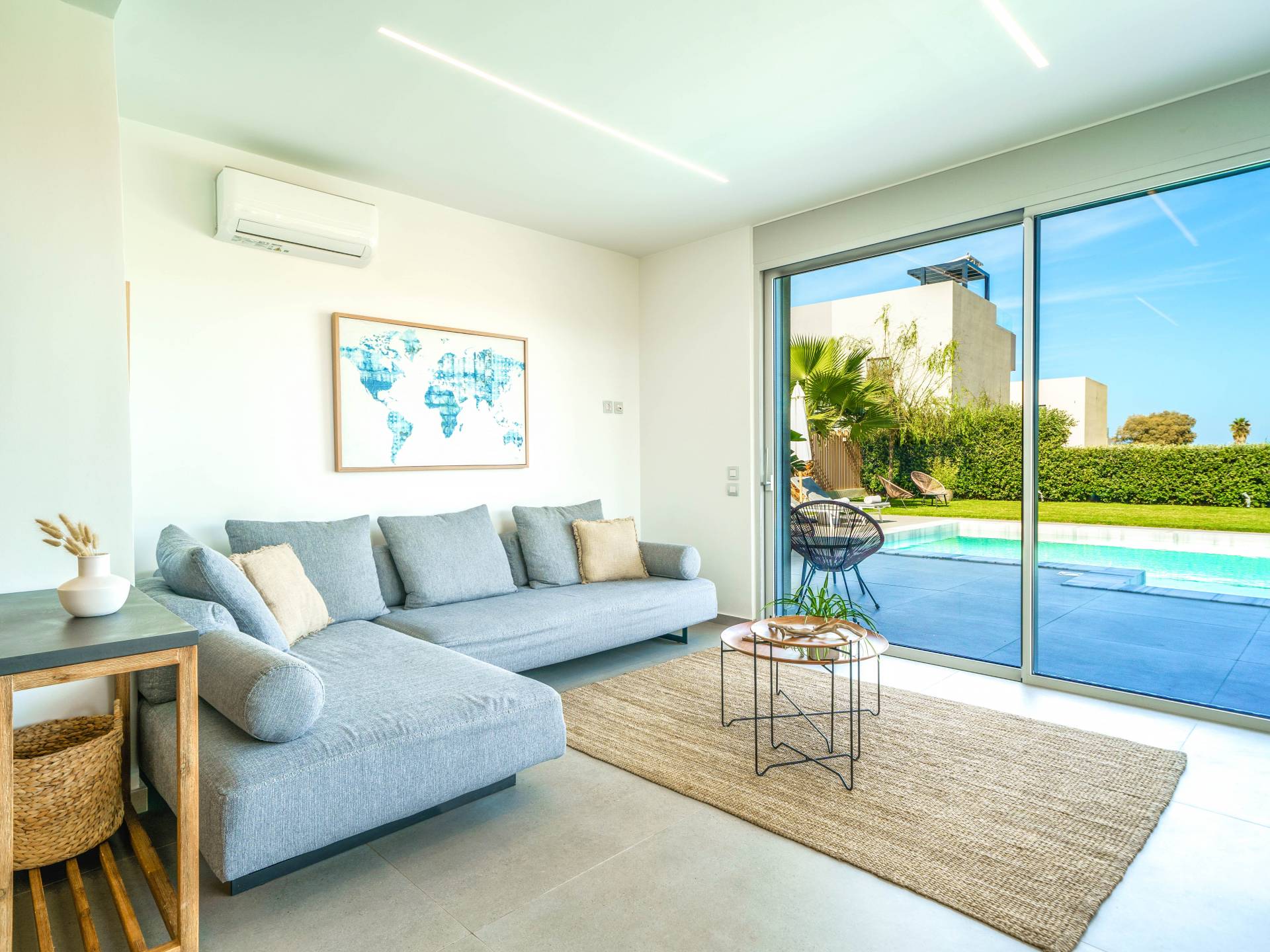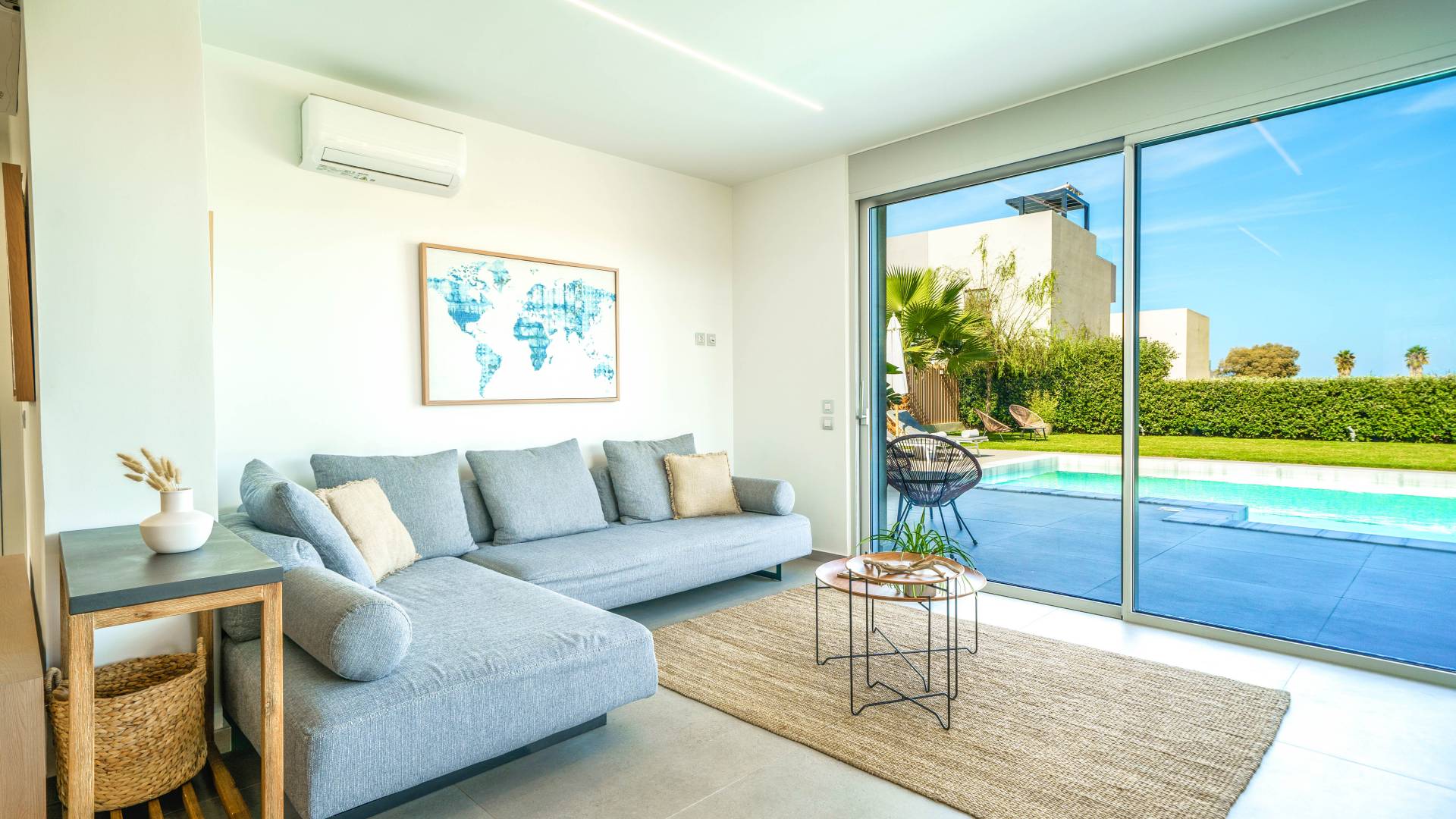 Το Pause είναι μια διώροφη βίλα, που μπορεί να φιλοξενήσει έως και 7 άτομα και αποτελείται από τρία υπνοδωμάτια, δύο από τα οποία βρίσκονται στον πρώτο όροφο. Τα μπάνια στον πρώτο όροφο έχουν ιδιωτικό μπάνιο με ντους. Στο ισόγειο υπάρχει άλλο ένα υπνοδωμάτιο. Η πολυτέλεια και ο μοντέρνος σχεδιασμός ολοκληρώνουν το τοπίο της σύγχρονης αρχιτεκτονικής και των προϊόντων υψηλής ποιότητας. Στο ισόγειο, υπάρχει ένας ευρύχωρος ενιαίος χώρος με πλήρως εξοπλισμένη κουζίνα, τραπεζαρία, σαλόνι με μοντέρνα επίπλωση και μεγάλη τηλεόραση smart επίπεδης οθόνης με δορυφορικά κανάλια. Οι μεγάλες πόρτες ανοίγουν στη βεράντα και την πισίνα, παρέχοντας μια απρόσκοπτη μετάβαση μεταξύ των εσωτερικών και εξωτερικών χώρων.