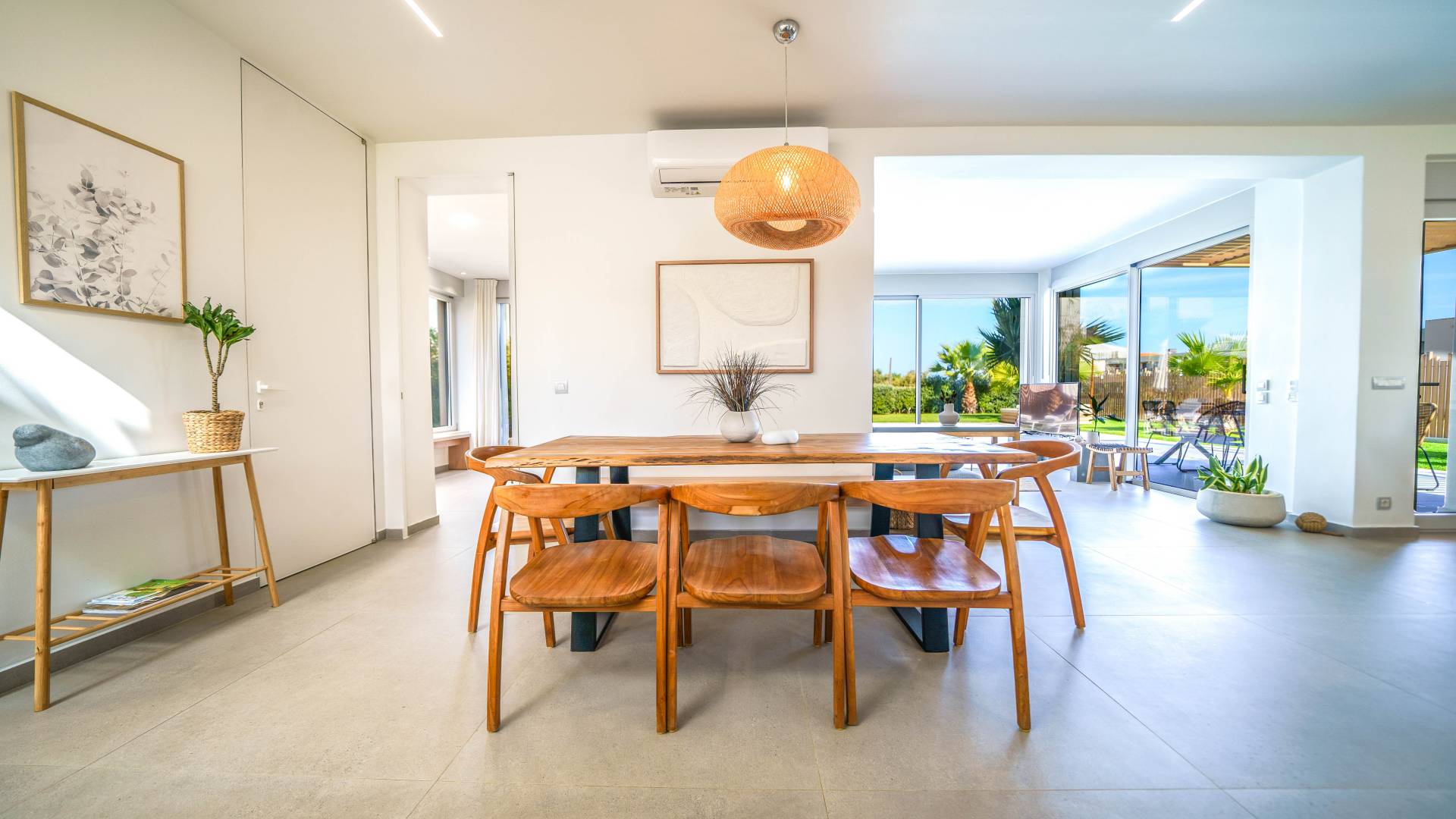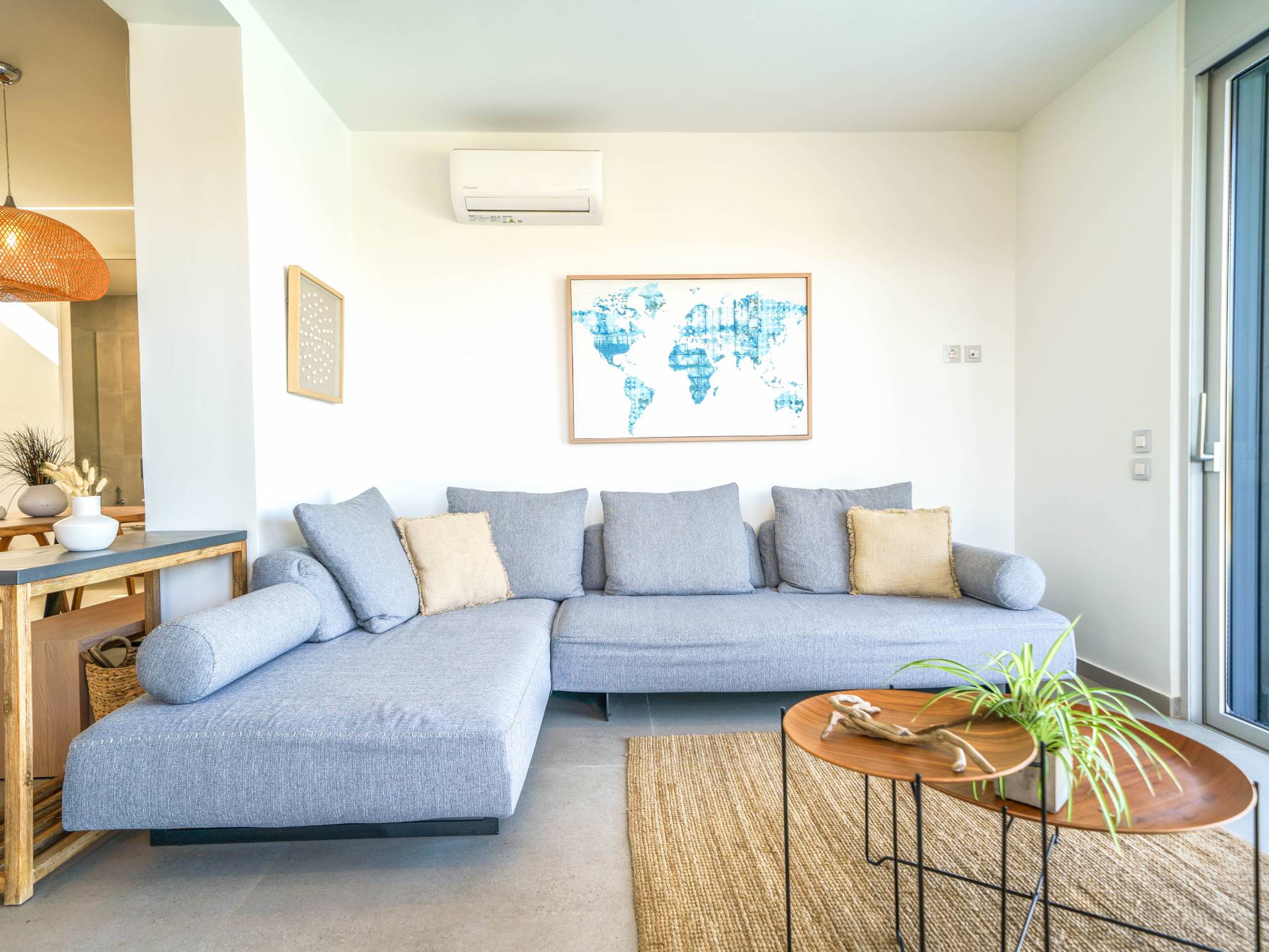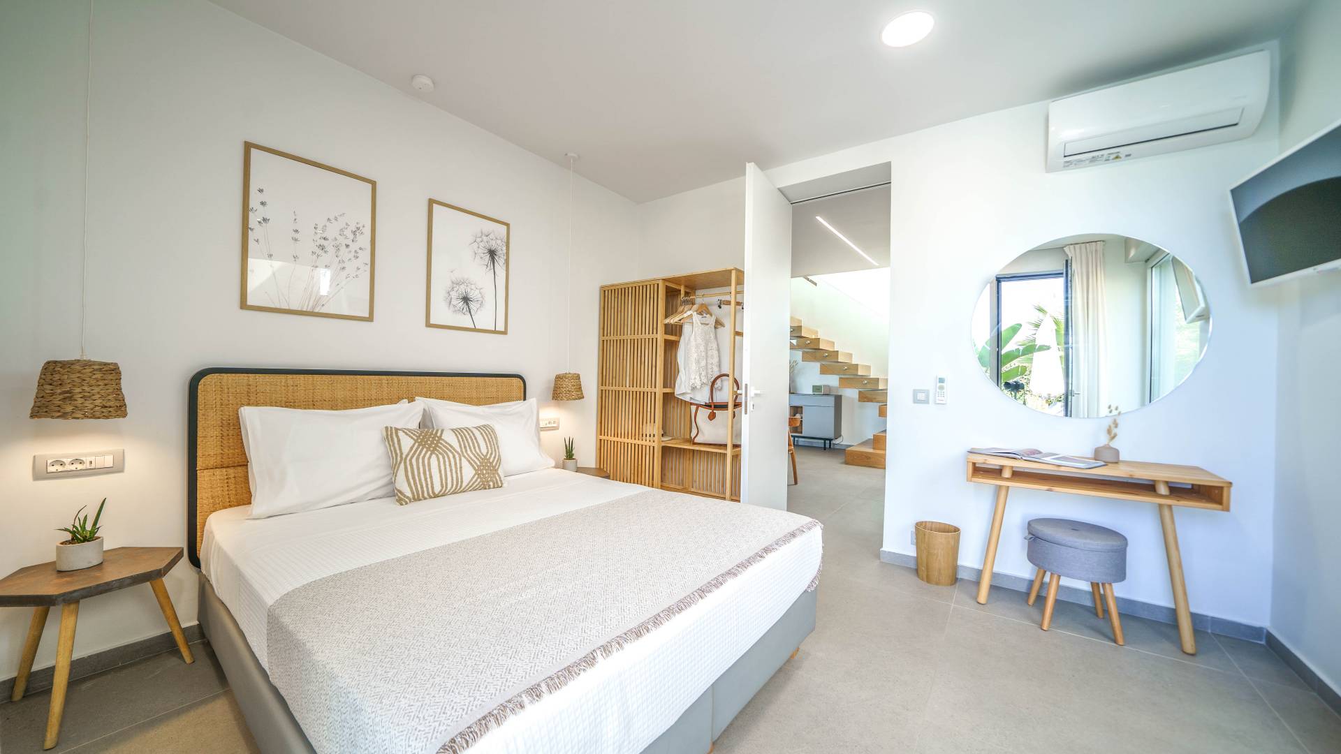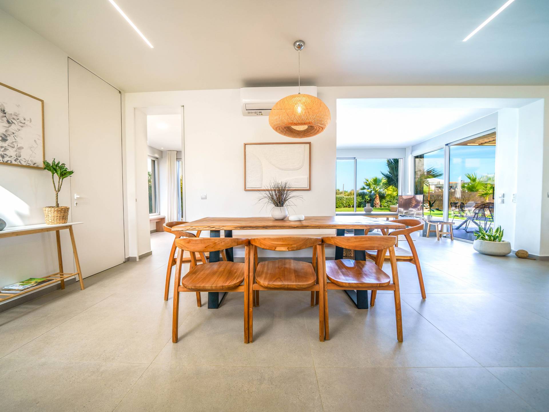 Το Pause είναι μια διώροφη βίλα, που μπορεί να φιλοξενήσει έως και 7 άτομα και αποτελείται από τρία υπνοδωμάτια, δύο από τα οποία βρίσκονται στον πρώτο όροφο. Τα μπάνια στον πρώτο όροφο έχουν ιδιωτικό μπάνιο με ντους. Στο ισόγειο υπάρχει άλλο ένα υπνοδωμάτιο. Η πολυτέλεια και ο μοντέρνος σχεδιασμός ολοκληρώνουν το τοπίο της σύγχρονης αρχιτεκτονικής και των προϊόντων υψηλής ποιότητας. Στο ισόγειο, υπάρχει ένας ευρύχωρος ενιαίος χώρος με πλήρως εξοπλισμένη κουζίνα, τραπεζαρία, σαλόνι με μοντέρνα επίπλωση και μεγάλη τηλεόραση smart επίπεδης οθόνης με δορυφορικά κανάλια. Οι μεγάλες πόρτες ανοίγουν στη βεράντα και την πισίνα, παρέχοντας μια απρόσκοπτη μετάβαση μεταξύ των εσωτερικών και εξωτερικών χώρων.