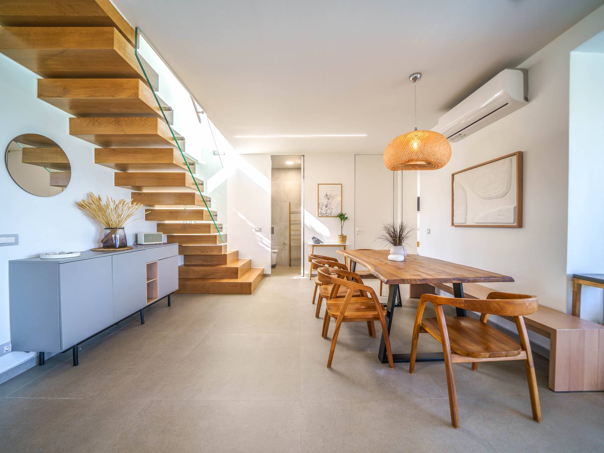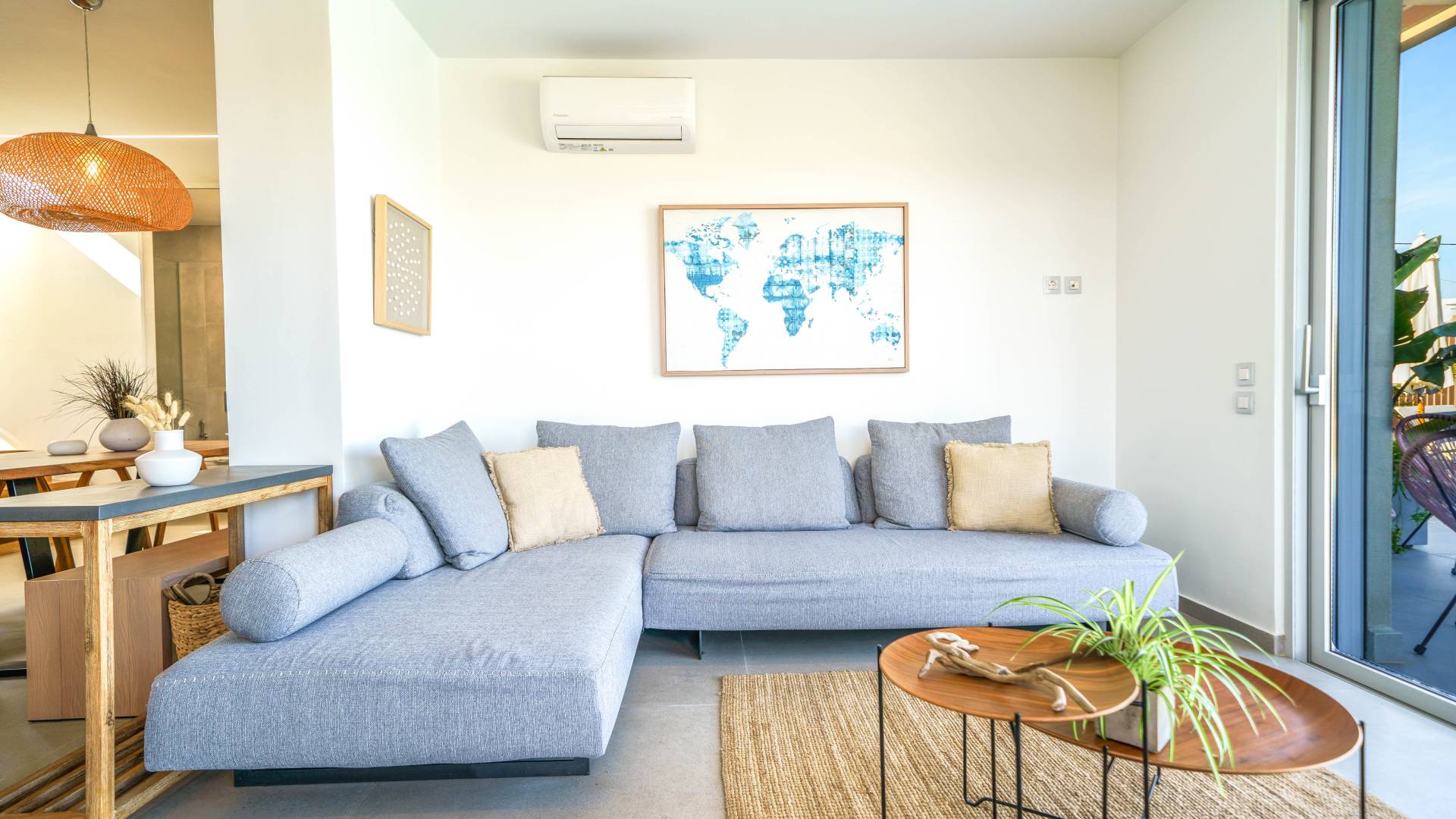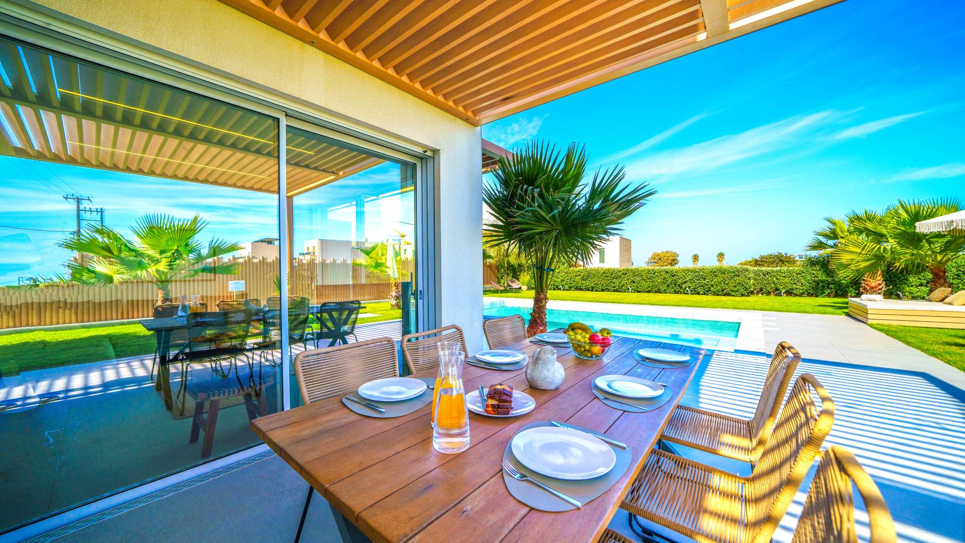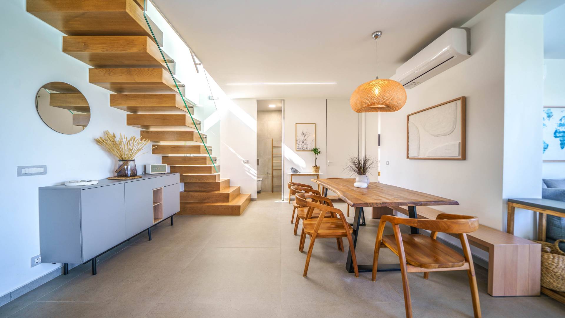 Το Pause είναι μια διώροφη βίλα, που μπορεί να φιλοξενήσει έως και 7 άτομα και αποτελείται από τρία υπνοδωμάτια, δύο από τα οποία βρίσκονται στον πρώτο όροφο. Τα μπάνια στον πρώτο όροφο έχουν ιδιωτικό μπάνιο με ντους. Στο ισόγειο υπάρχει άλλο ένα υπνοδωμάτιο. Η πολυτέλεια και ο μοντέρνος σχεδιασμός ολοκληρώνουν το τοπίο της σύγχρονης αρχιτεκτονικής και των προϊόντων υψηλής ποιότητας. Στο ισόγειο, υπάρχει ένας ευρύχωρος ενιαίος χώρος με πλήρως εξοπλισμένη κουζίνα, τραπεζαρία, σαλόνι με μοντέρνα επίπλωση και μεγάλη τηλεόραση smart επίπεδης οθόνης με δορυφορικά κανάλια. Οι μεγάλες πόρτες ανοίγουν στη βεράντα και την πισίνα, παρέχοντας μια απρόσκοπτη μετάβαση μεταξύ των εσωτερικών και εξωτερικών χώρων.