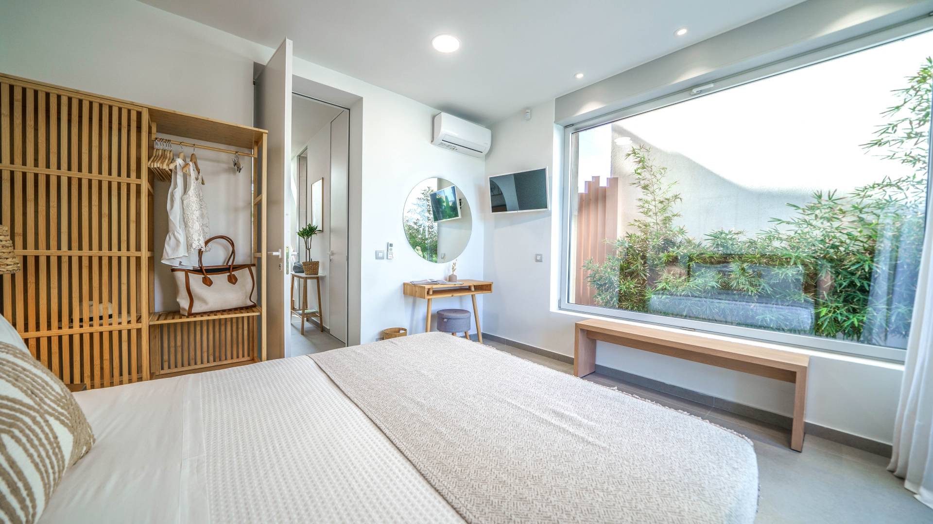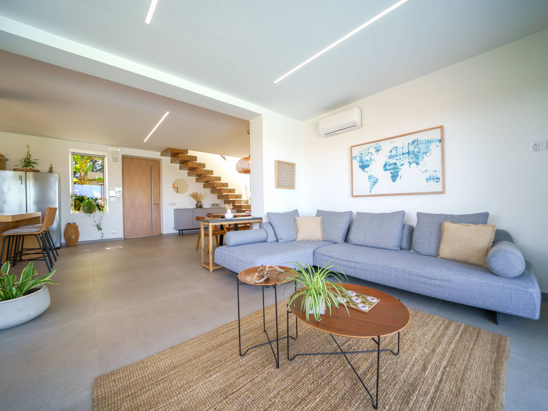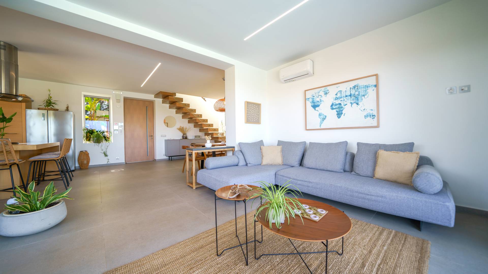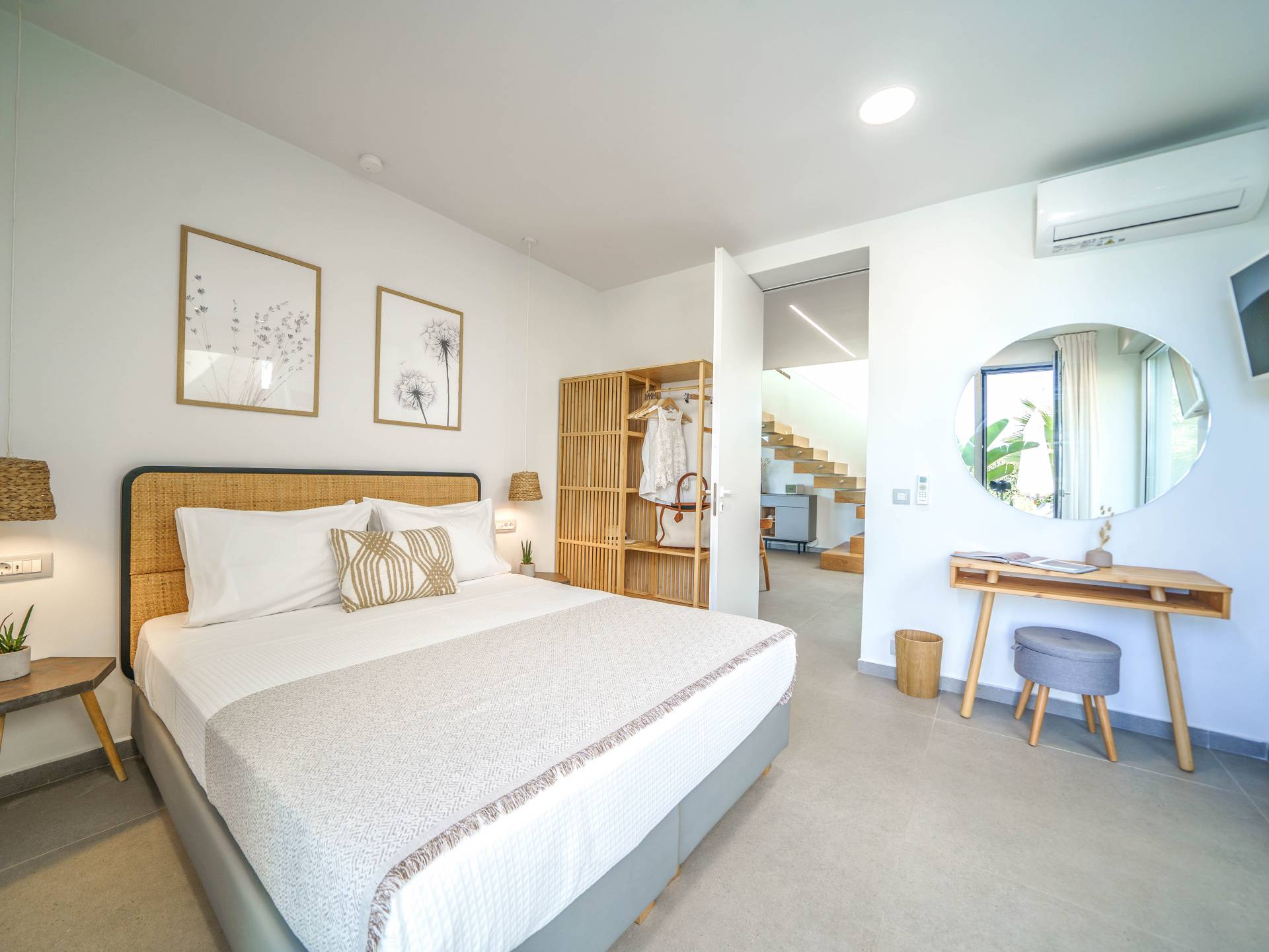 Το Pause είναι μια διώροφη βίλα, που μπορεί να φιλοξενήσει έως και 7 άτομα και αποτελείται από τρία υπνοδωμάτια, δύο από τα οποία βρίσκονται στον πρώτο όροφο. Τα μπάνια στον πρώτο όροφο έχουν ιδιωτικό μπάνιο με ντους. Στο ισόγειο υπάρχει άλλο ένα υπνοδωμάτιο. Η πολυτέλεια και ο μοντέρνος σχεδιασμός ολοκληρώνουν το τοπίο της σύγχρονης αρχιτεκτονικής και των προϊόντων υψηλής ποιότητας. Στο ισόγειο, υπάρχει ένας ευρύχωρος ενιαίος χώρος με πλήρως εξοπλισμένη κουζίνα, τραπεζαρία, σαλόνι με μοντέρνα επίπλωση και μεγάλη τηλεόραση smart επίπεδης οθόνης με δορυφορικά κανάλια. Οι μεγάλες πόρτες ανοίγουν στη βεράντα και την πισίνα, παρέχοντας μια απρόσκοπτη μετάβαση μεταξύ των εσωτερικών και εξωτερικών χώρων.