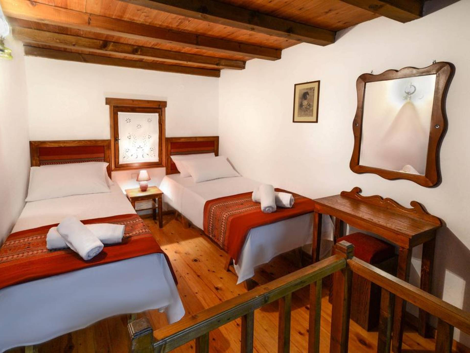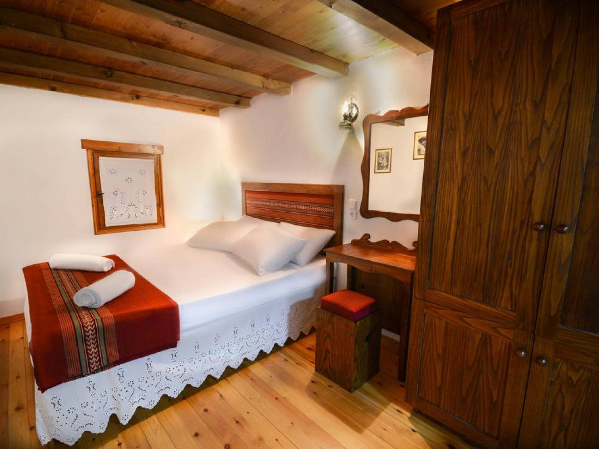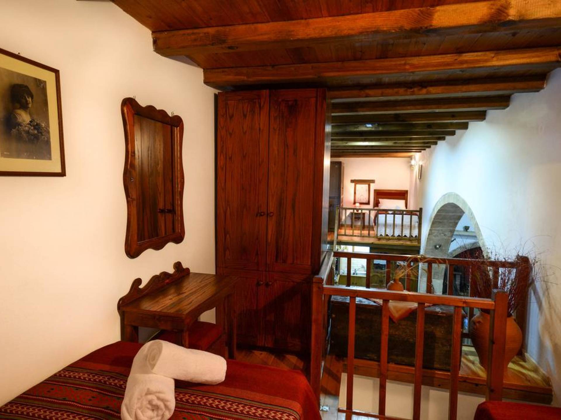 Οι σοφίτες διαθέτουν 2 μονά κρεβάτια και 1 διπλό κρεβάτι. Παραδοσιακά οικογενειακά κειμήλια και αξεσουάρ έχουν τοποθετηθεί στο εσωτερικό της βίλας με φροντίδα, δίνοντας την αίσθηση του πολιτισμού της Κρήτης. Η ξύλινη οροφή, σε συνδυασμό με τους πέτρινους τοίχους της βίλας και την παραδοσιακή οροφή, προσφέρει μια ευχάριστη και δροσερή ατμόσφαιρα το καλοκαίρι και ευχάριστη ζεστασιά τη χειμερινή περίοδο.