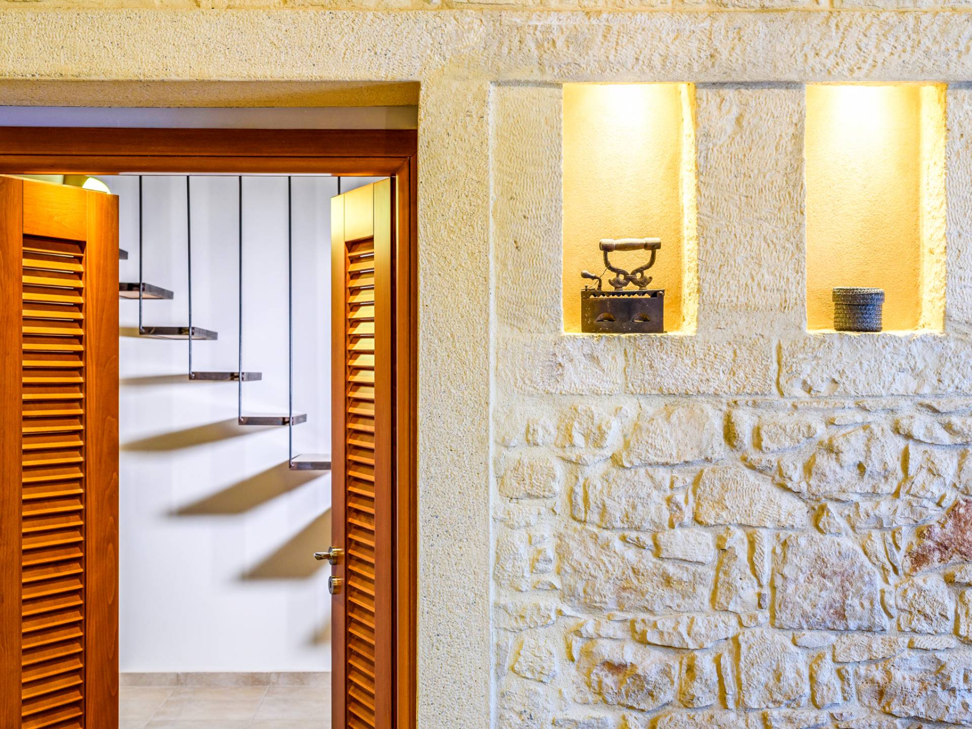 Διαθέτει 4 υπνοδωμάτια και 3 μπάνια καθώς και WC στο ισόγειο. Στο ισόγειο, υπάρχει το σαλόνι με την κουζίνα, το WC και 3 υπνοδωμάτια. Στον πρώτο όροφο βρίσκεται το τέταρτο υπνοδωμάτιο με μια υπέροχη βεράντα με θέα στην πισίνα και τη θάλασσα.