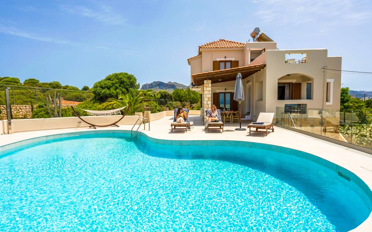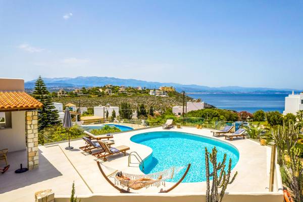 Seaview Villa Aro Chania - Απολαύστε την εκπληκτική θέα στη θάλασσα και το ηλιοβασίλεμα από την άνεση της ιδιωτικής σας βίλας, με ευρύχωρους, ηλιόλουστους εξωτερικούς χώρους όλη την ημέρα. Ιδανική για οικογένειες και παρέες, η βίλα βρίσκεται σε κοντινή απόσταση με τα πόδια από μια αμμώδη παραλία και σε βολική τοποθεσία κοντά σε σούπερ μάρκετ, ταβέρνες και καφέ, προσφέροντας την ιδανική ισορροπία χαλάρωσης και άνεσης.