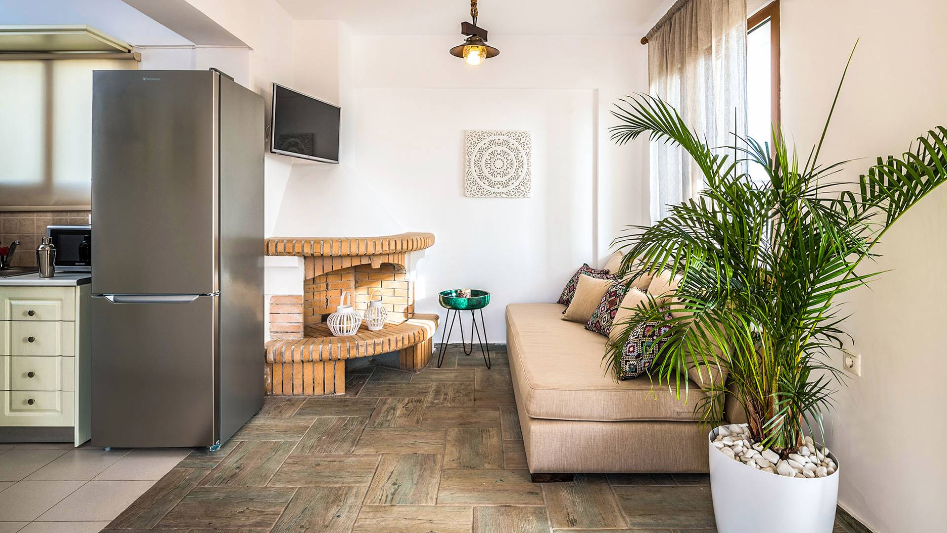 Τα ανοιχτά και χαλαρωτικά χρώματα της Villa Aro Chania σε έπιπλα και υφάσματα, σε συνδυασμό με τις ανέσεις που αναζητούν όλοι οι επισκέπτες, όπως η δορυφορική τηλεόραση σε κάθε δωμάτιο και το δωρεάν Wi-Fi υψηλής ταχύτητας, είναι τα βασικά στοιχεία για χαλαρωτικές και απολαυστικές διακοπές σε μια από τις πιο όμορφες περιοχές της Κρήτης. Υπάρχει επίσης μια πλήρως εξοπλισμένη κουζίνα και μεγάλο καθιστικό, ιδανικό για ξεκούραση και χαλάρωση. Το καθιστικό περιλαμβάνει επίσης τζάκι, δορυφορική τηλεόραση, CD και DVD Player.