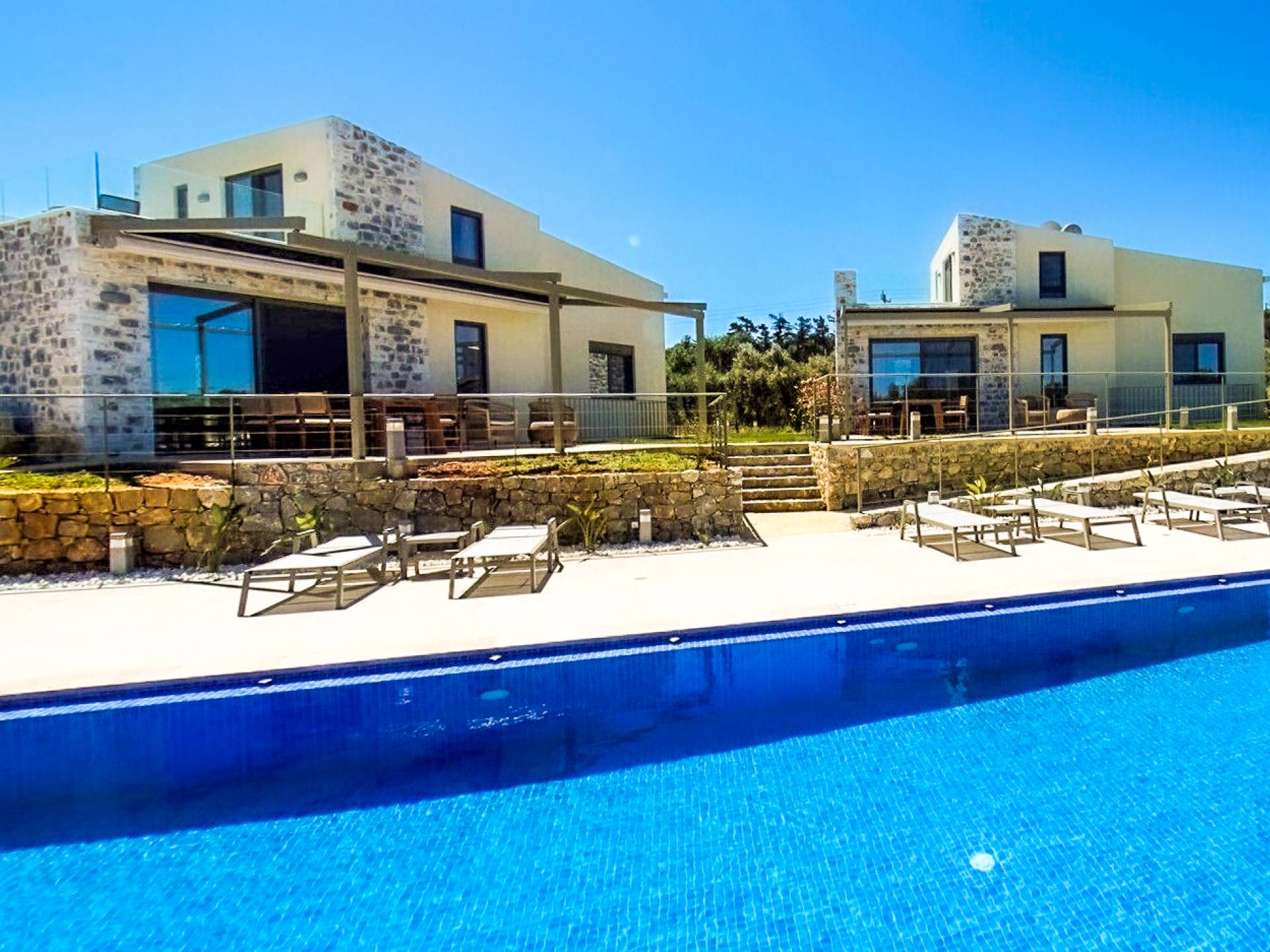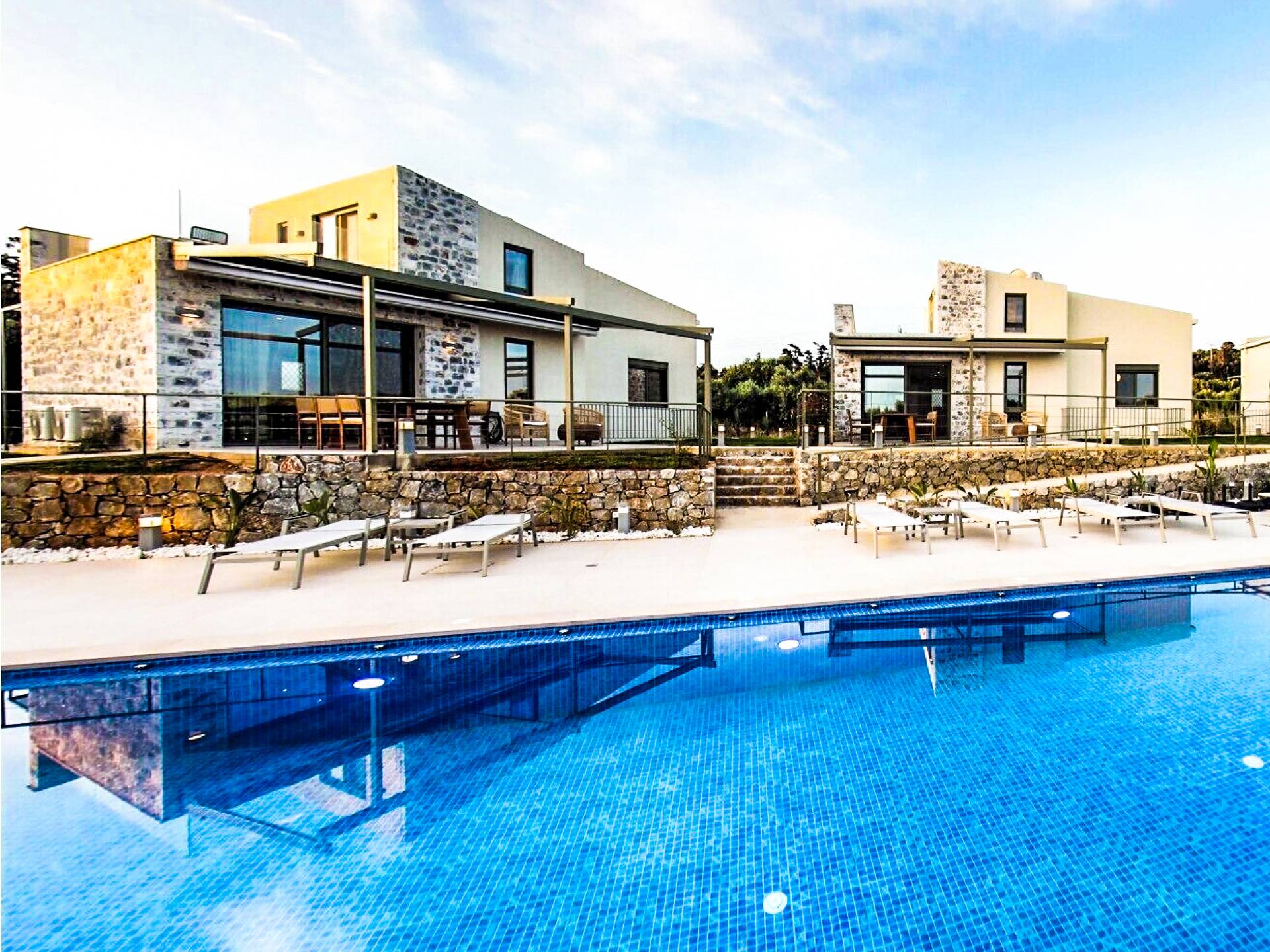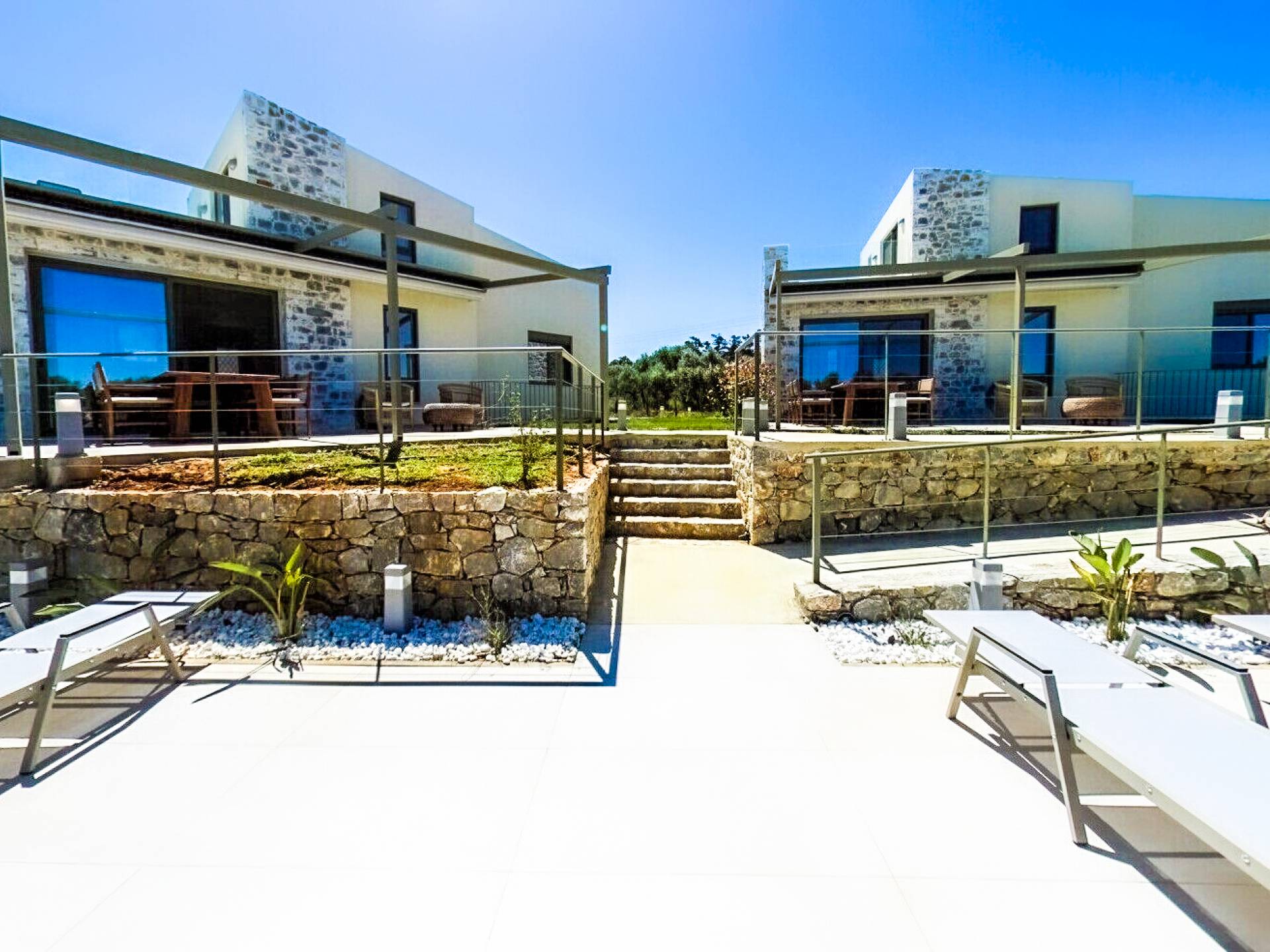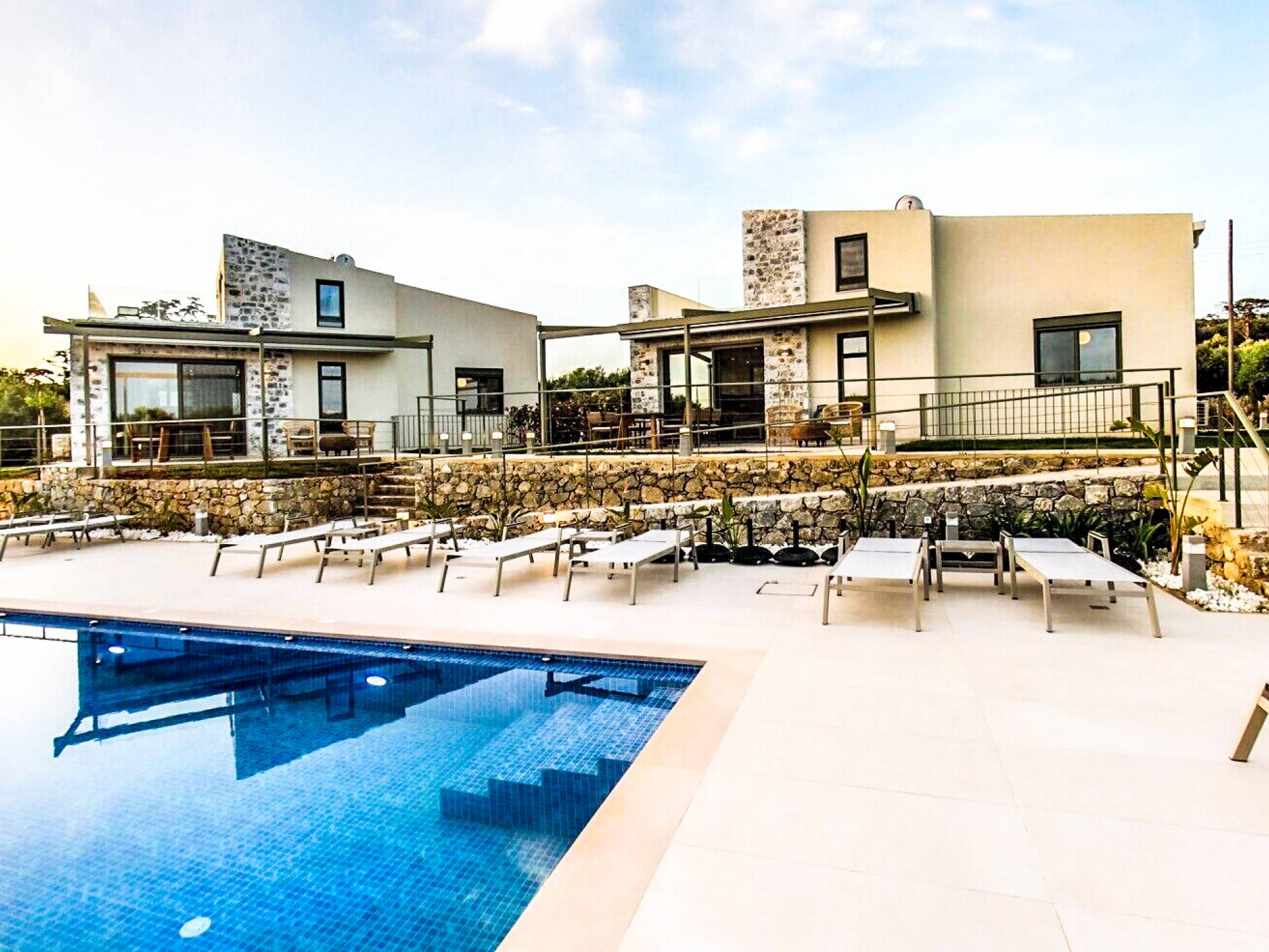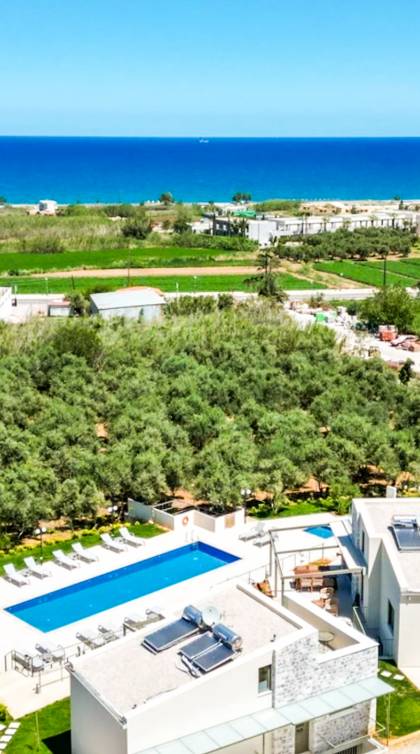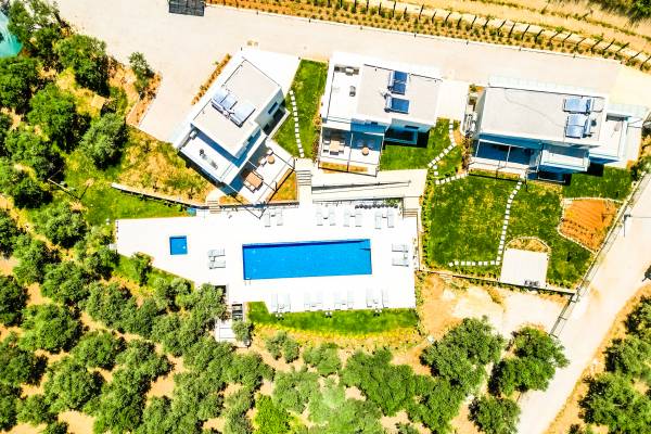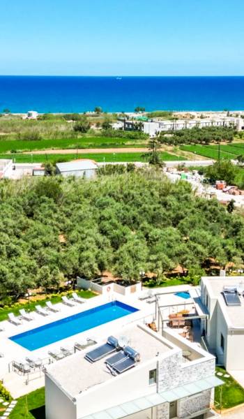 Sotino Villas Chania - 2 Villas for Exclusive Use - These villas consists of two three-storey identical villas that can host up to 20 persons. They are placed in an olive grove just 600m from the beach. The villas offer a private outdoor space and a spacious swimming pool and a kiddie pool. You will get two Villas with a total space of 300m2.
