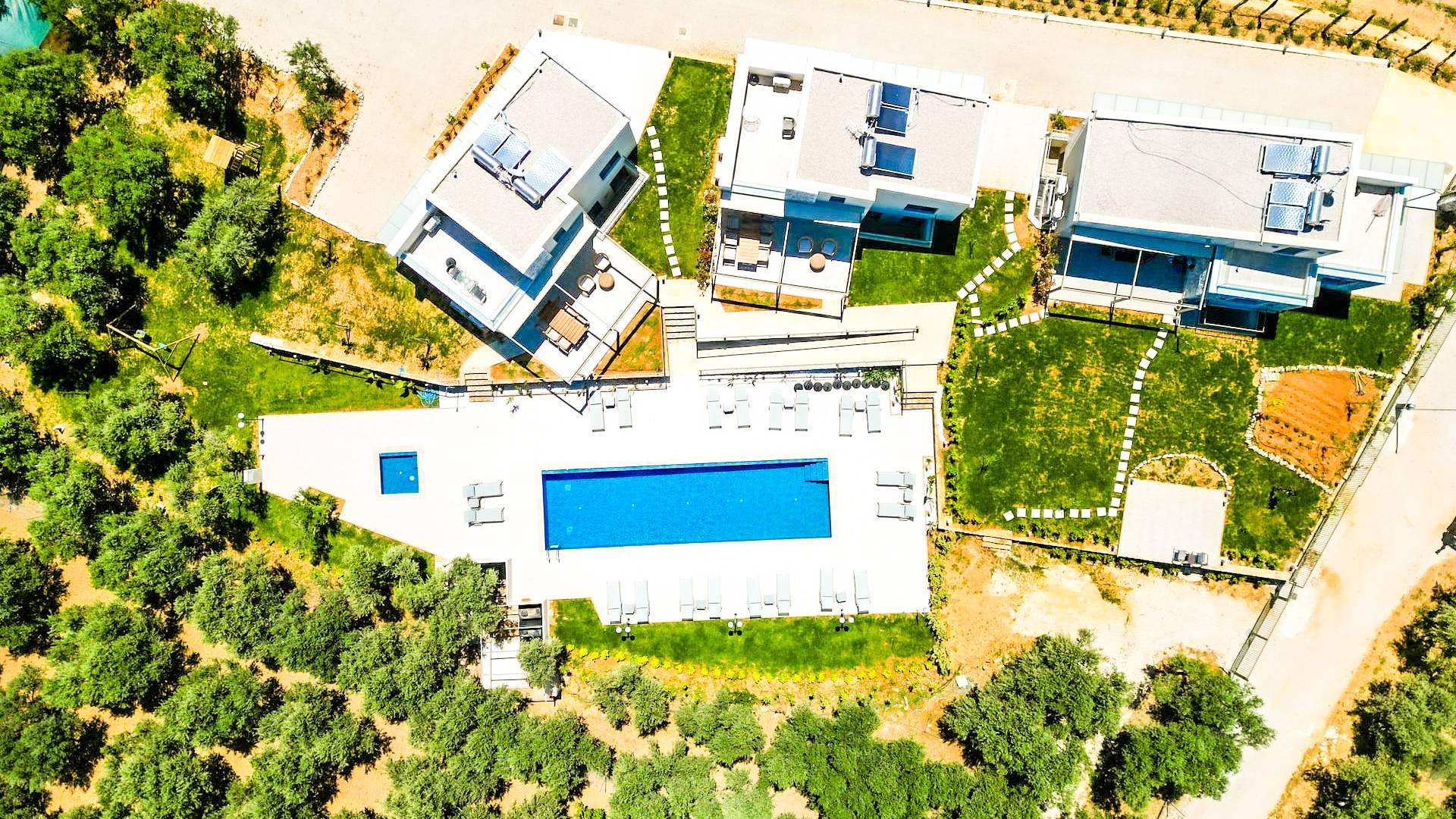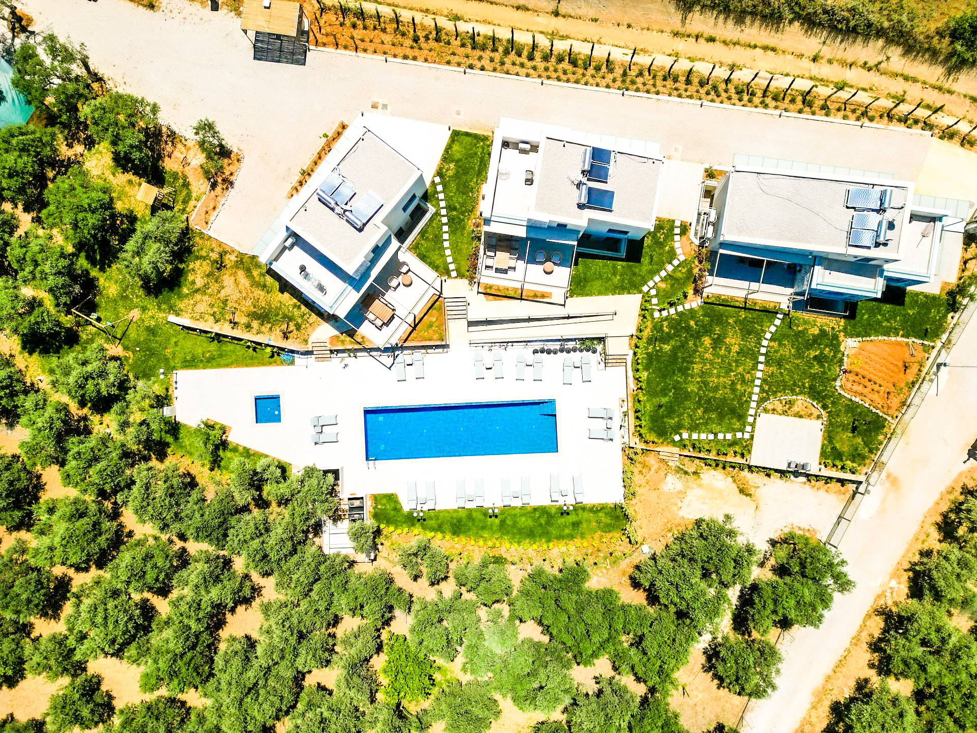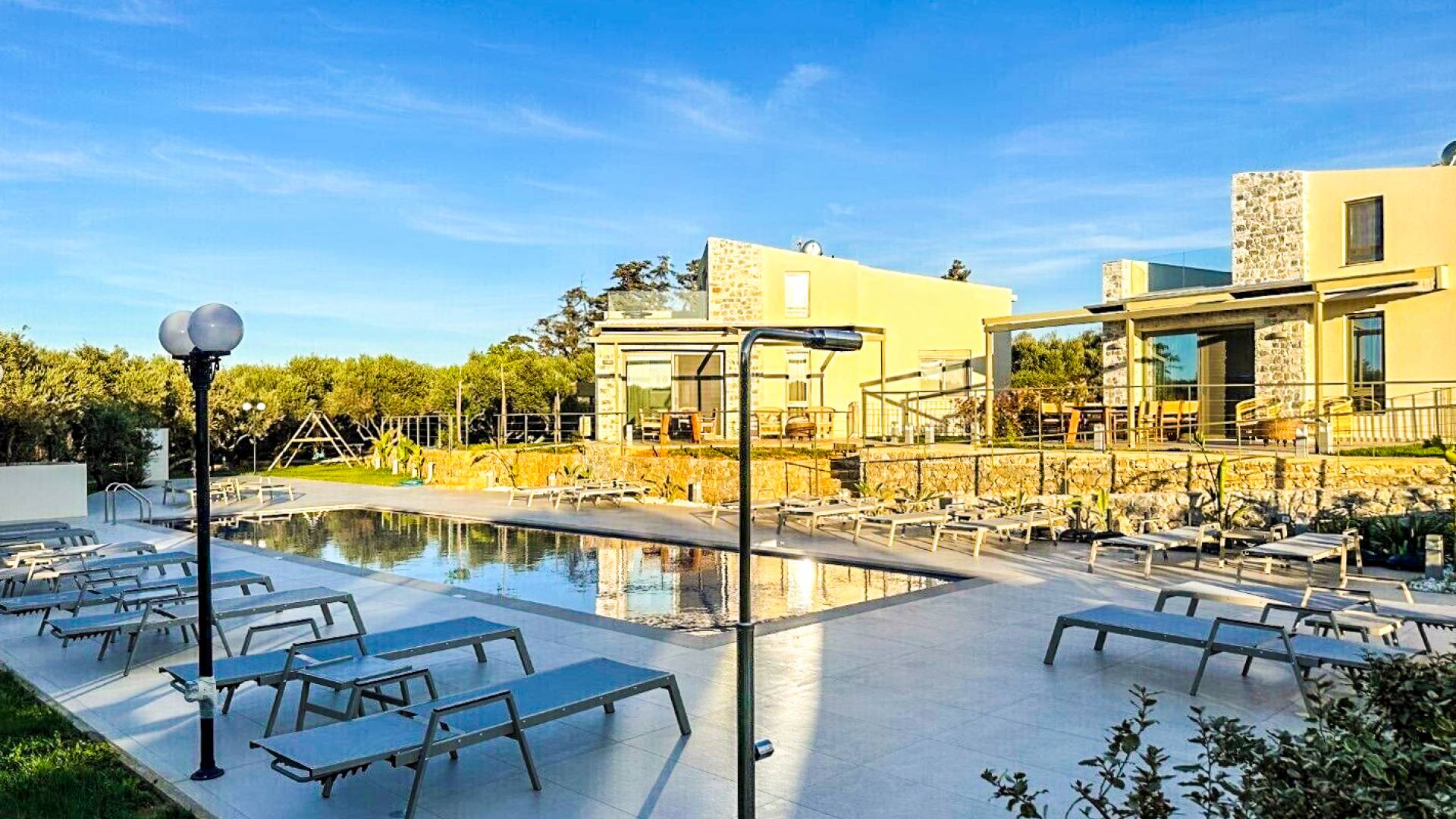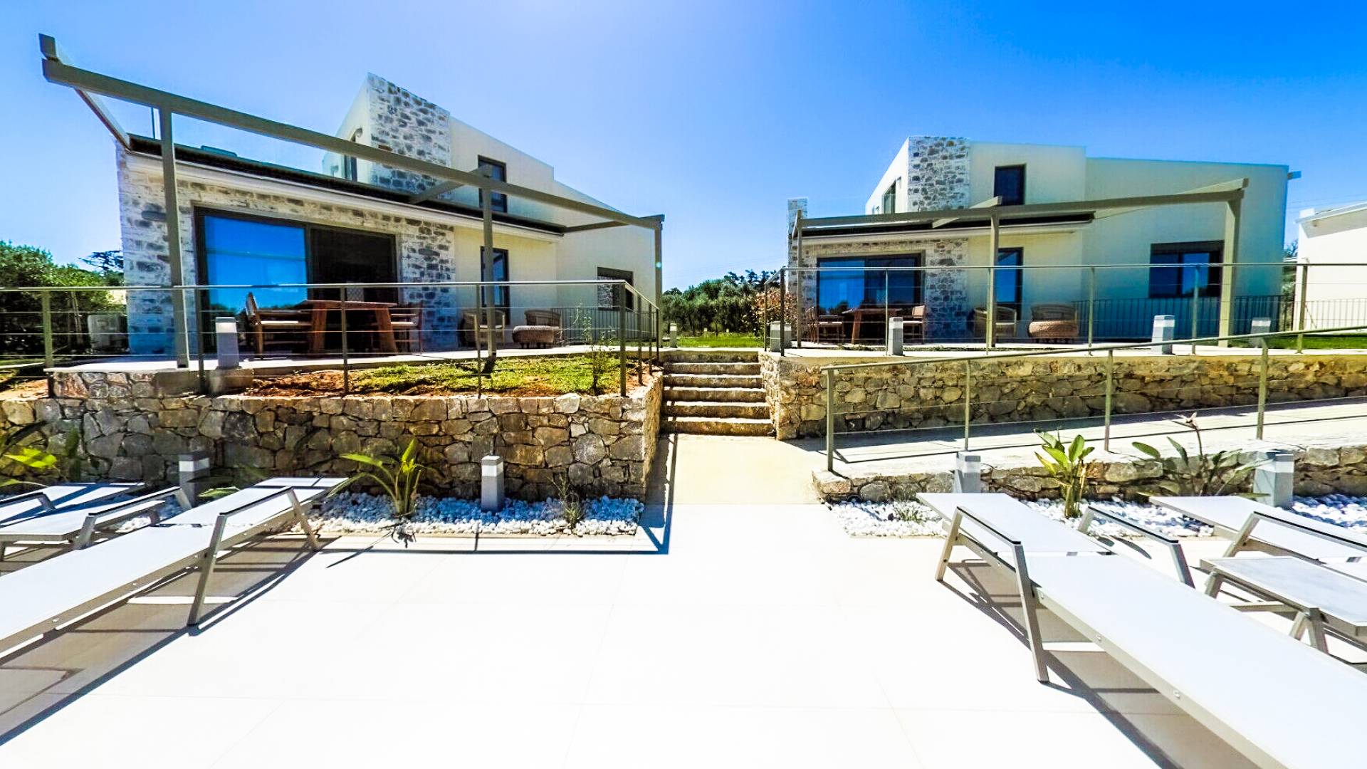 Sotino Villas Chania - 2 Villas for Exclusive Use - These villas consists of two three-storey identical villas that can host up to 20 persons. They are placed in an olive grove just 600m from the beach. The villas offer a private outdoor space and a spacious swimming pool and a kiddie pool. You will get two Villas with a total space of 300m2.