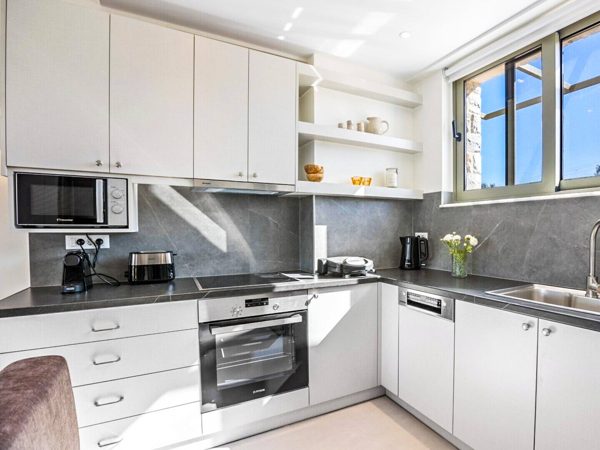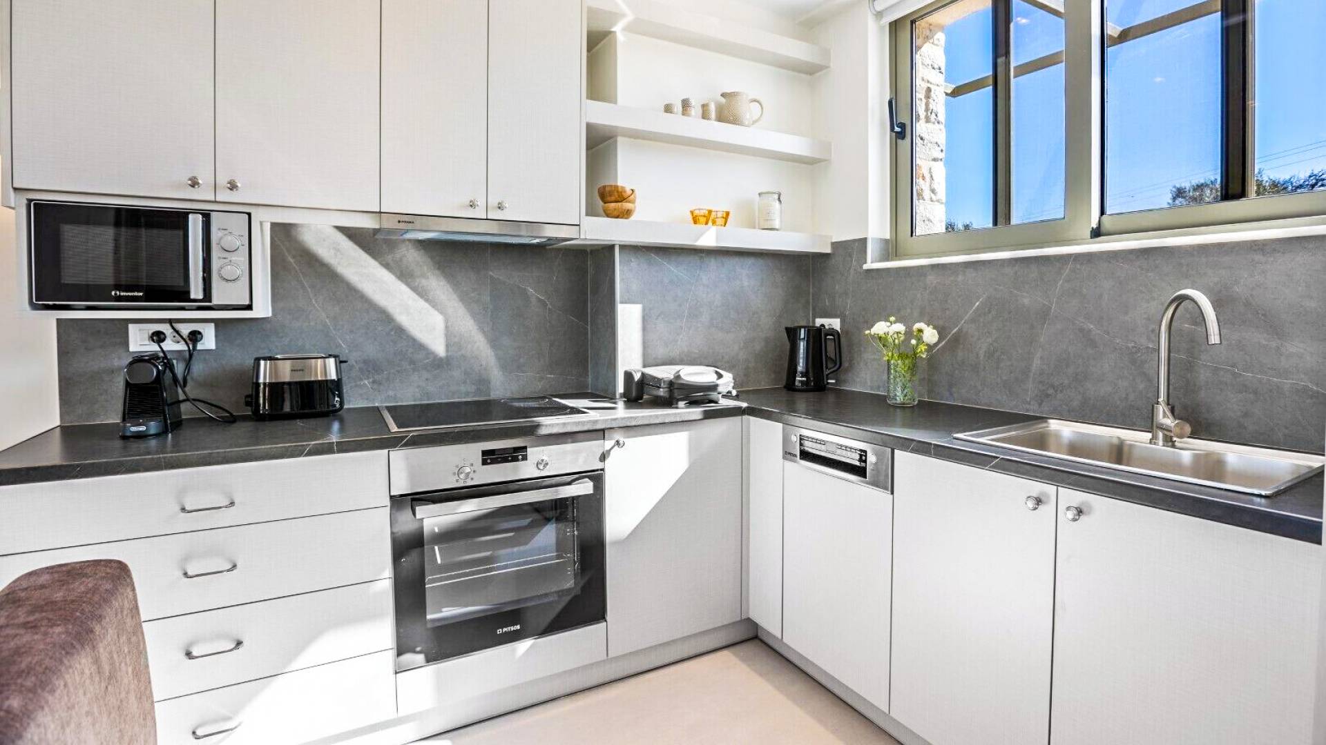 - Mitos Villas Chania have private parking area with electric vehicle charging stations.