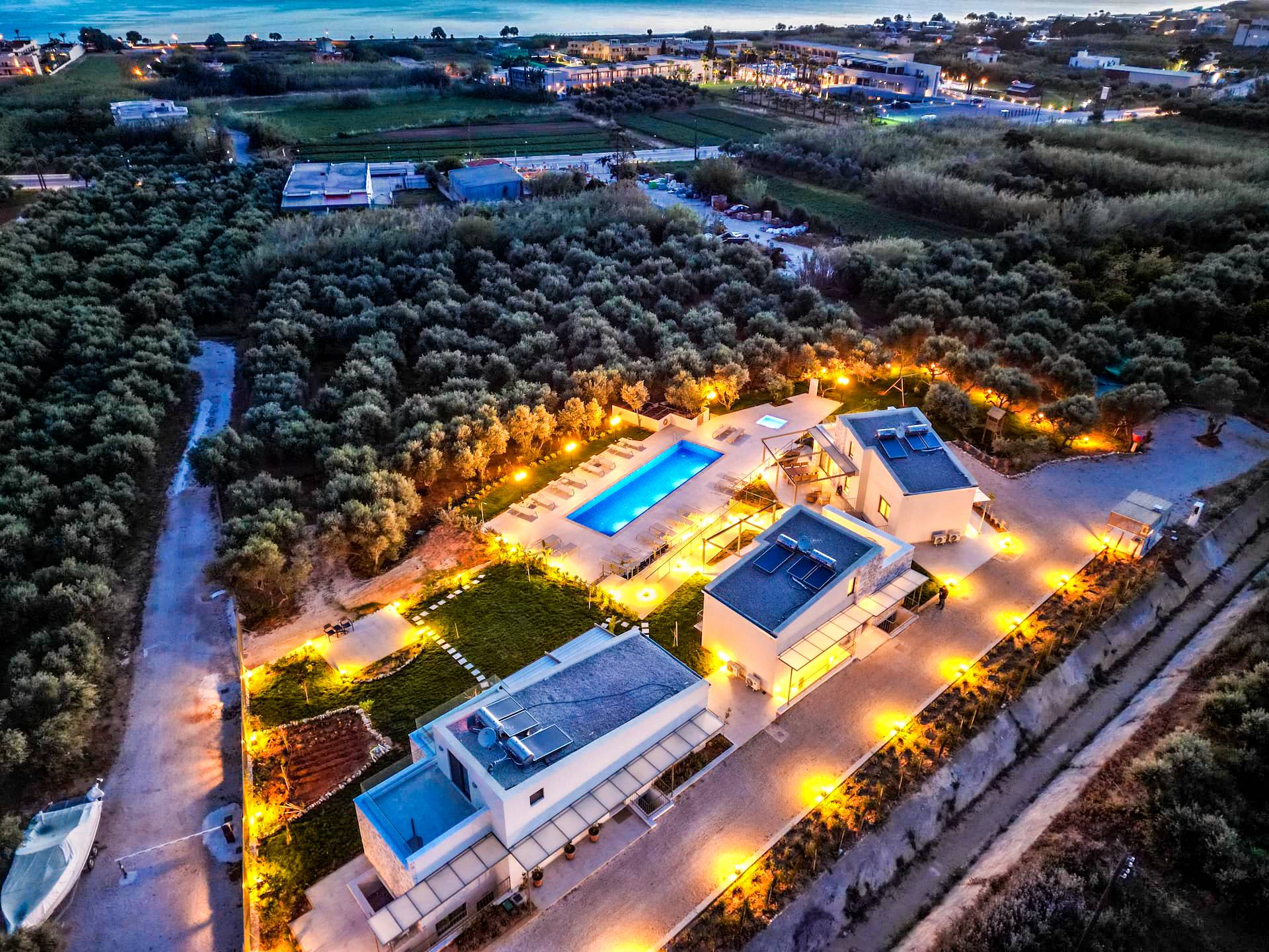 Sotino Villas Chania - 2 Villas for Exclusive Use are placed in an olive grove in the village of Pirgos Psilonerou just 20 min away from the town of Chania. The nearest airport is Ioannis Daskalogiannis, which is a 35-minute drive. The port of Souda is within a 25 minutes drive. The villas are ideally situated to reach the beaches of Falasarna, Elafonisi and Balos.