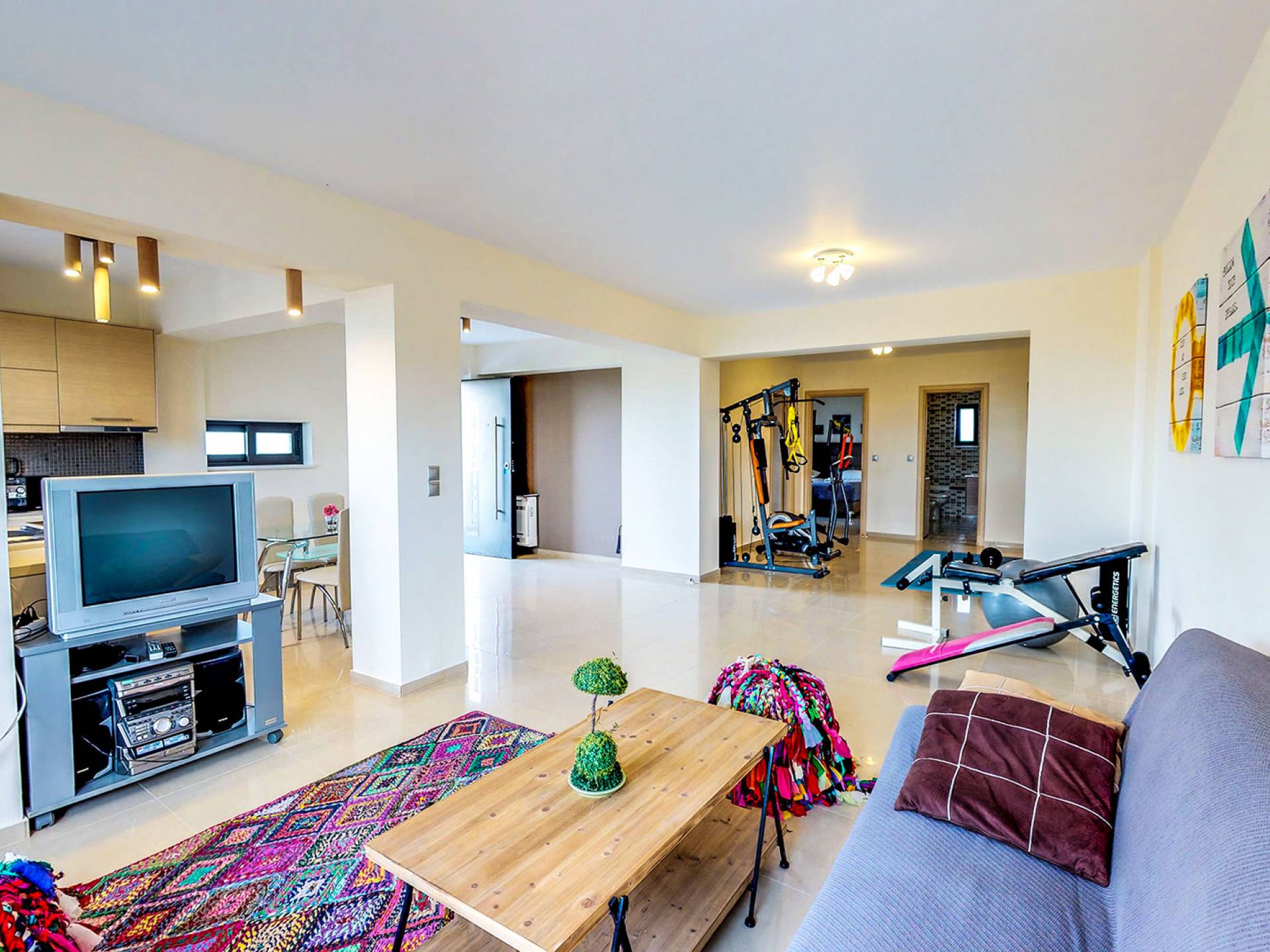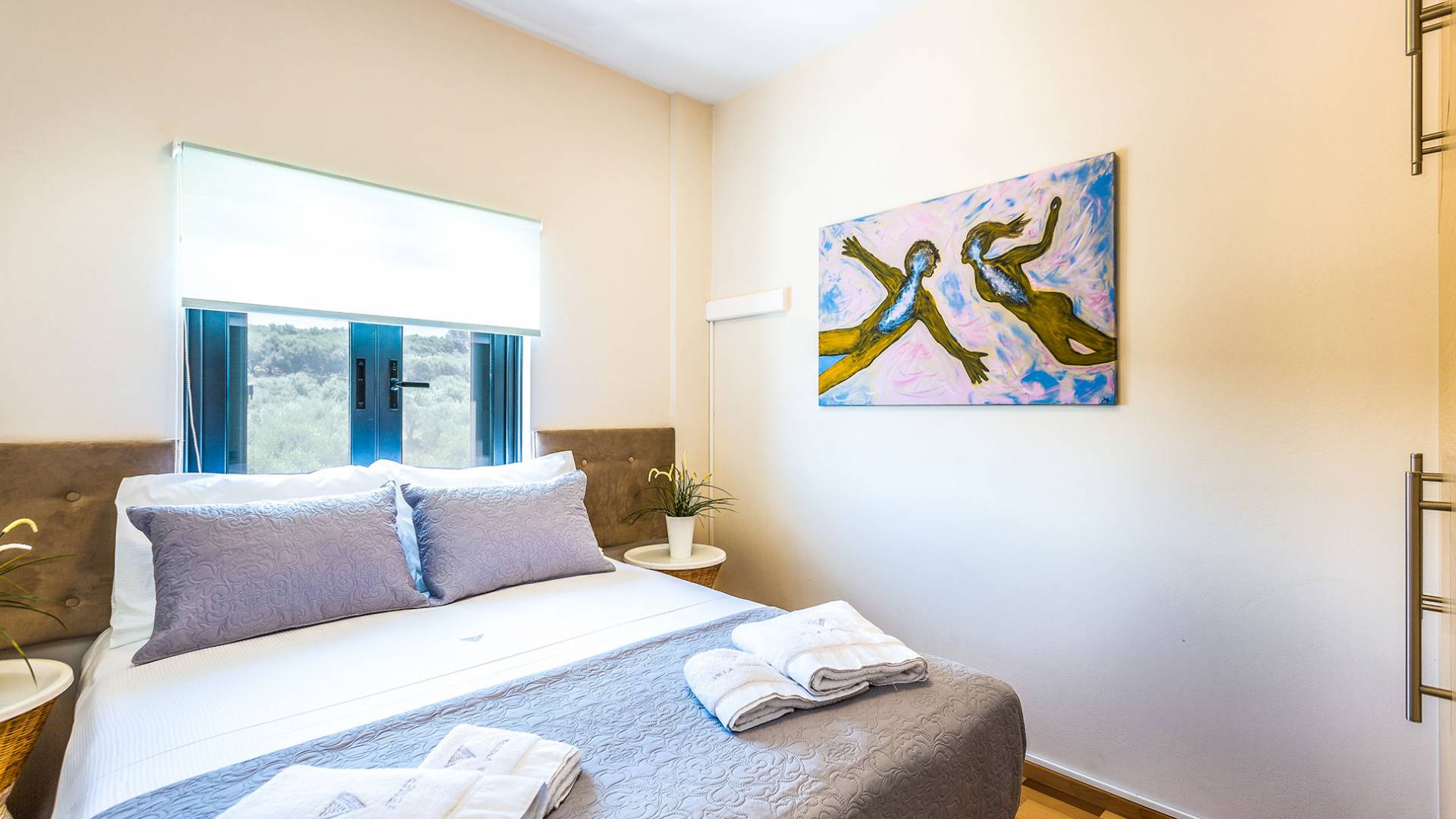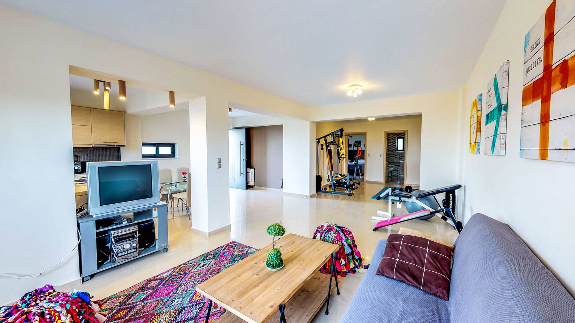 Κύριο επίπεδο: ανοιχτό σαλόνι με θέα στην πισίνα και τη θάλασσα, πλήρως εξοπλισμένη κουζίνα, τραπεζαρία, δύο διπλά υπνοδωμάτια, ένα κοινόχρηστο μπάνιο και ιδιωτικό γυμναστήριο.