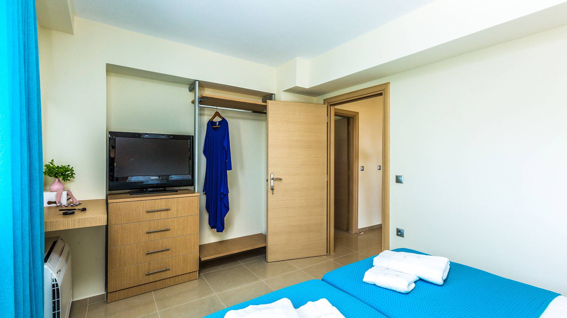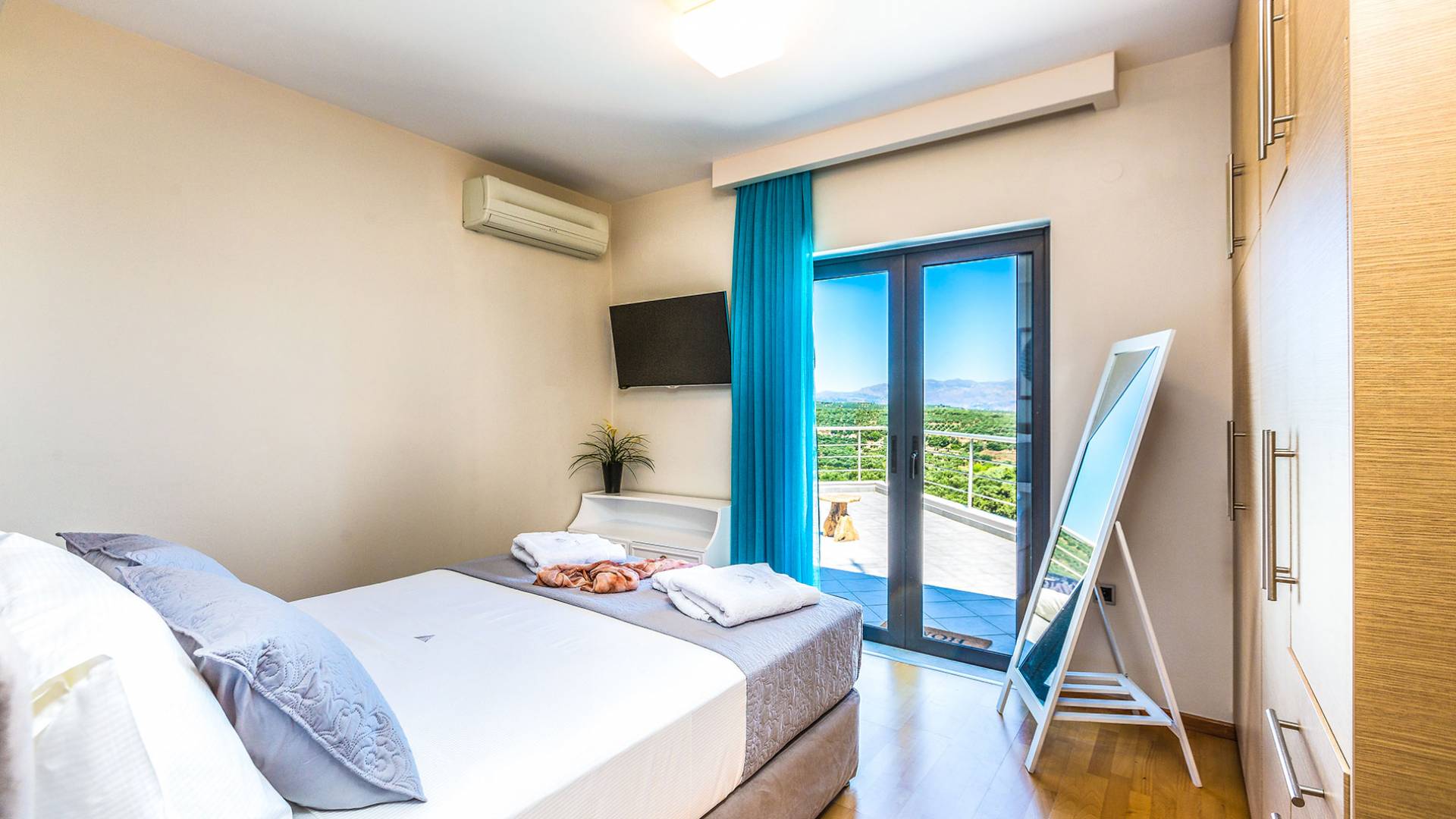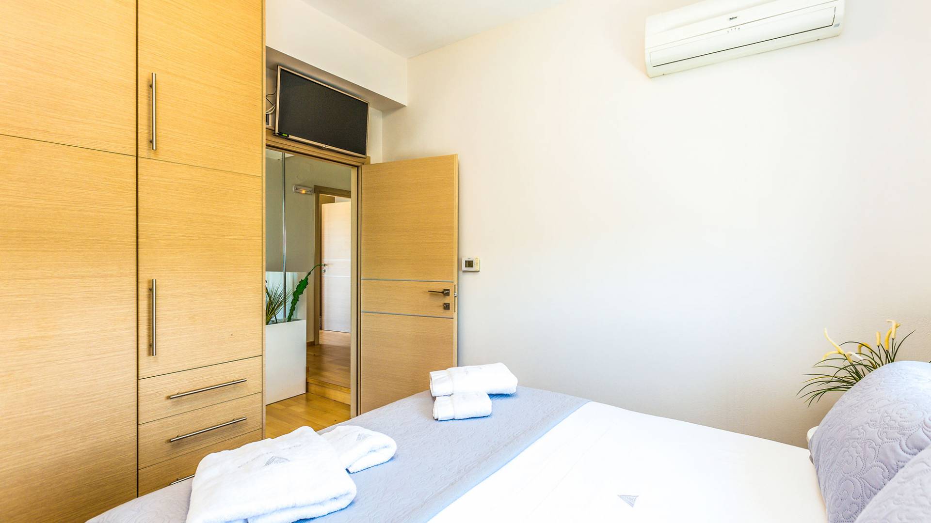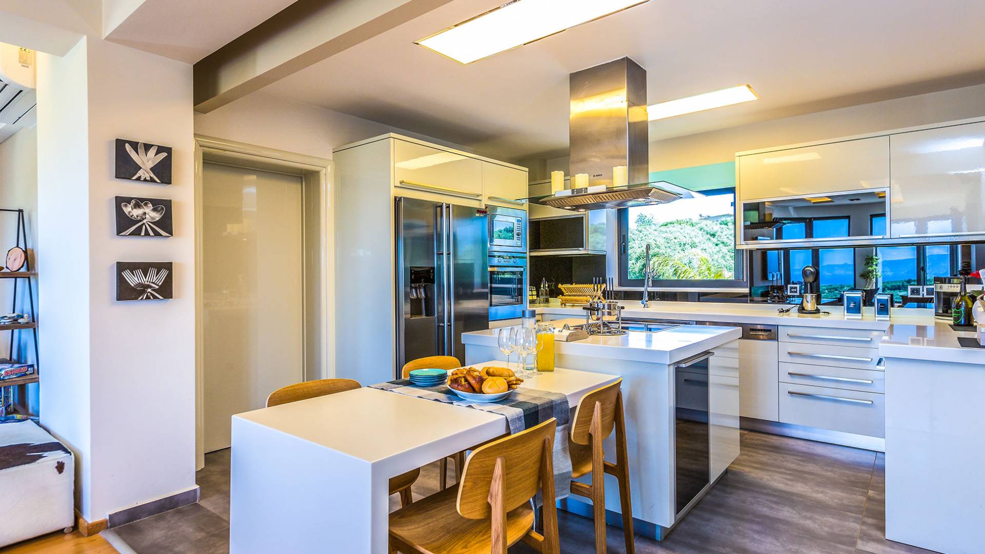 Κύριο επίπεδο: ανοιχτό σαλόνι με θέα στην πισίνα και τη θάλασσα, πλήρως εξοπλισμένη κουζίνα, τραπεζαρία, δύο διπλά υπνοδωμάτια, ένα κοινόχρηστο μπάνιο και ιδιωτικό γυμναστήριο.