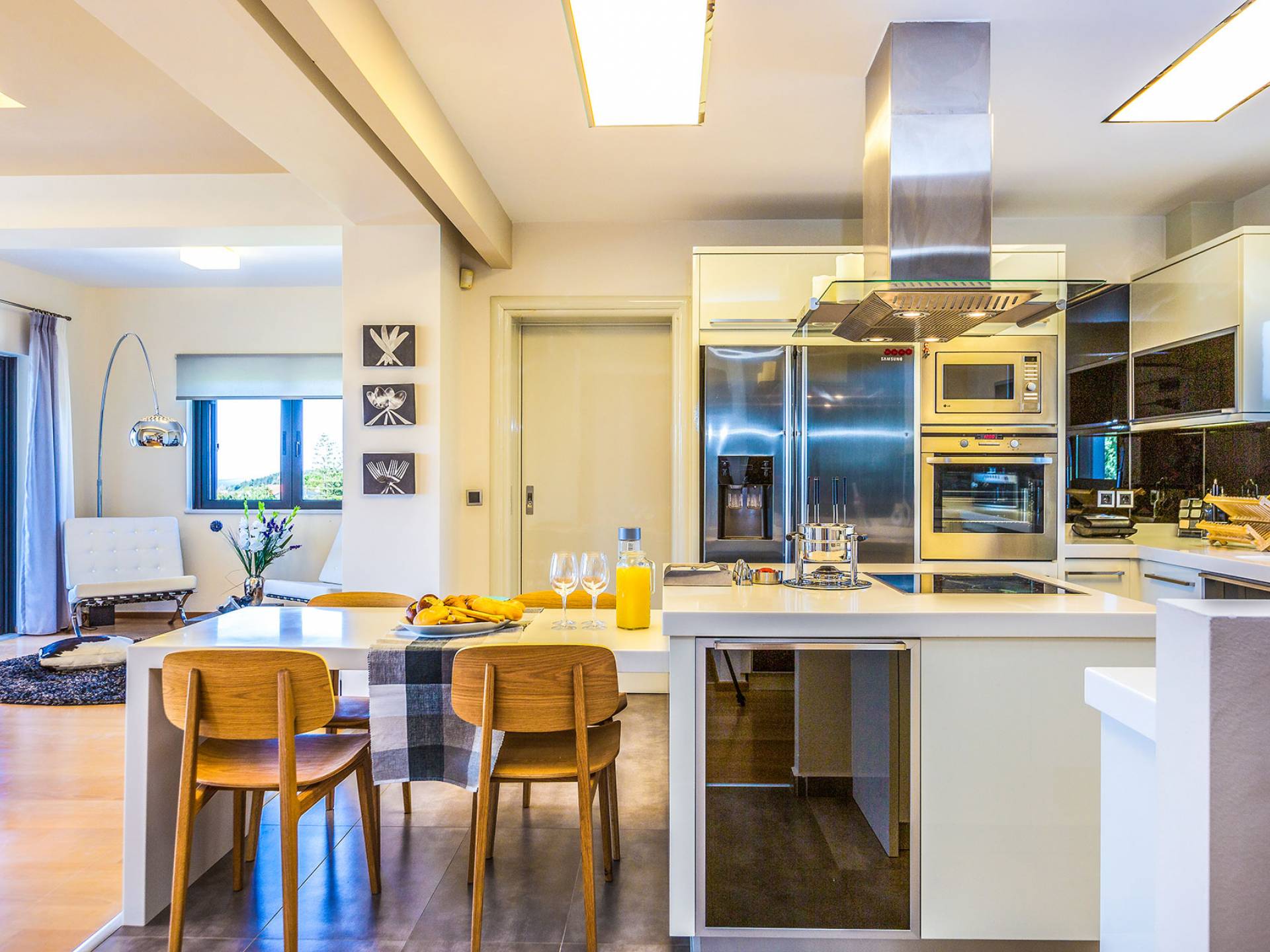 Έξι ευρύχωρα υπνοδωμάτια για έως 14 επισκέπτες, πέντε μπάνια για μέγιστη άνεση, δύο πλήρως εξοπλισμένες κουζίνες ιδανικές για μαγείρεμα σε ομάδα ή για catering, τρία κομψά σαλόνια για χαλάρωση, βραδιές ταινιών ή κοινωνικές συγκεντρώσεις, επίσημη τραπεζαρία με πανοραμική θέα, ιδιωτικό γυμναστήριο και playroom για ευεξία και ψυχαγωγία.