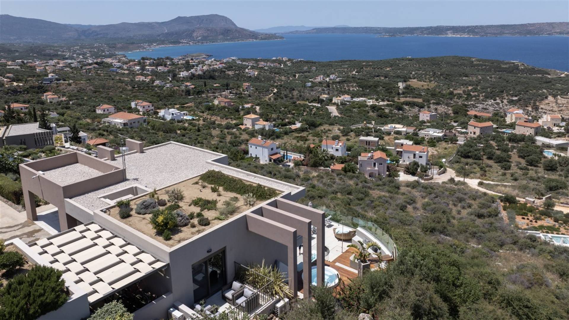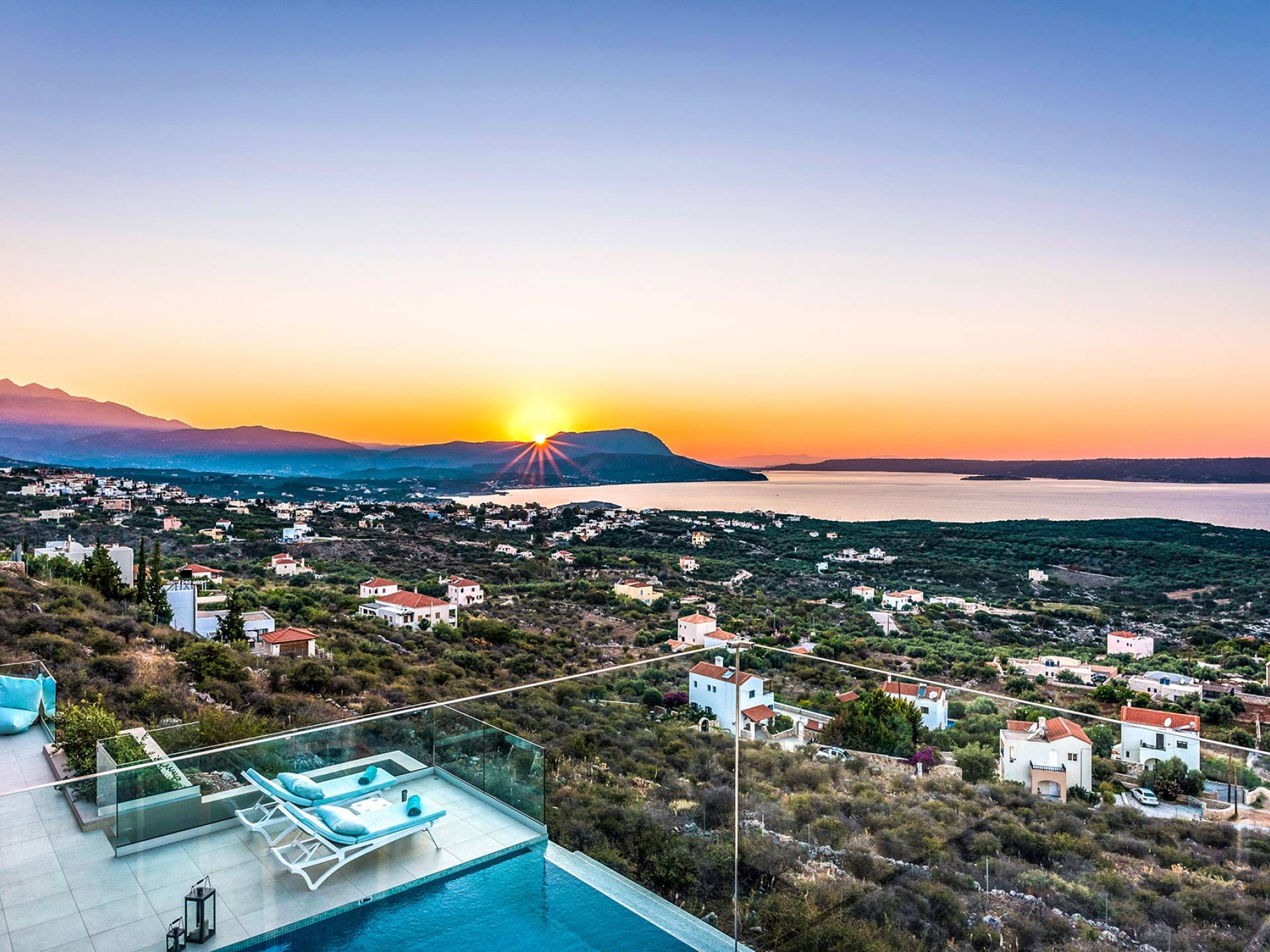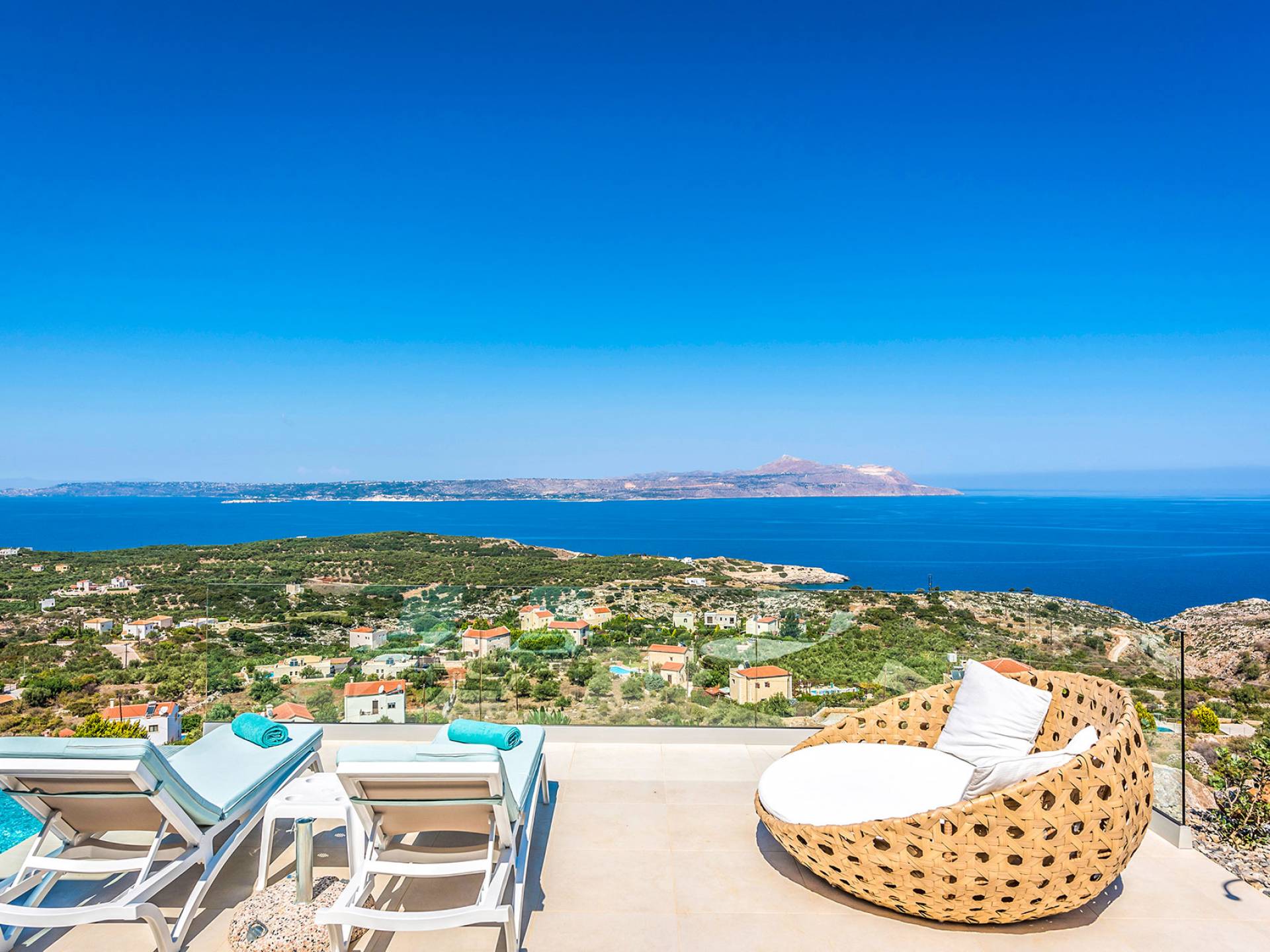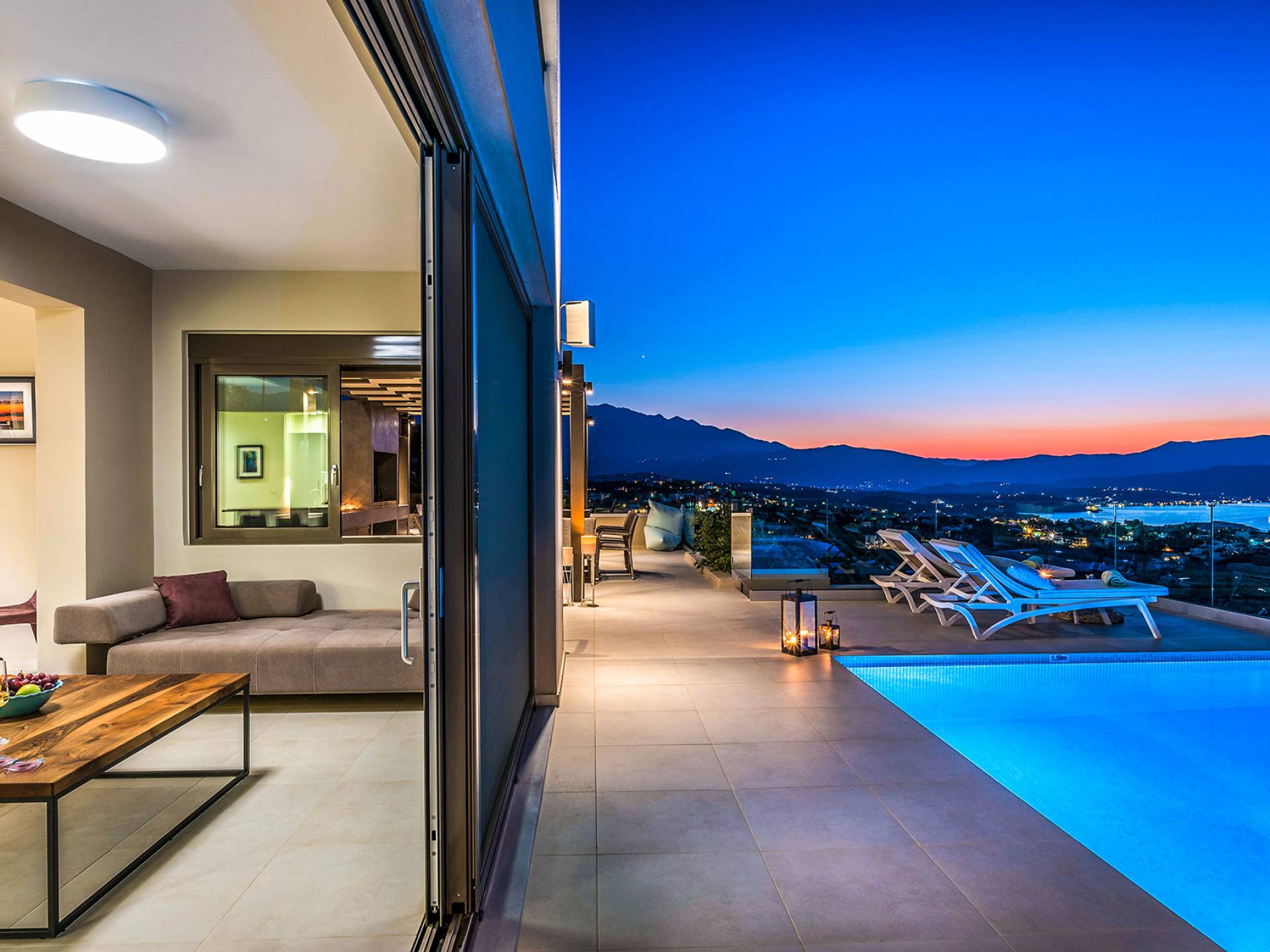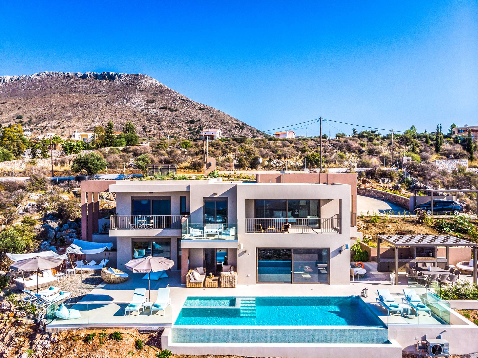 - Heated infinity pool (40 m²) with integrated children’s wading pool and panoramic views of Souda Bay & White Mountains