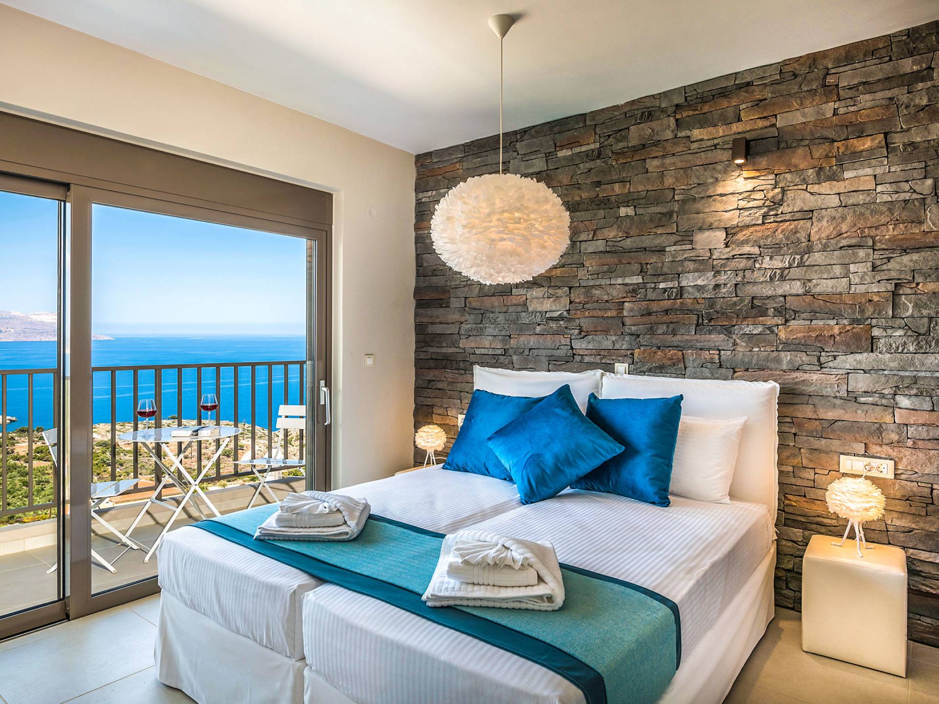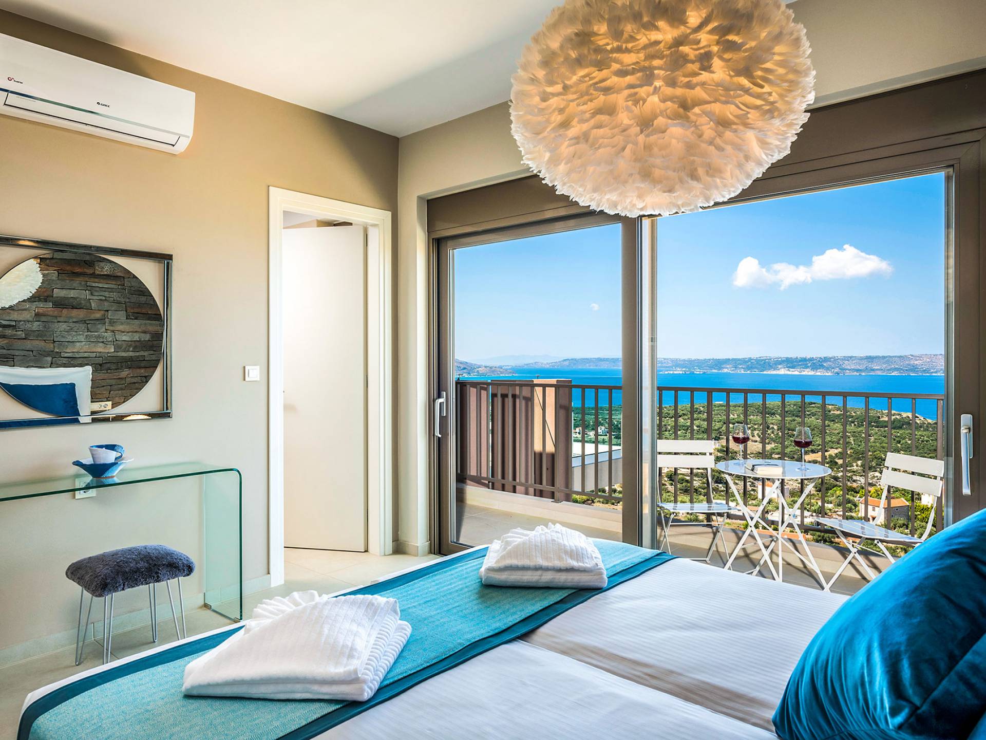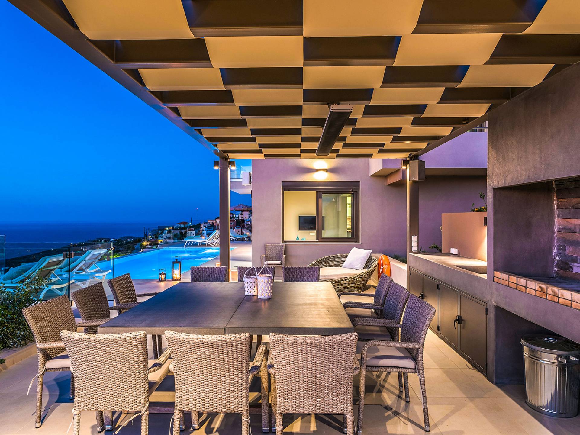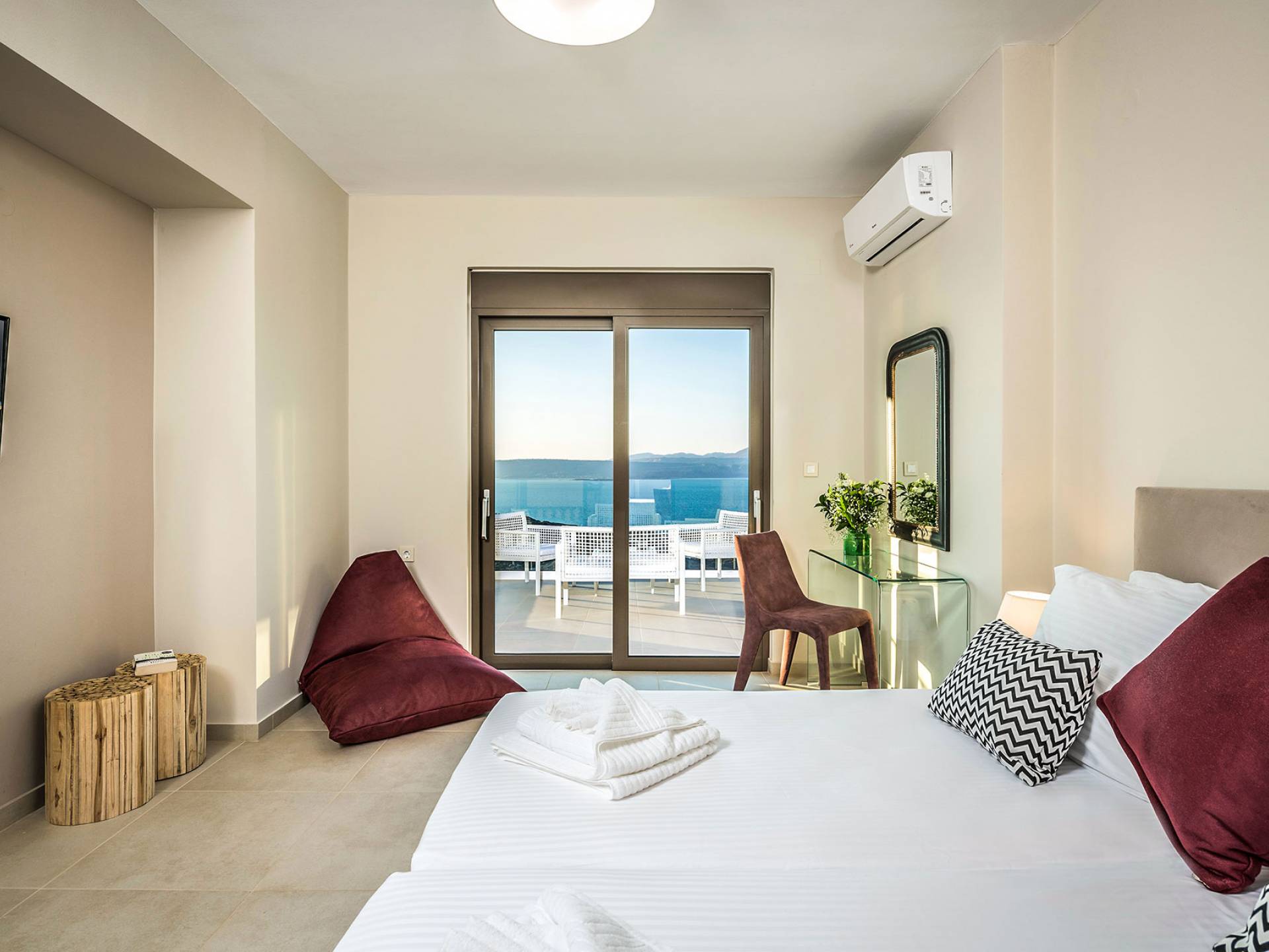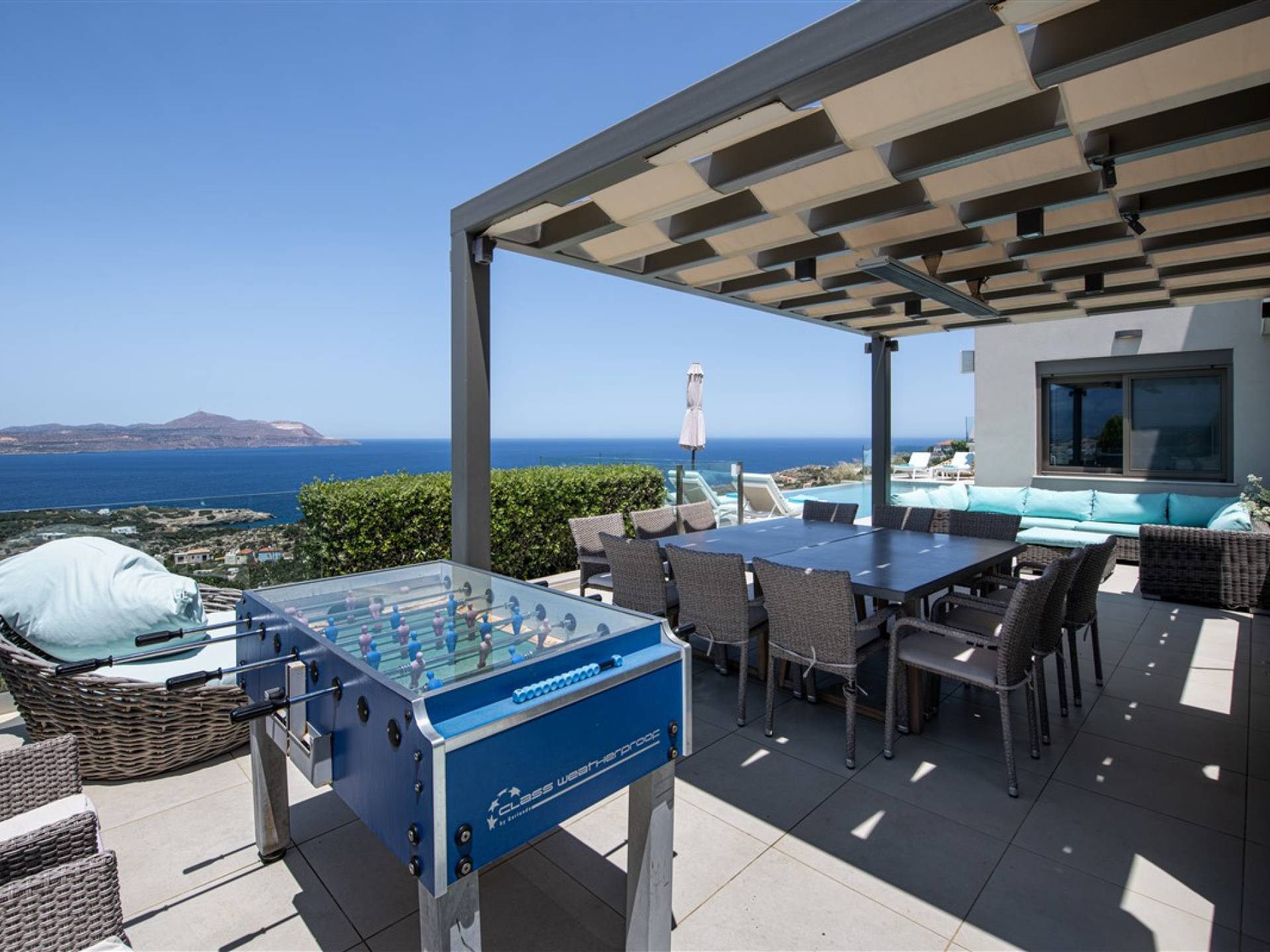 - Heated infinity pool (40 m²) with integrated children’s wading pool and panoramic views of Souda Bay & White Mountains