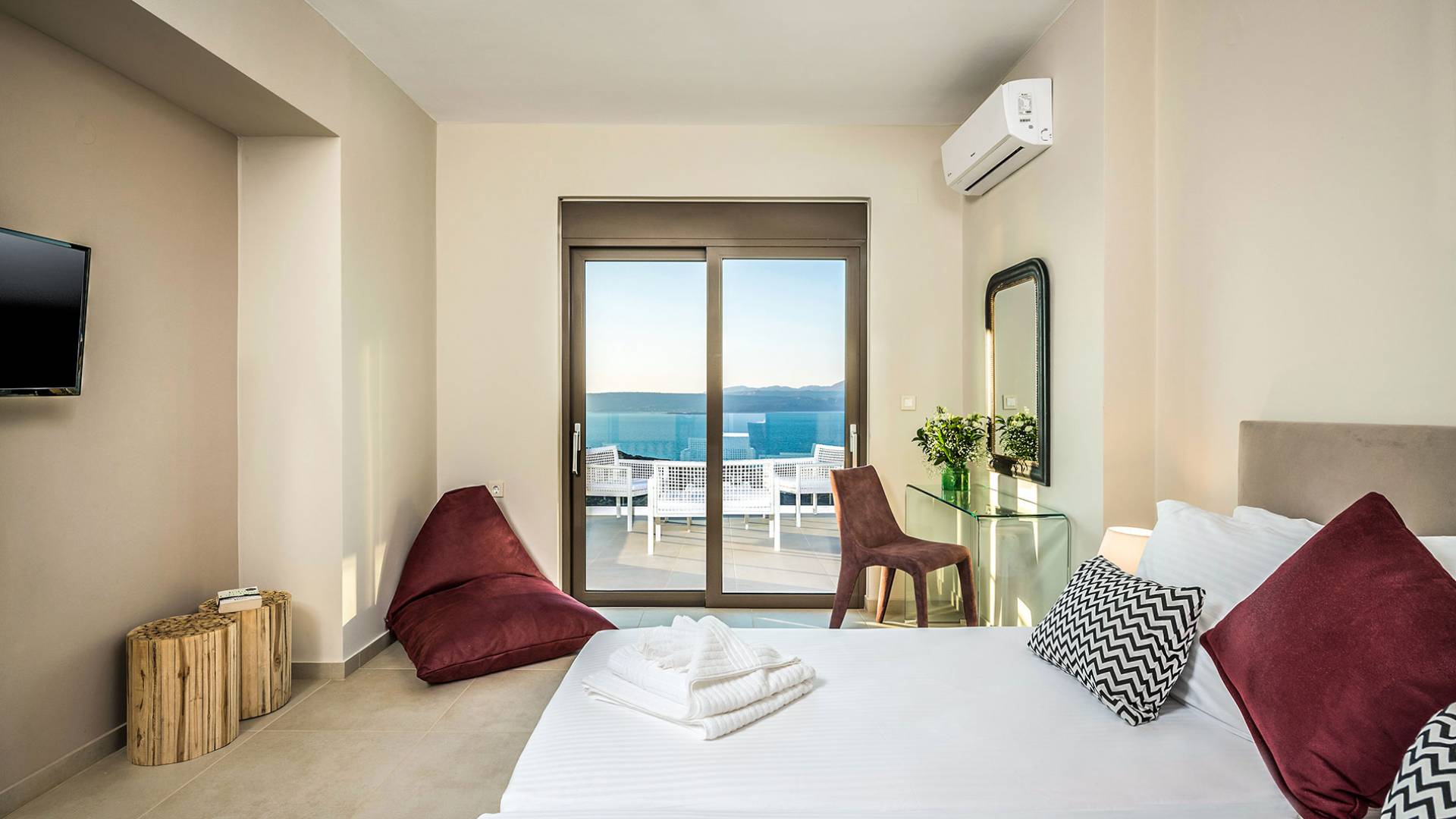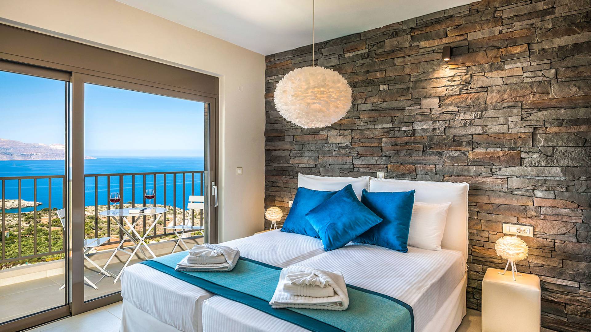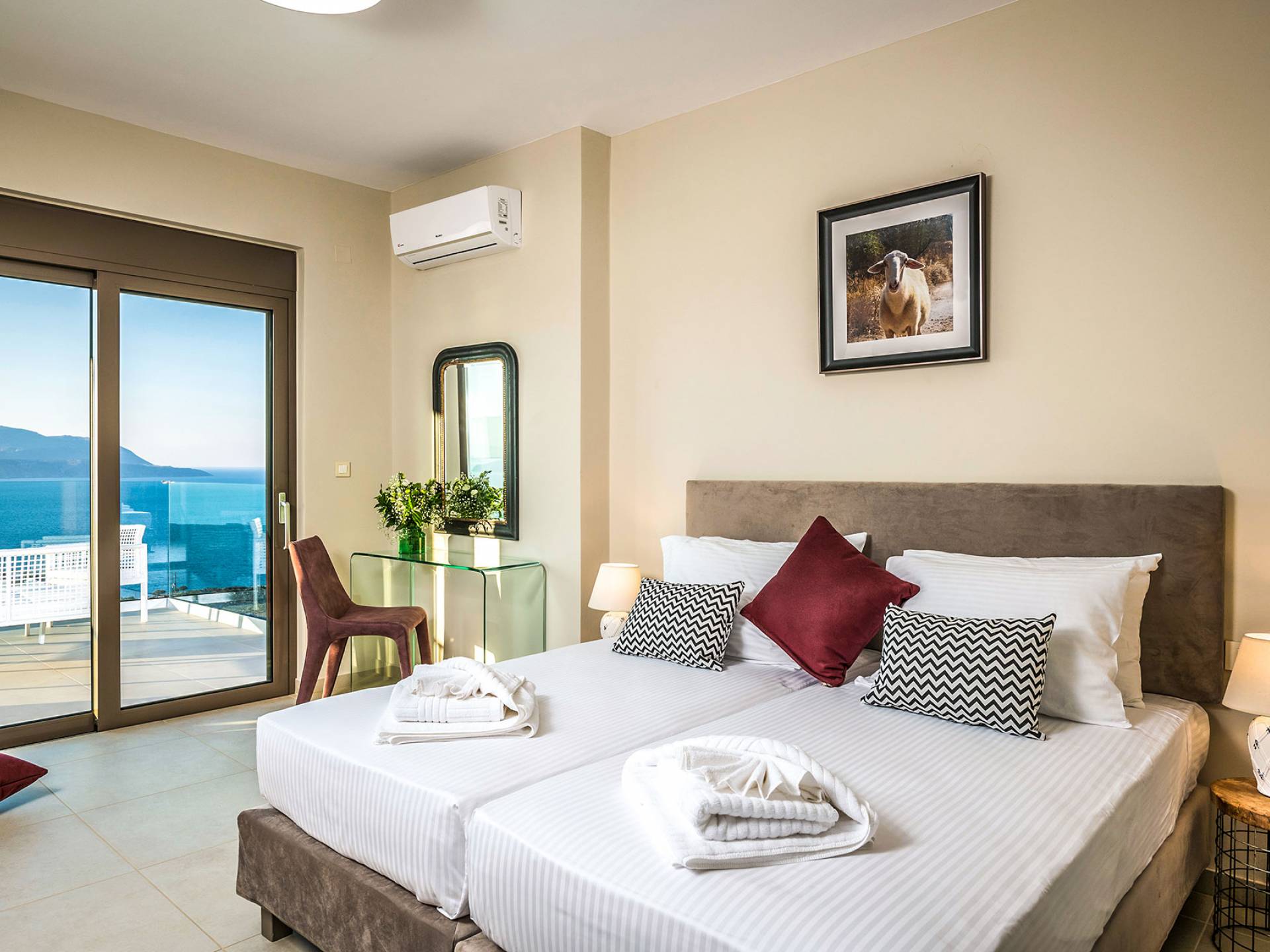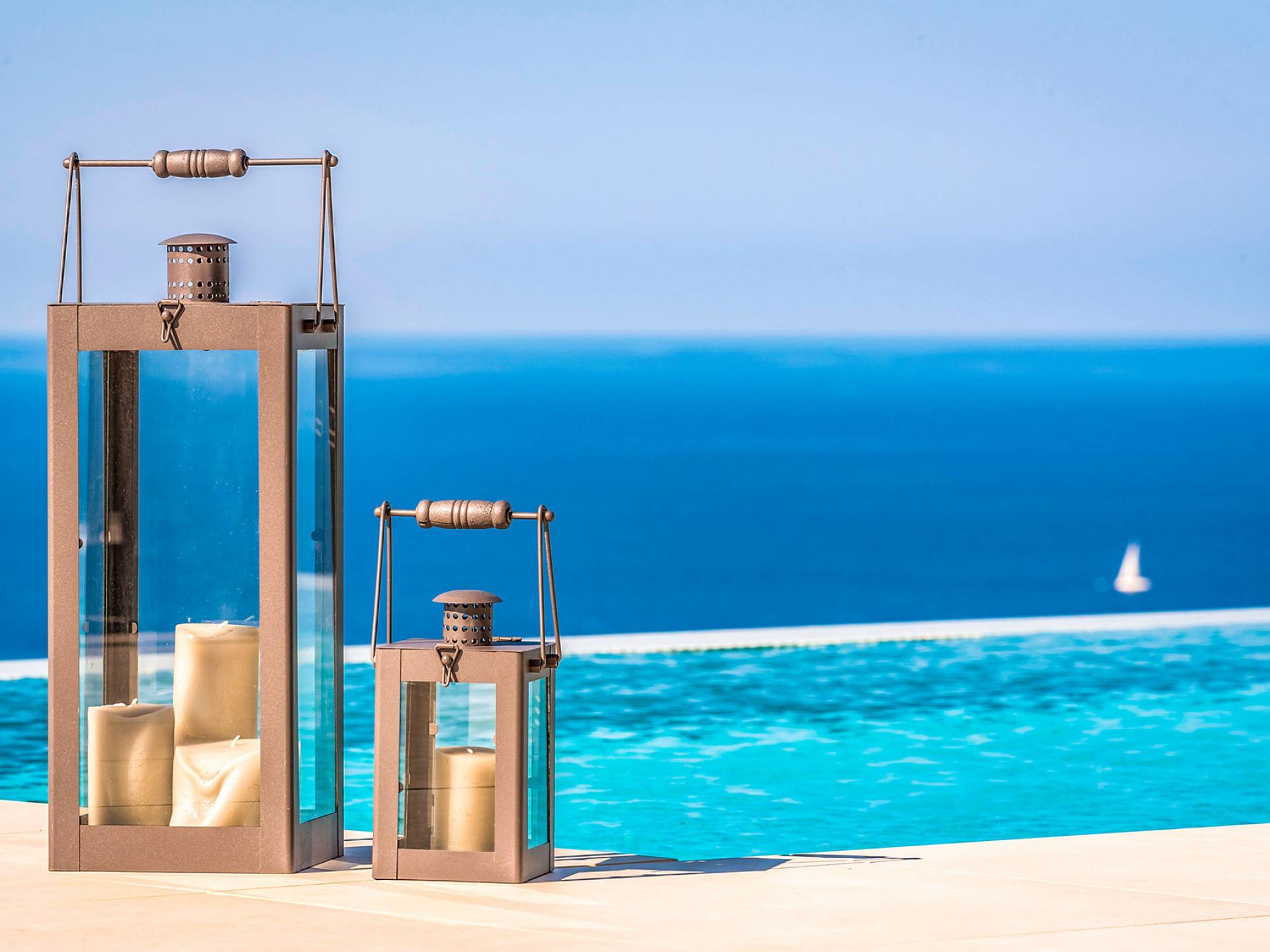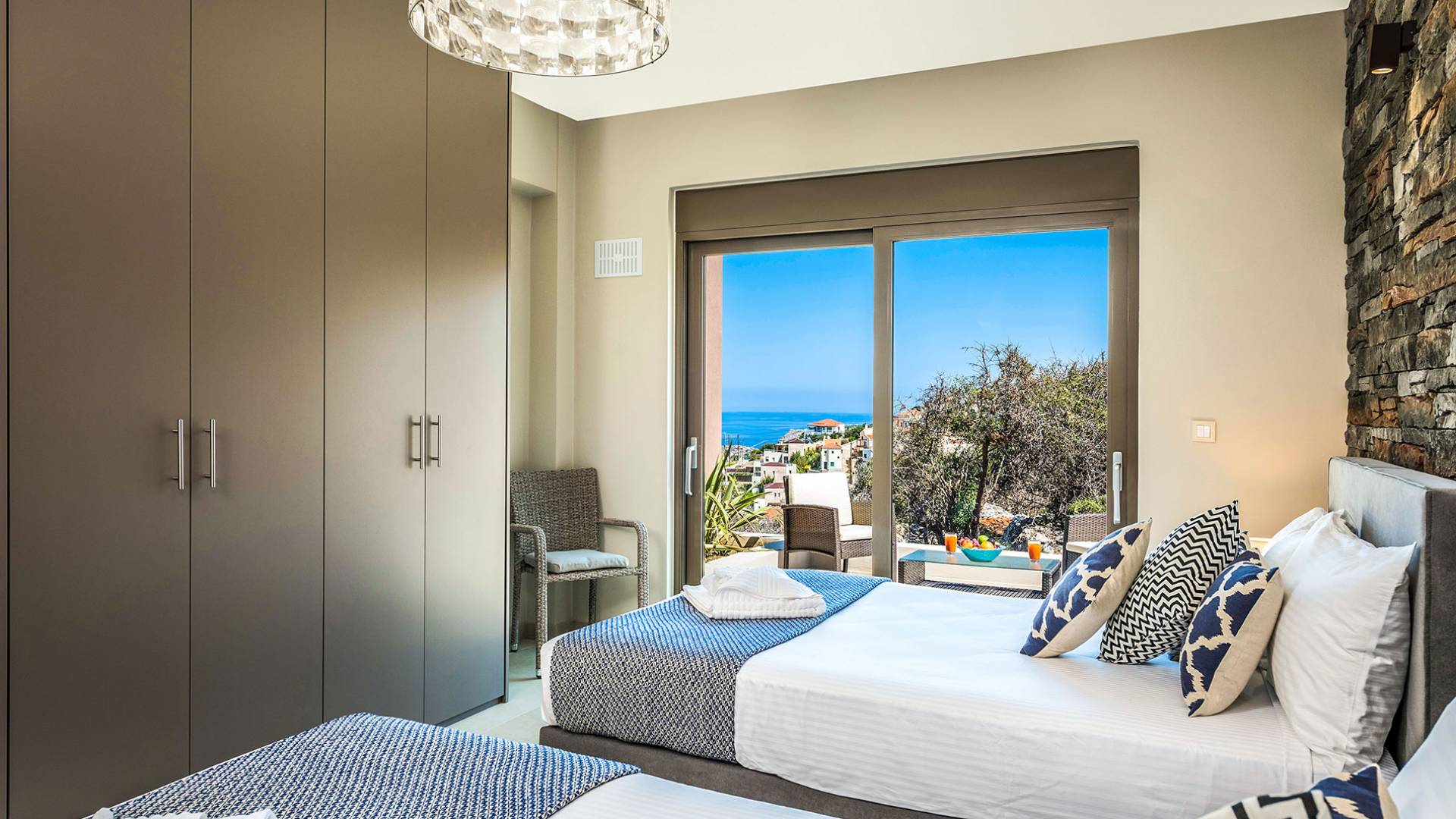 - Heated infinity pool (40 m²) with integrated children’s wading pool and panoramic views of Souda Bay & White Mountains