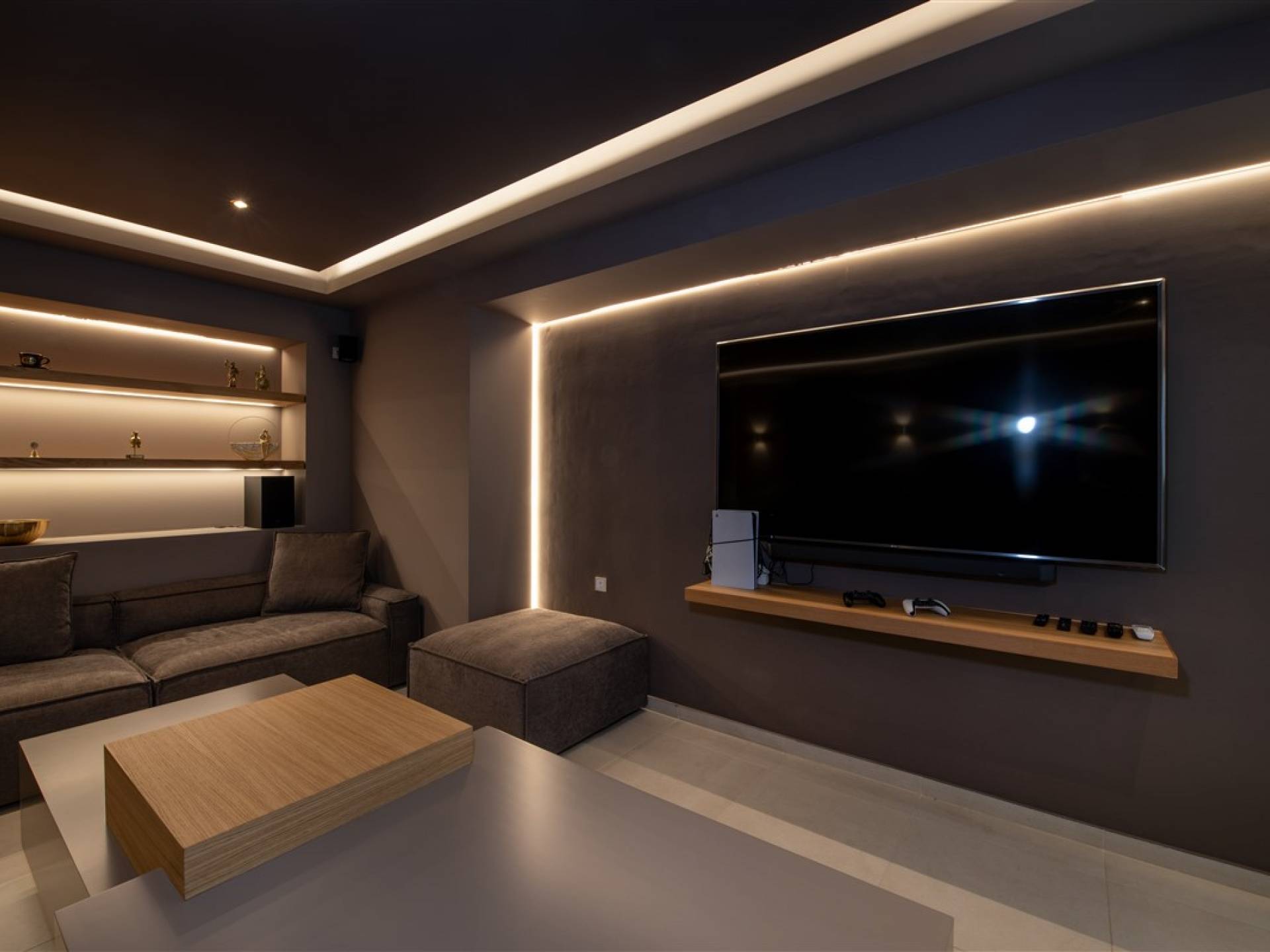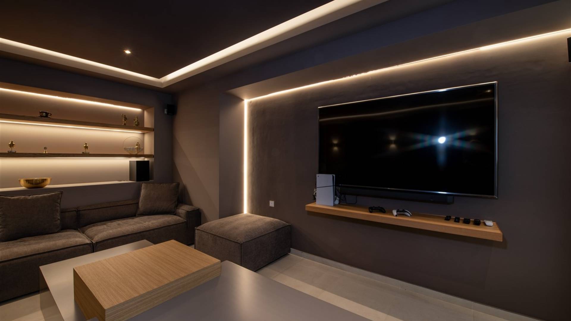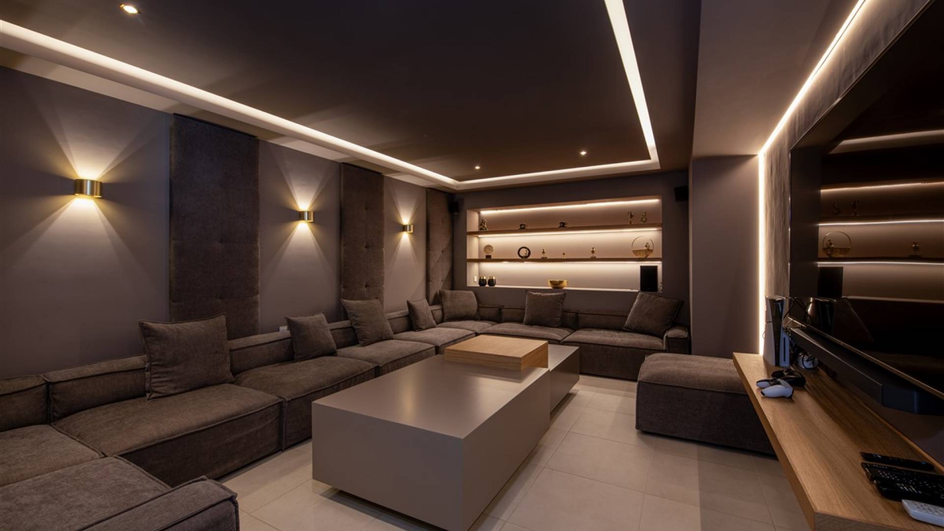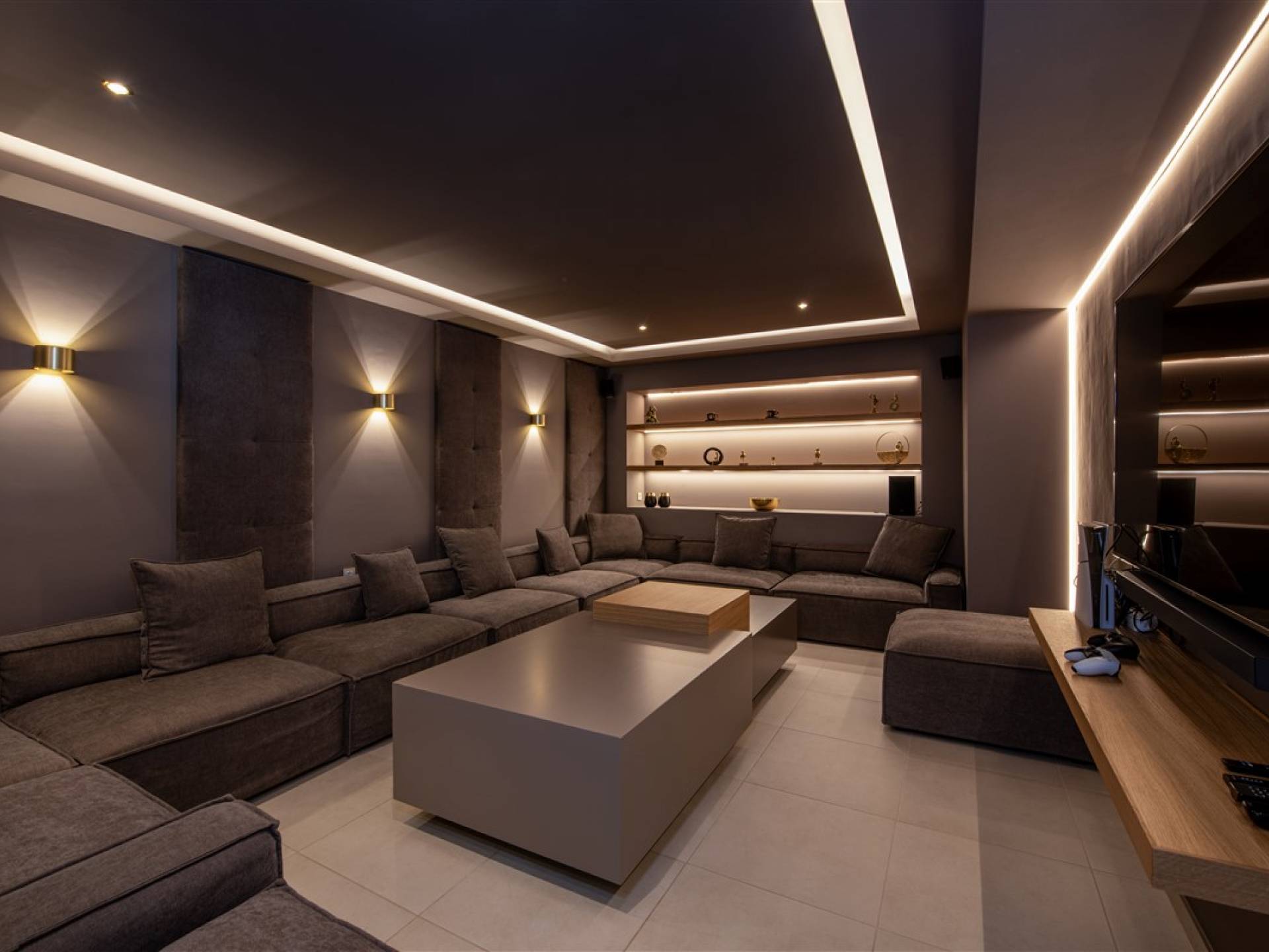 - Cinema room with 75” screen, Netflix, PlayStation 5, streaming services, and conference setup option