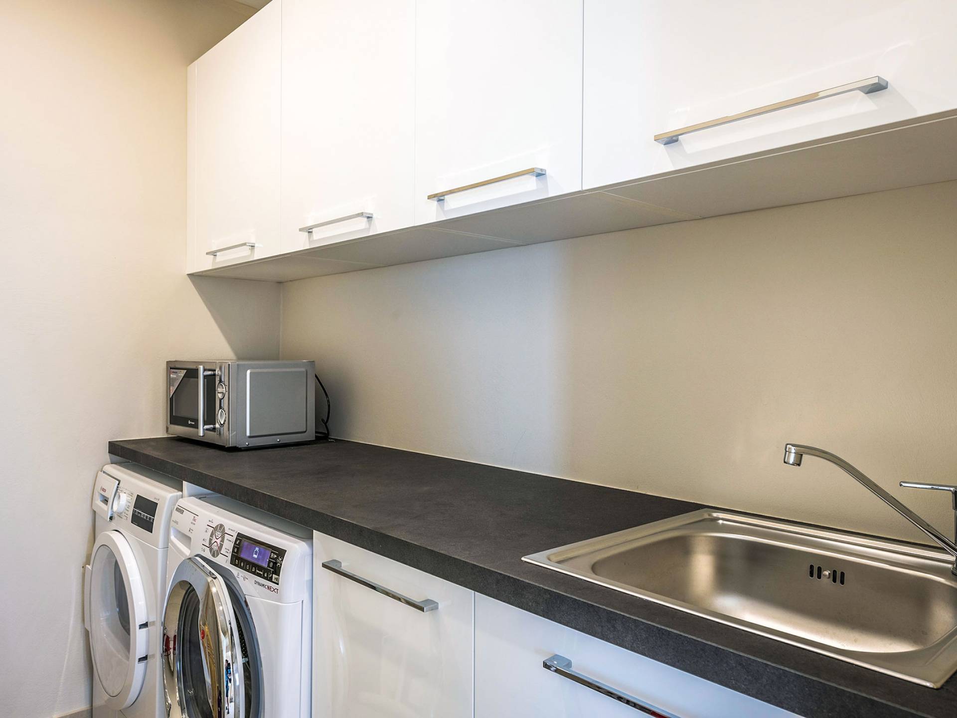 - Washing machine, dryer, iron & board, hairdryer, toiletries, dressing gowns