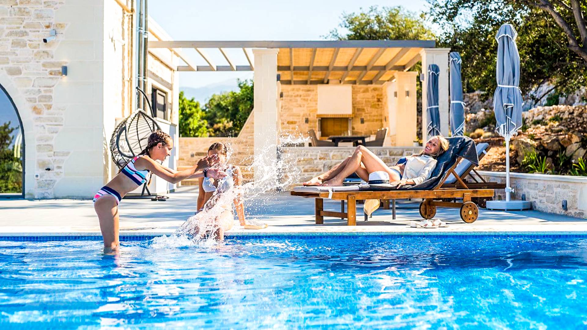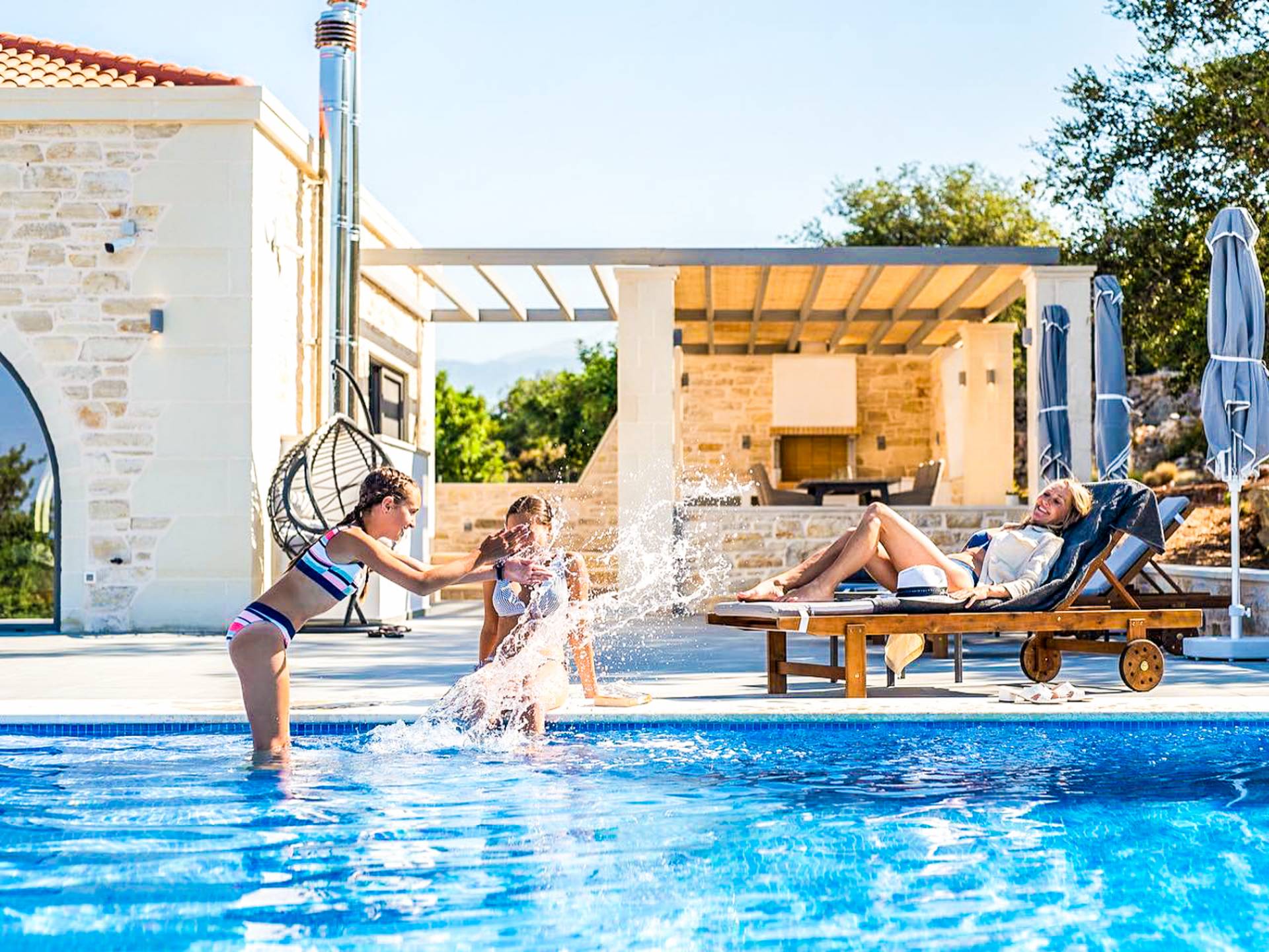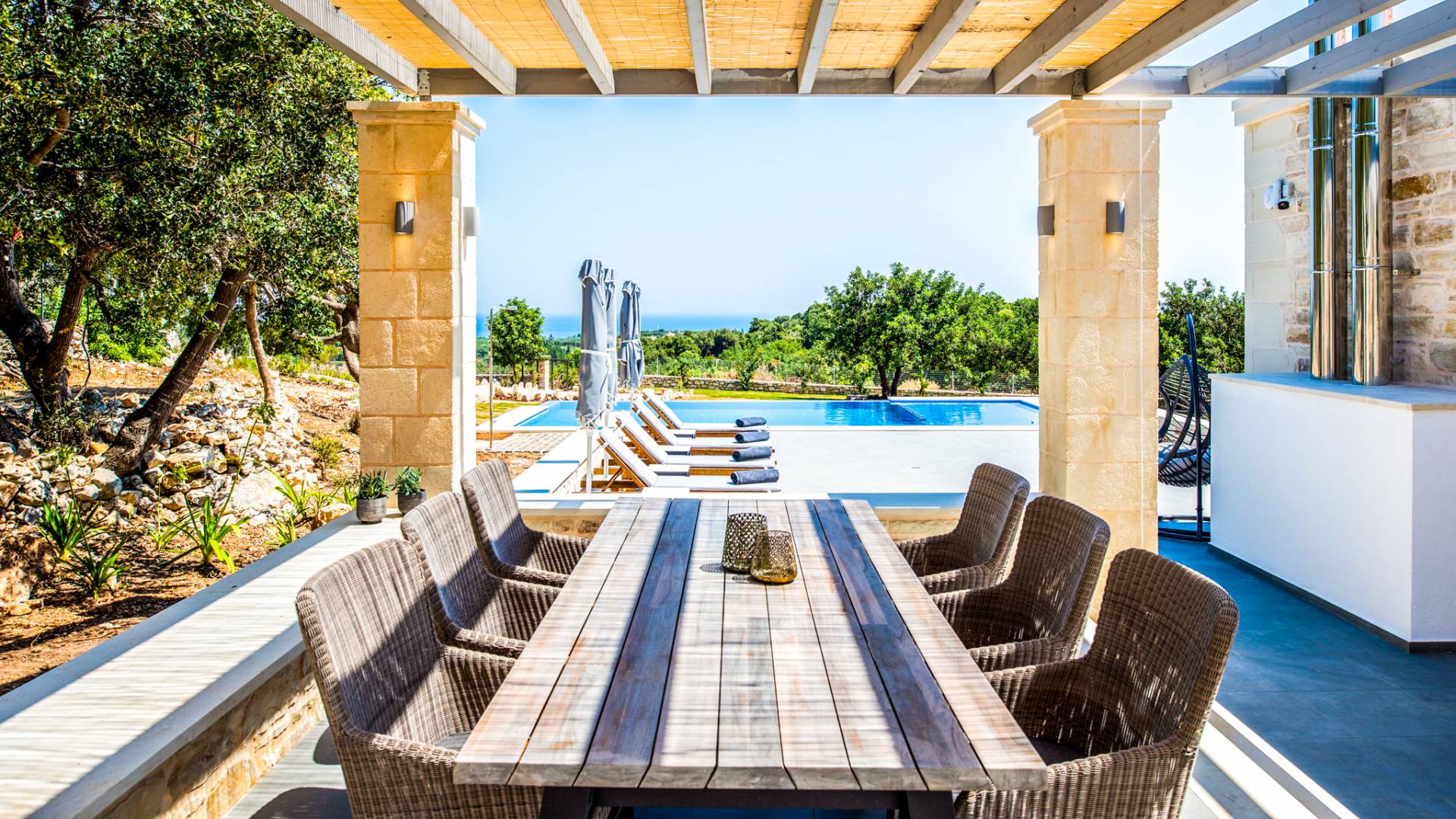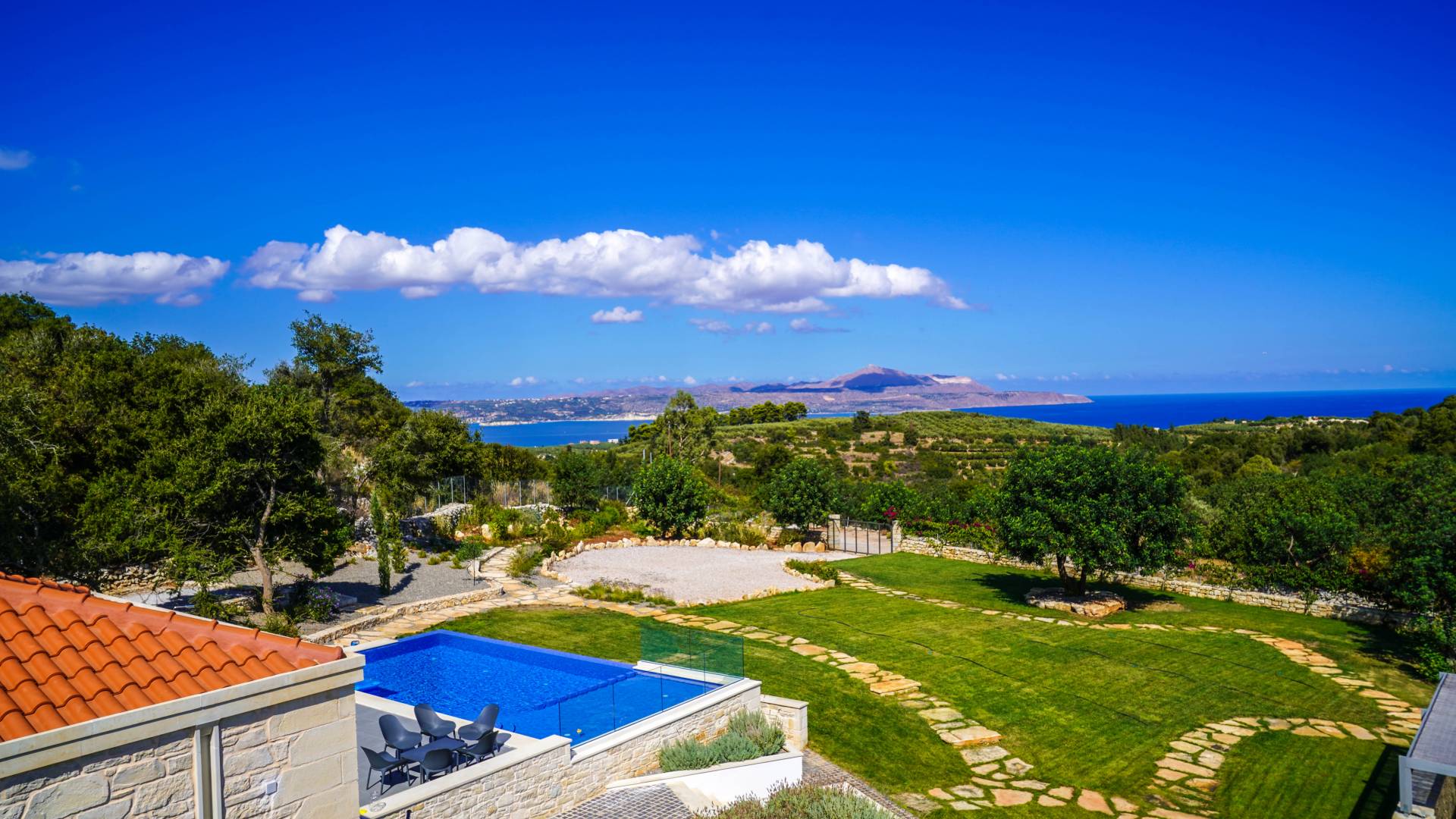 This luxury villa offering 3 beautifully appointed bedrooms, a private pool, BBQ area, and spectacular panoramic views of the sea, valley, and surrounding mountains.