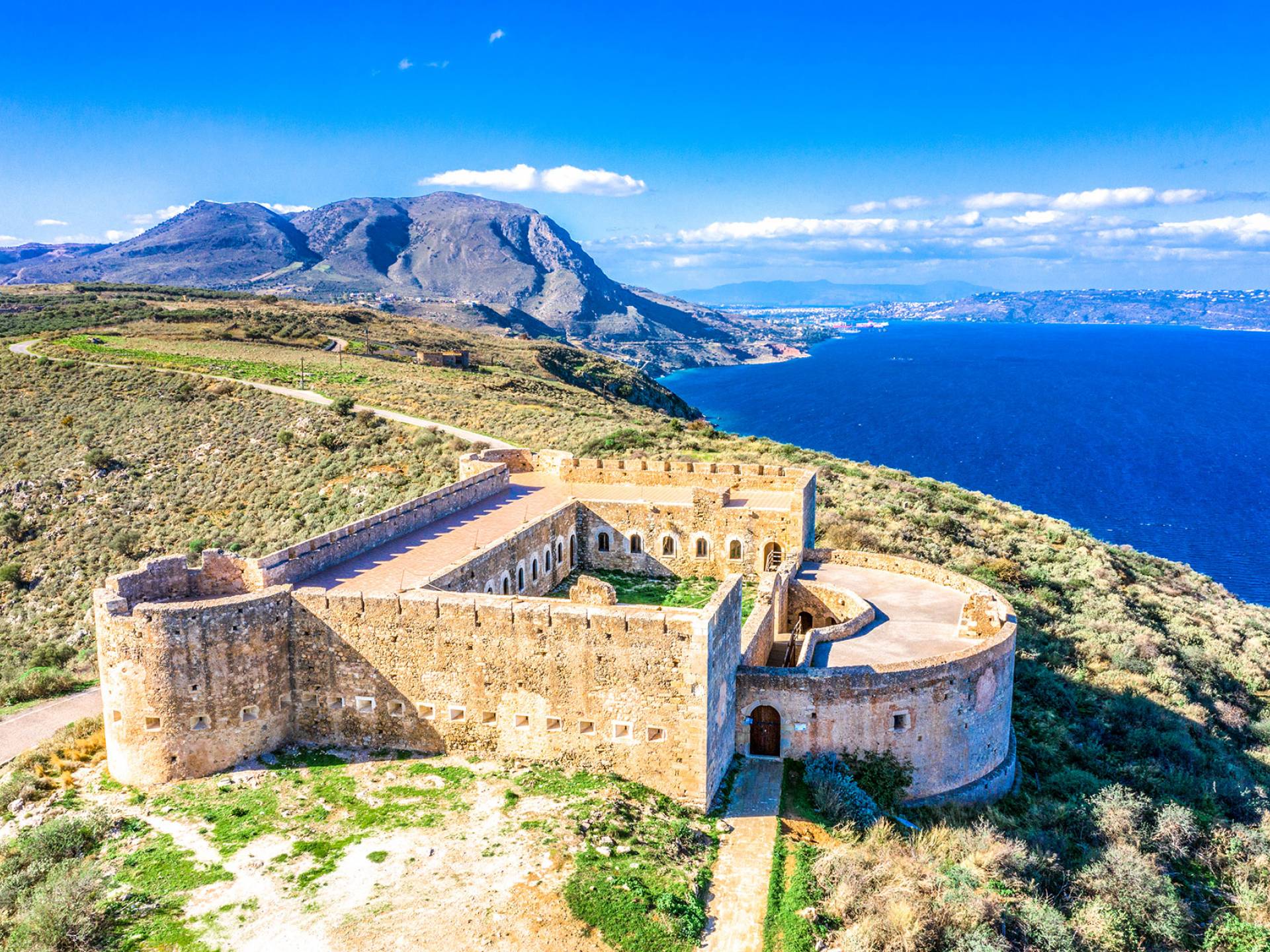 - Heraklion Airport (HER) – 115 km (2 hr drive).