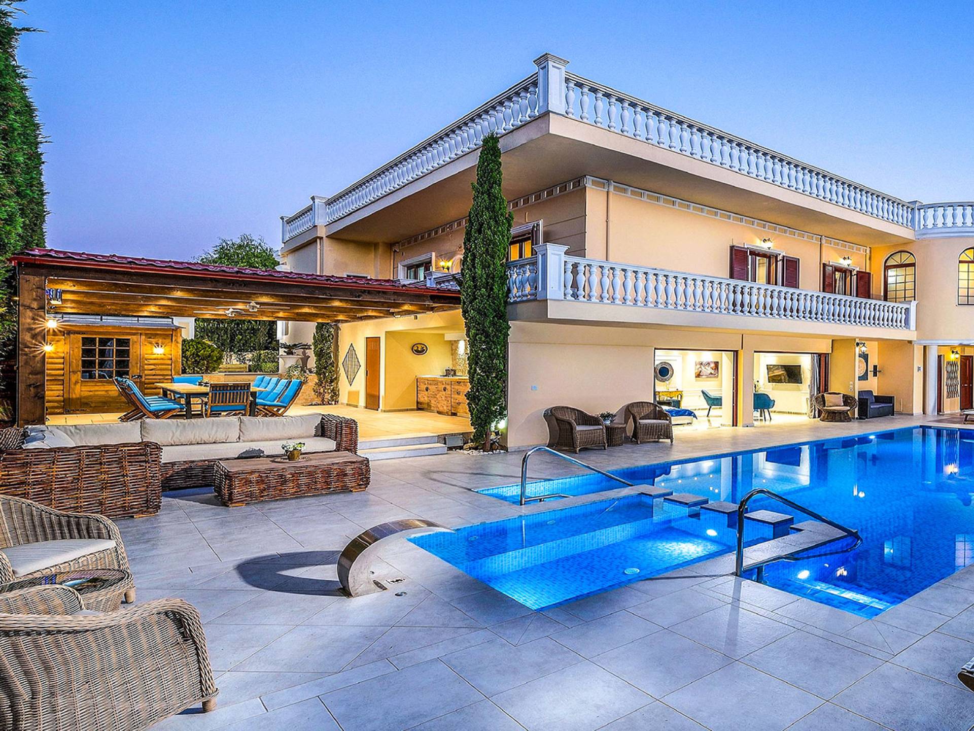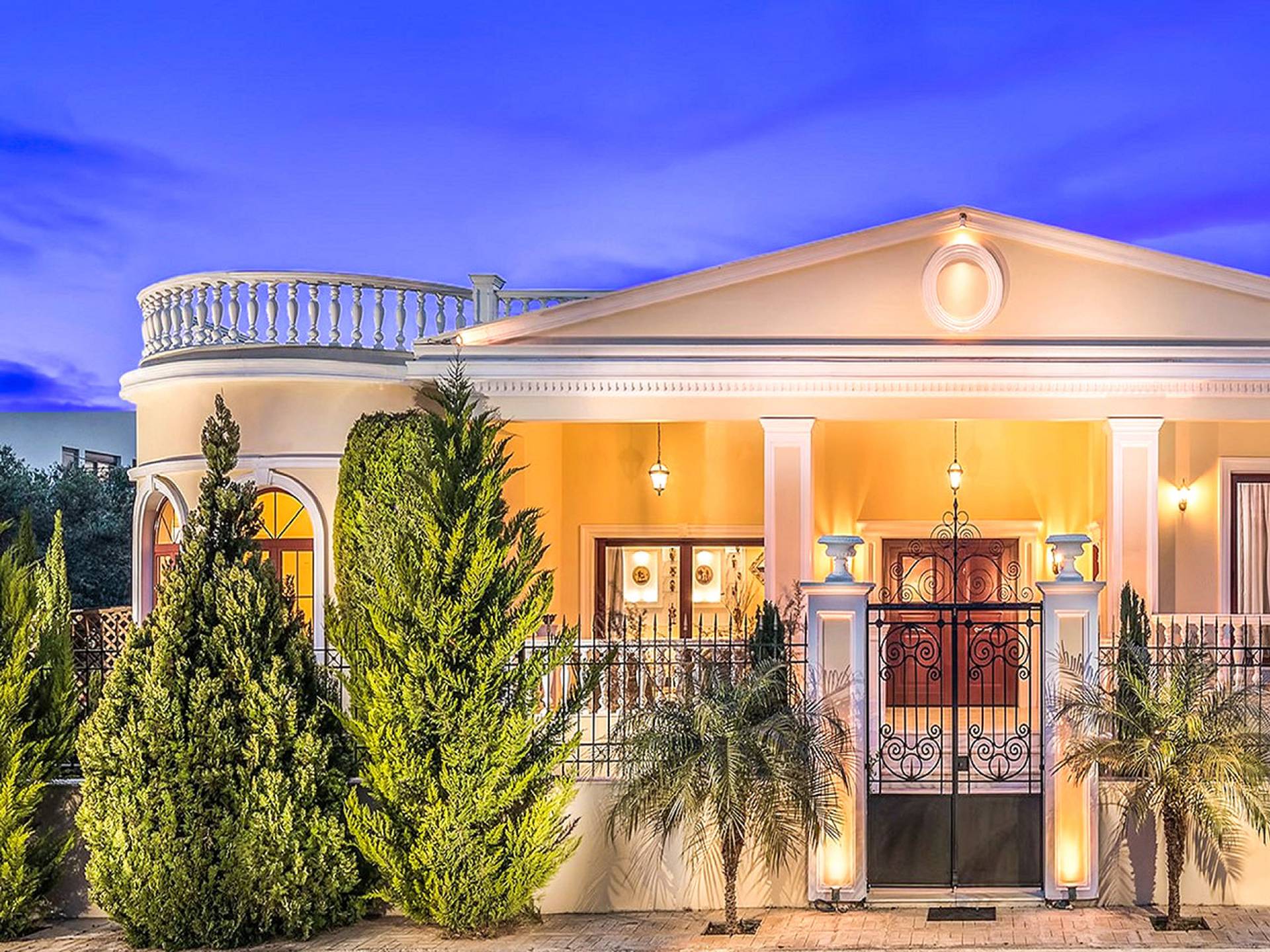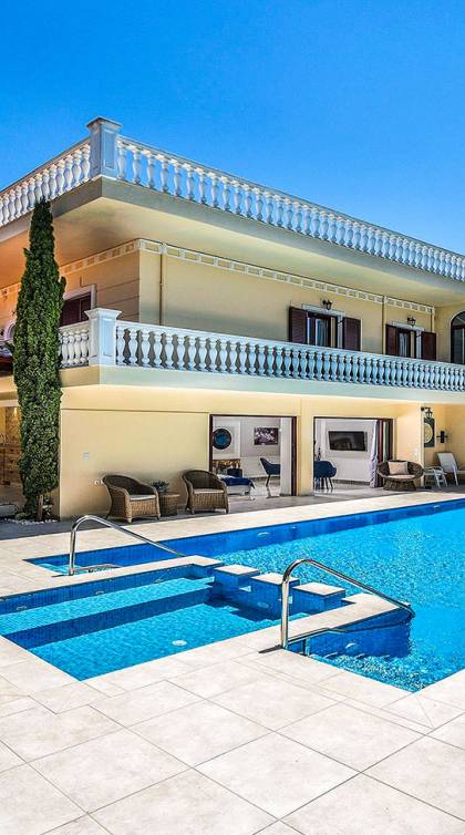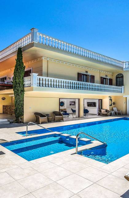 είναι μια πολυτελής βίλα με 6 υπνοδωμάτια και ιδιωτική θερμαινόμενη πισίνα, σε αρχαιοελληνικό κλασικό στιλ. Η βίλα έχει δύο ορόφους, 6 υπνοδωμάτια με ιδιωτικά μπάνια, ιδιωτική θερμαινόμενη πισίνα και μεγάλο κήπο. Αυτή η αρχαία ελληνική βίλα απέχει μόλις 5-10 λεπτά με τα πόδια από την αμμώδη παραλία και μόλις 15 λεπτά οδικώς από την πόλη των Χανίων. Μπορείτε να απολαύσετε τον καφέ και το πρωινό σας θαυμάζοντας το όμορφο τοπίο με το δάνειο, τα πολύχρωμα λουλούδια και τα περισσότερα από 100 δέντρα στον κήπο της βίλας ή να χαλαρώσετε πίνοντας το ποτό ή τα κοκτέιλ σας στο μπαρ της πισίνας το ηλιοβασίλεμα με όμορφο ατμοσφαιρικό φωτισμό να σας εμπνεύσει. Το Villa Crown Chania είναι ιδανικό για οικογένειες που θέλουν να απολαύσουν πλήρη ιδιωτικότητα κατά τις διακοπές τους σε ένα ήρεμο πολυτελές μέρος στην ιδιωτική πισίνα, τους κήπους και τις εγκαταστάσεις της βίλας ή θέλουν να μάθουν για τη νυχτερινή ζωή των Χανίων, τις αμμώδεις παραλίες, τα κρυστάλλινα νερά των Χανίων.