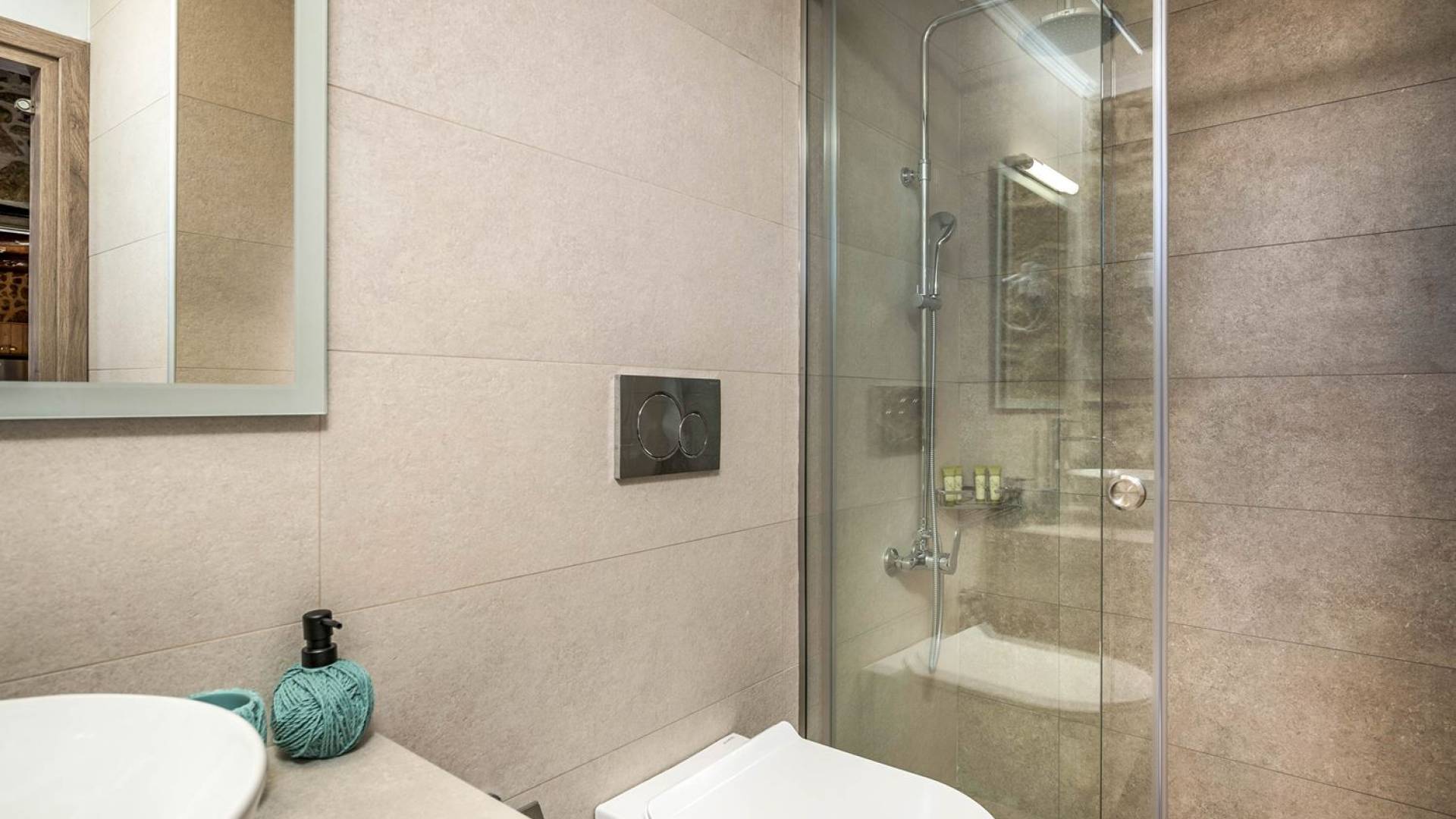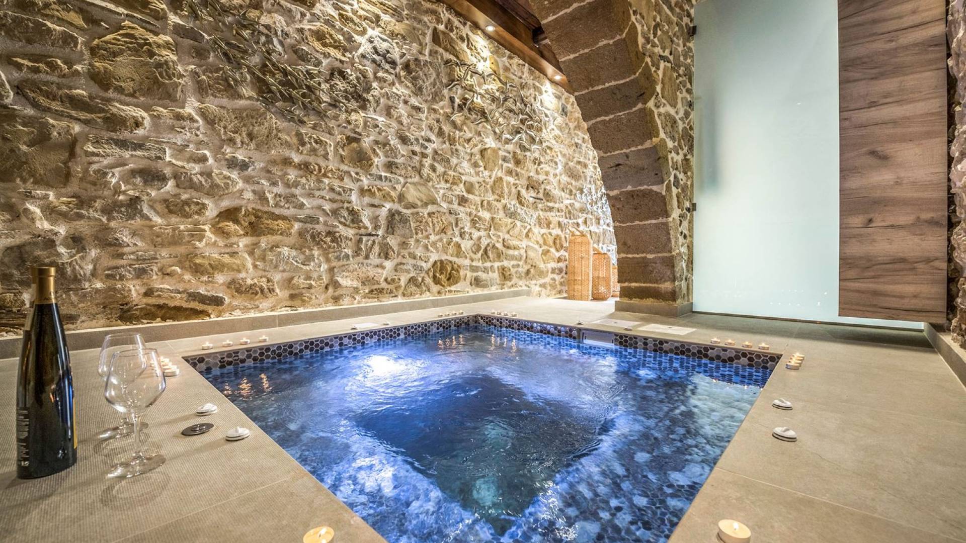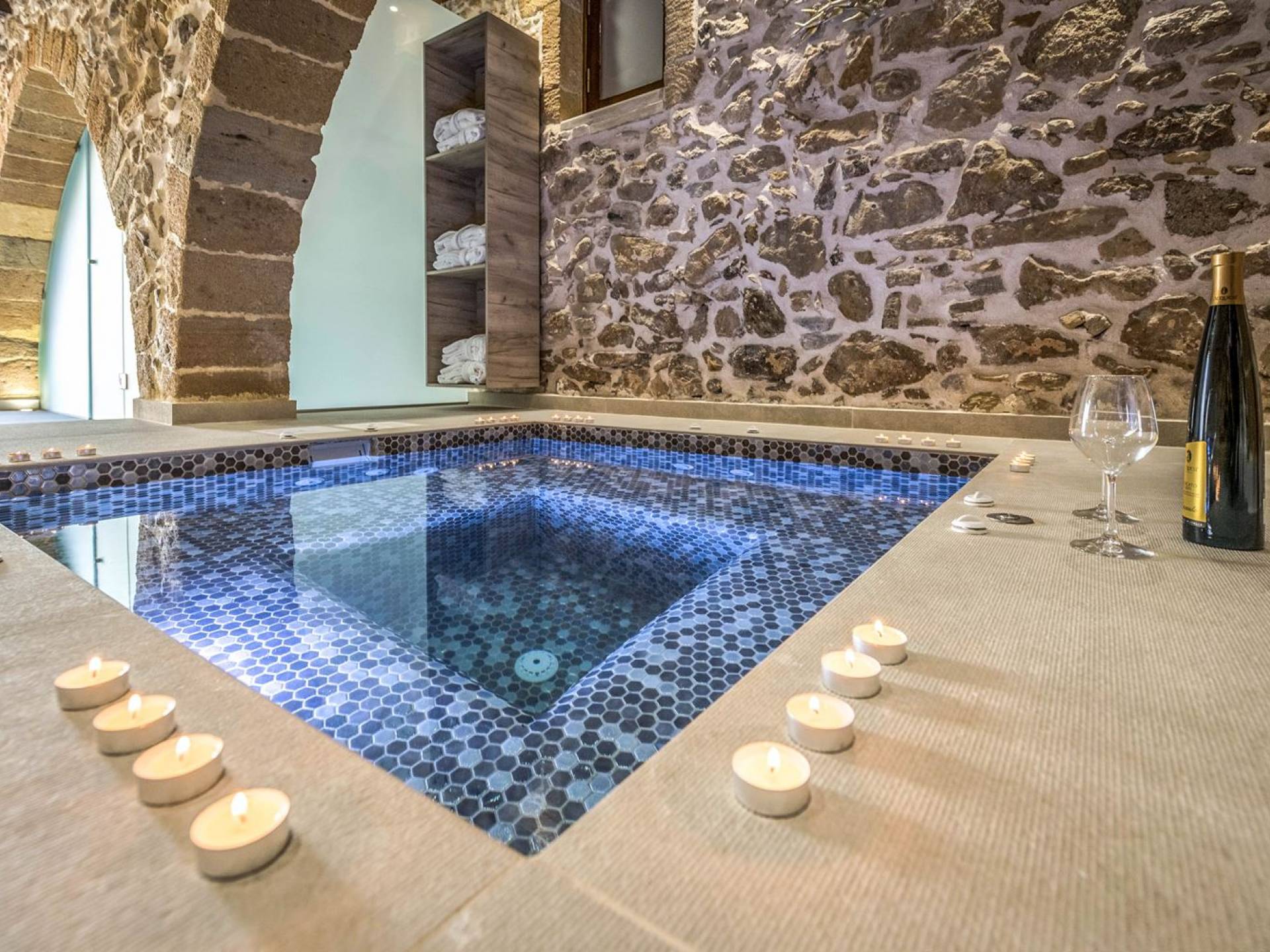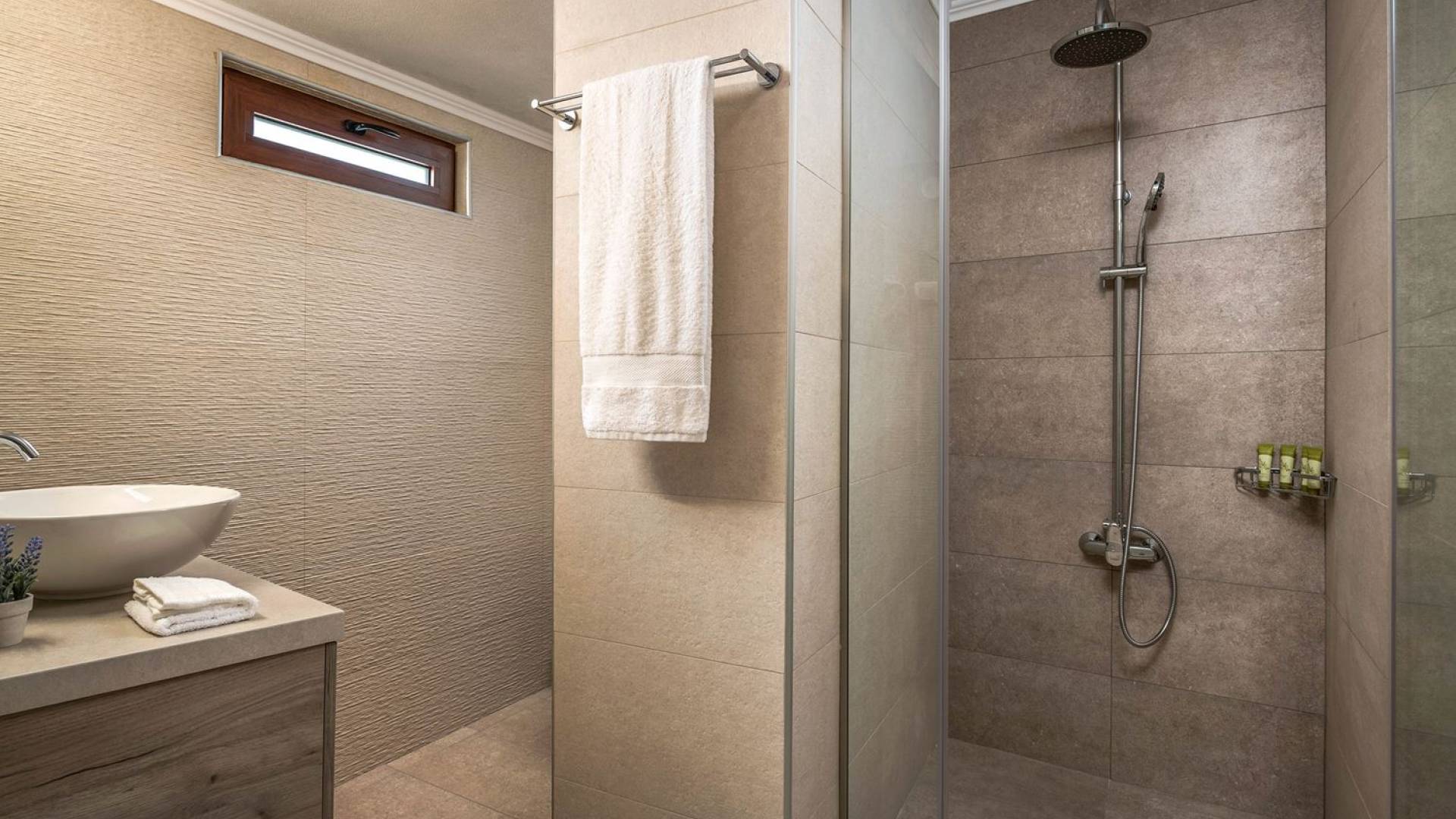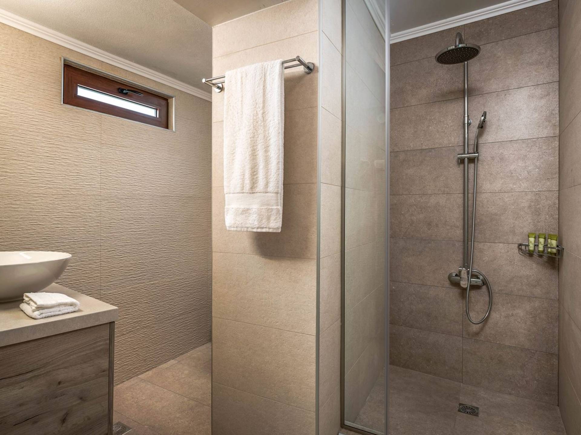 Φεύγοντας από τον μαγευτικό υπαίθριο χώρο στολισμένο με μια πέτρινη καμάρα και μια ζωηρή μπουκαμβίλιες, θα βρεθείτε σε ένα όμορφο αρχιτεκτονικό πάντρεμα από γήινες αποχρώσεις πέτρινων τοίχων και καμάρων σε συνδυασμό με ξύλο και λιτές διακοσμητικές γραμμές που εξασφαλίζουν άνεση και κομψότητα. Η κουζίνα είναι πλήρως εξοπλισμένη με ηλεκτρικές συσκευές τελευταίας τεχνολογίας, όλα τα υπνοδωμάτια έχουν ιδιωτικό μπάνιο για μέγιστη άνεση και ιδιωτικότητα και οι χώροι είναι κλιματιζόμενοι. Οι διακοσμητικές πινελιές δημιουργούν μια γαλήνια, ατμόσφαιρα που θα σας χαρίσει μια παραδεισένια εμπειρία. Ο μοντέρνος σχεδιασμός με λεπτομέρειες παραδοσιακής αρχιτεκτονικής στην τοιχοποιία του δίνει μια μοναδική αίσθηση θαλπωρής και φιλοξενίας.