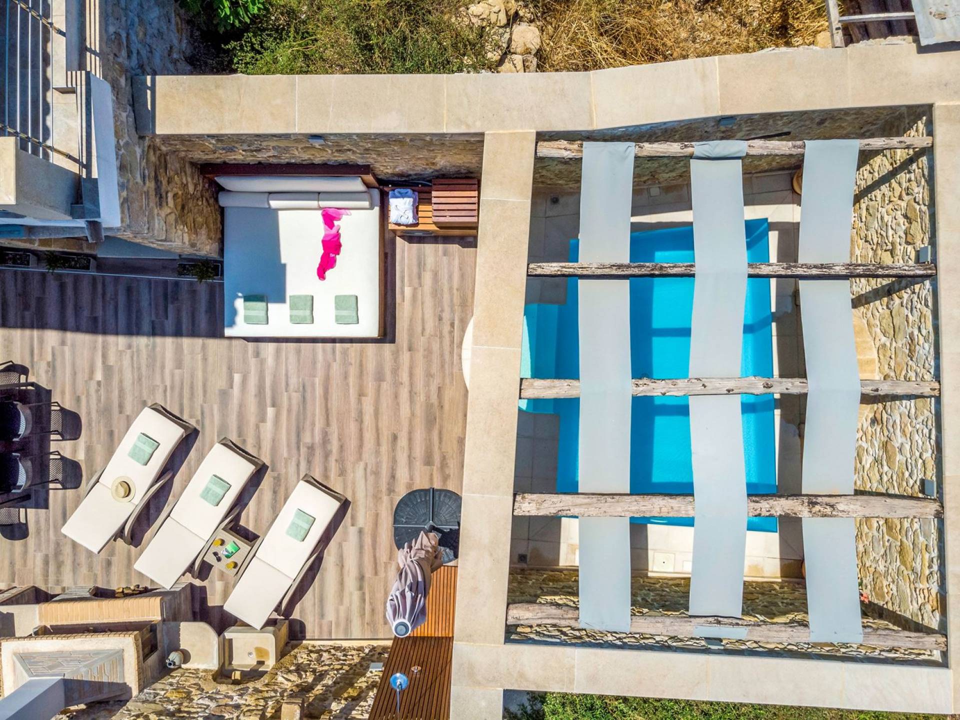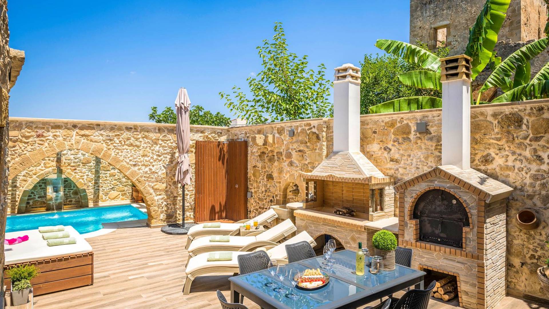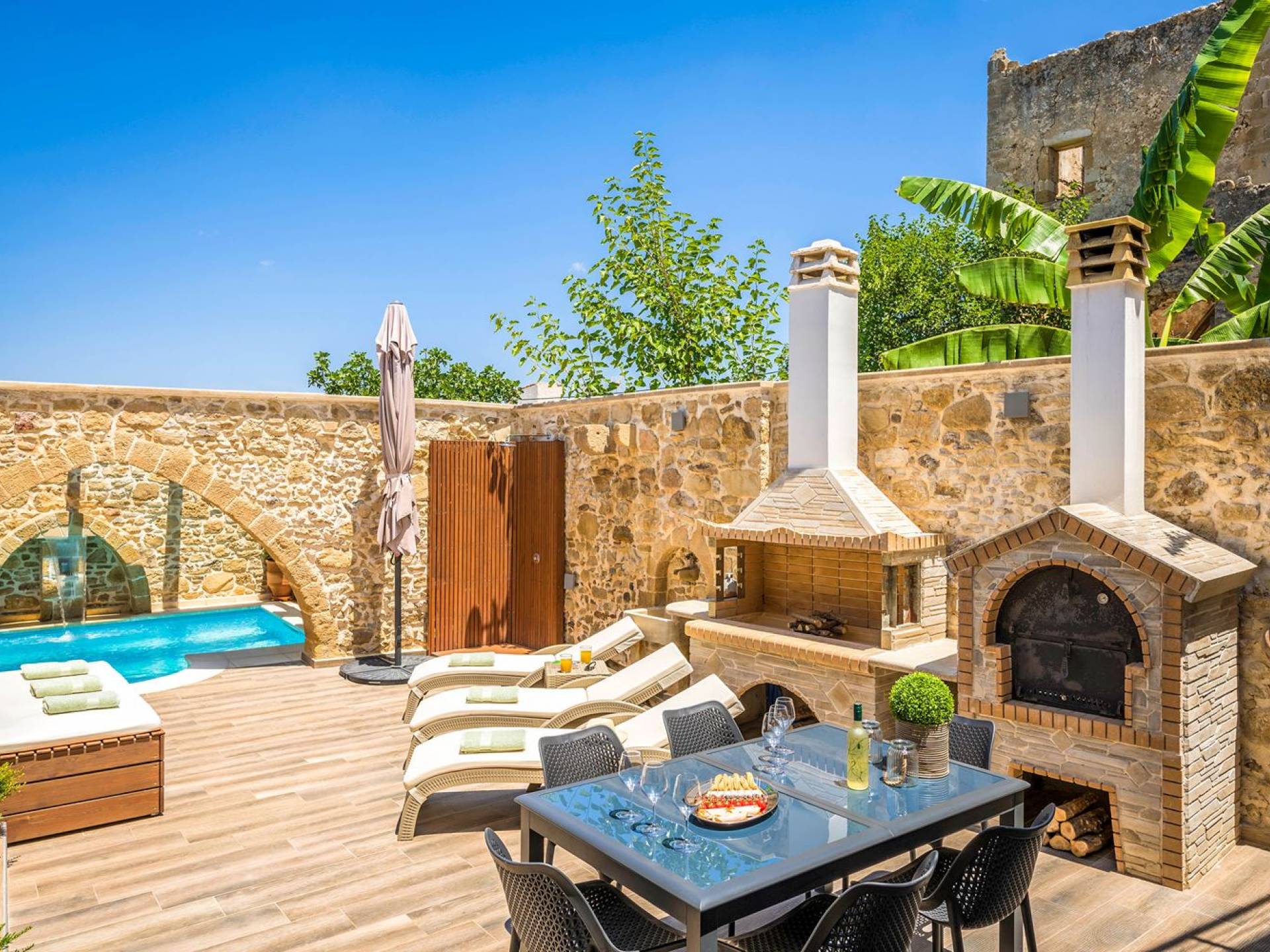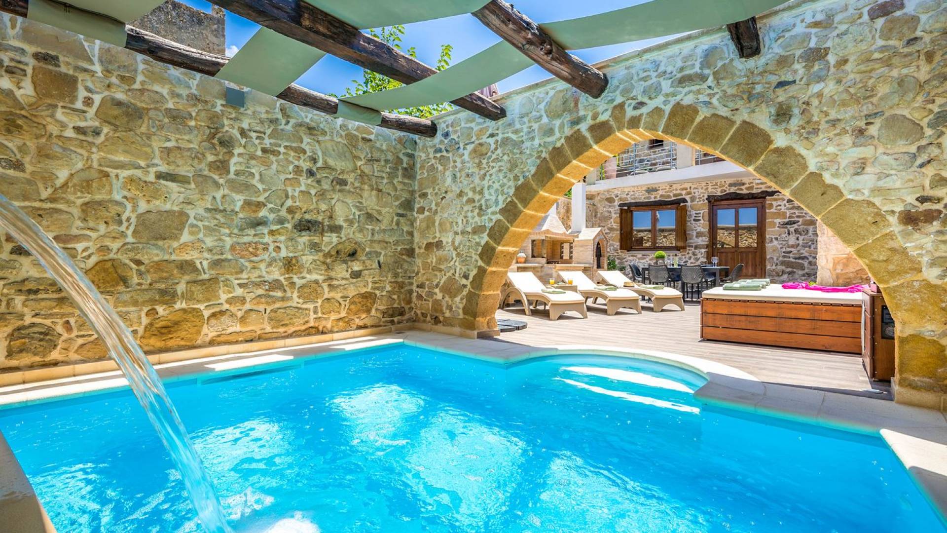 Η Villa D'oro είναι προσεκτική σε όλες τις ανάγκες σας, προσφέροντας στιγμές αναζωογόνησης στη θερμαινόμενη πισίνα της με ένα ποτήρι κρασί στο φως των κεριών ή μια φρέσκια βουτιά στην εξωτερική πισίνα με τον καταρράκτη της. Αφήστε τον εαυτό σας να χαλαρώσει υπό τον ήχο των τζιτζικιών και του γάργαρου νερού και αφήστε έξω όλη τη φασαρία της καθημερινής ζωής. αυτό είναι το κομμάτι του παραδείσου σου. Ο πέτρινος φούρνος και η υπαίθρια τραπεζαρία με μπάρμπεκιου υπόσχονται αξέχαστες στιγμές με φίλους και οικογένεια.