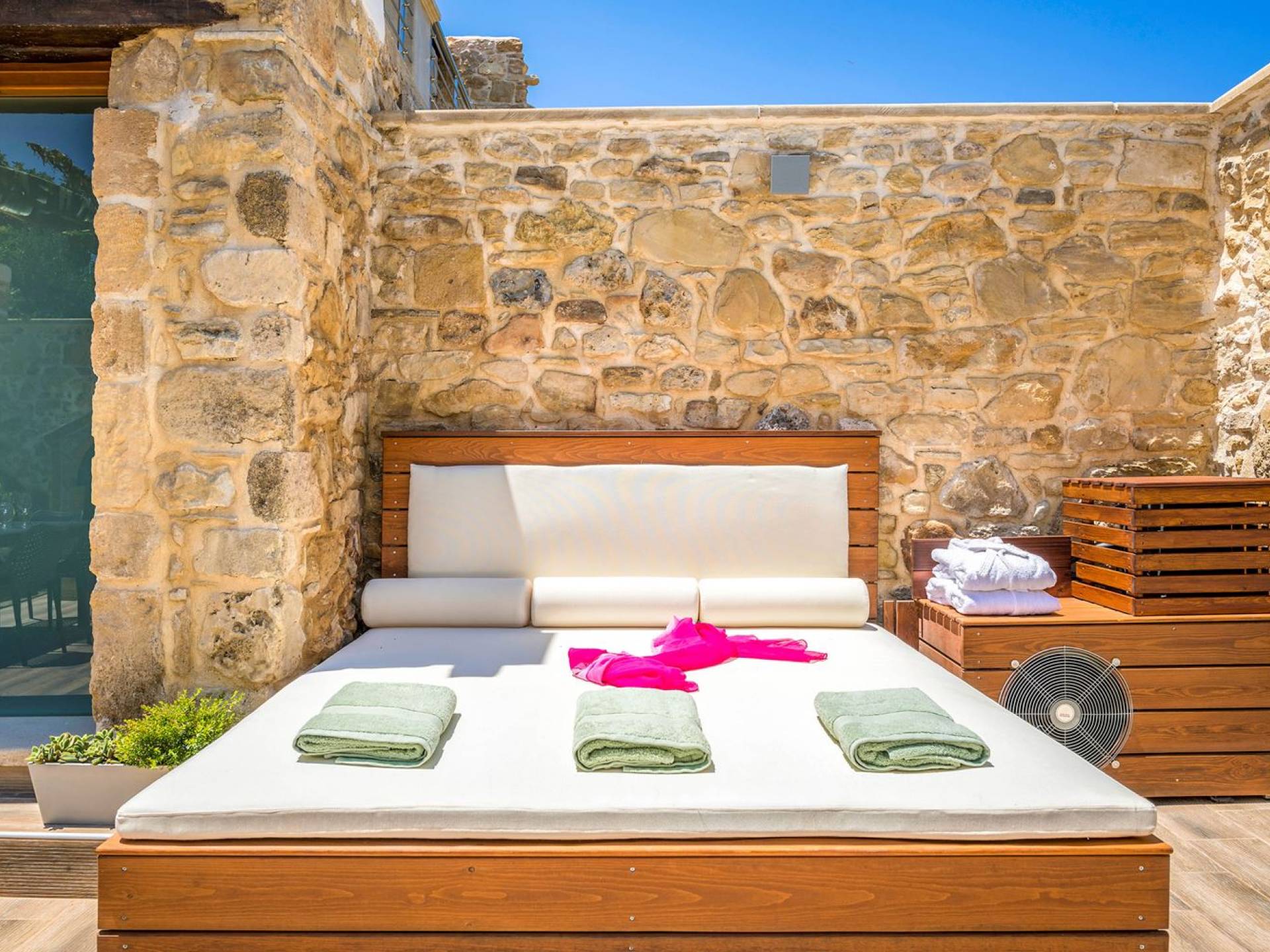 Αν αυτό που αναζητάτε είναι η πολυτέλεια και η ιδιωτικότητα με τα αγαπημένα σας πρόσωπα, τότε είστε έτοιμοι! Αυτό είναι το σπίτι σας μακριά από το σπίτι. Μη χάσετε την ευκαιρία να ζήσετε τις ονειρεμένες διακοπές σας στην Κρήτη, ένα από τα πιο παρθένα μέρη της Ελλάδας, όπου η διαμονή σας θα είναι συνώνυμη με τη φιλοξενία, τις υπέροχες μεσογειακές γεύσεις, τον ήλιο και το γαλάζιο της θάλασσας. Όλα ξεκινούν με το να ετοιμάσεις τη βαλίτσα σου και είσαι ένα κλικ μακριά από τον παράδεισο.