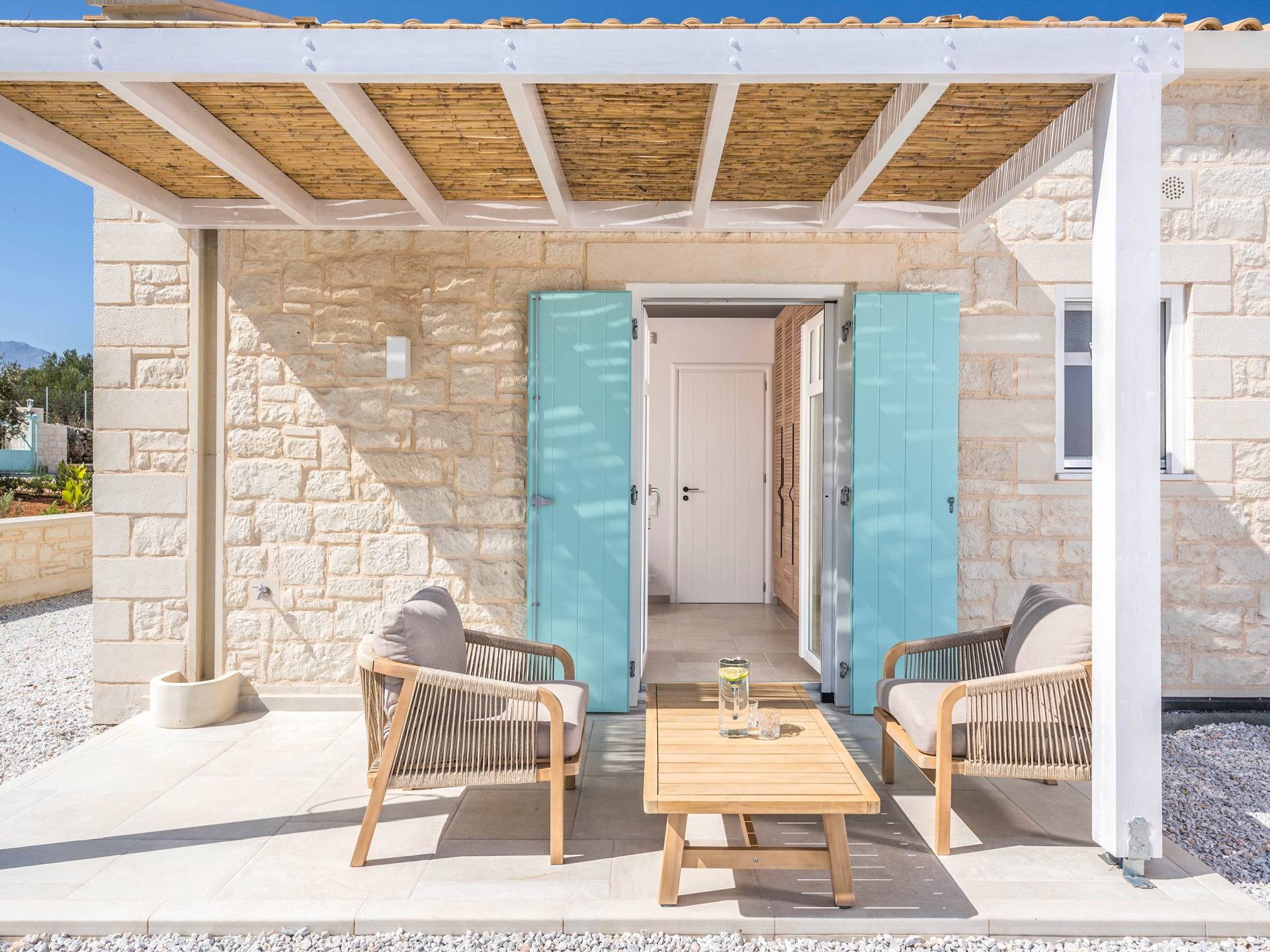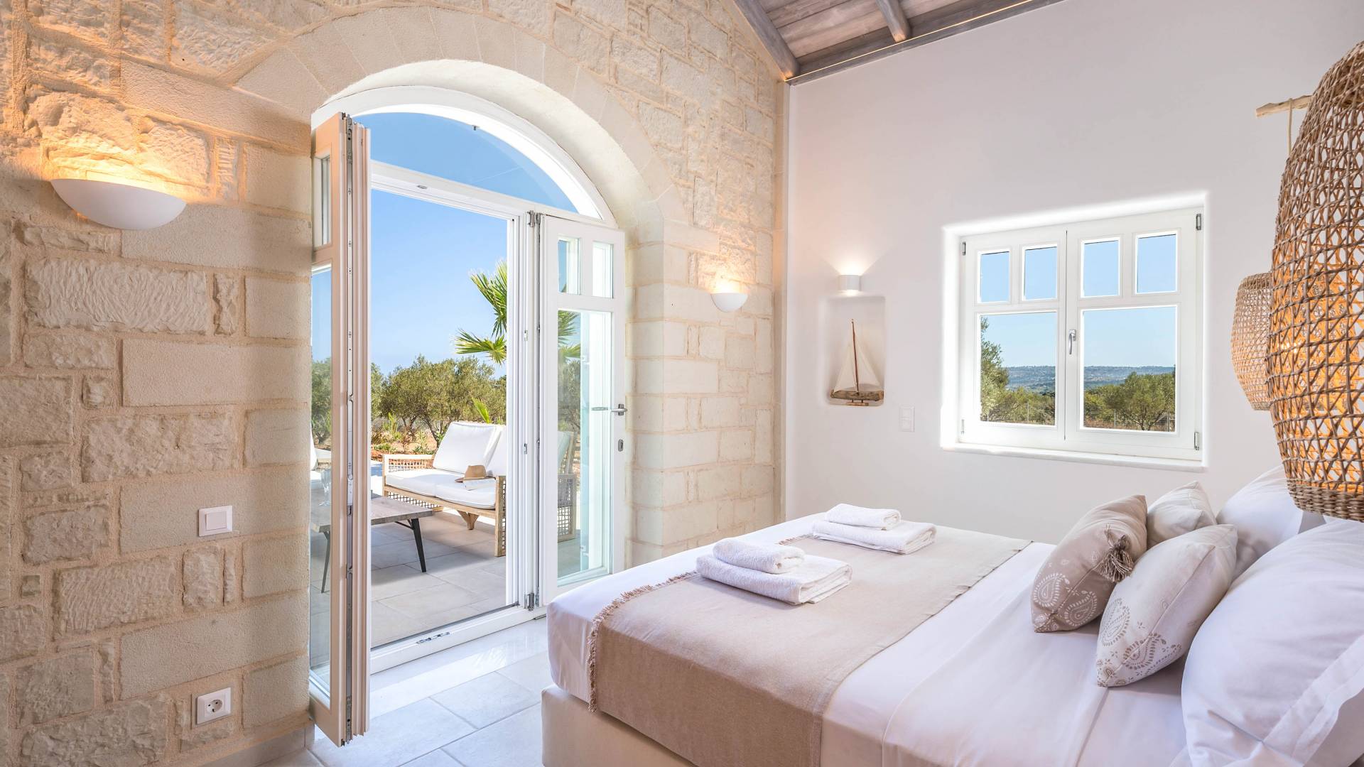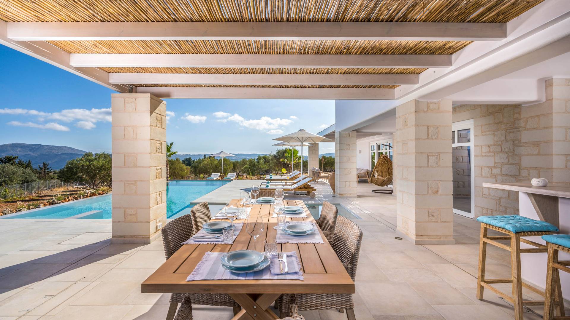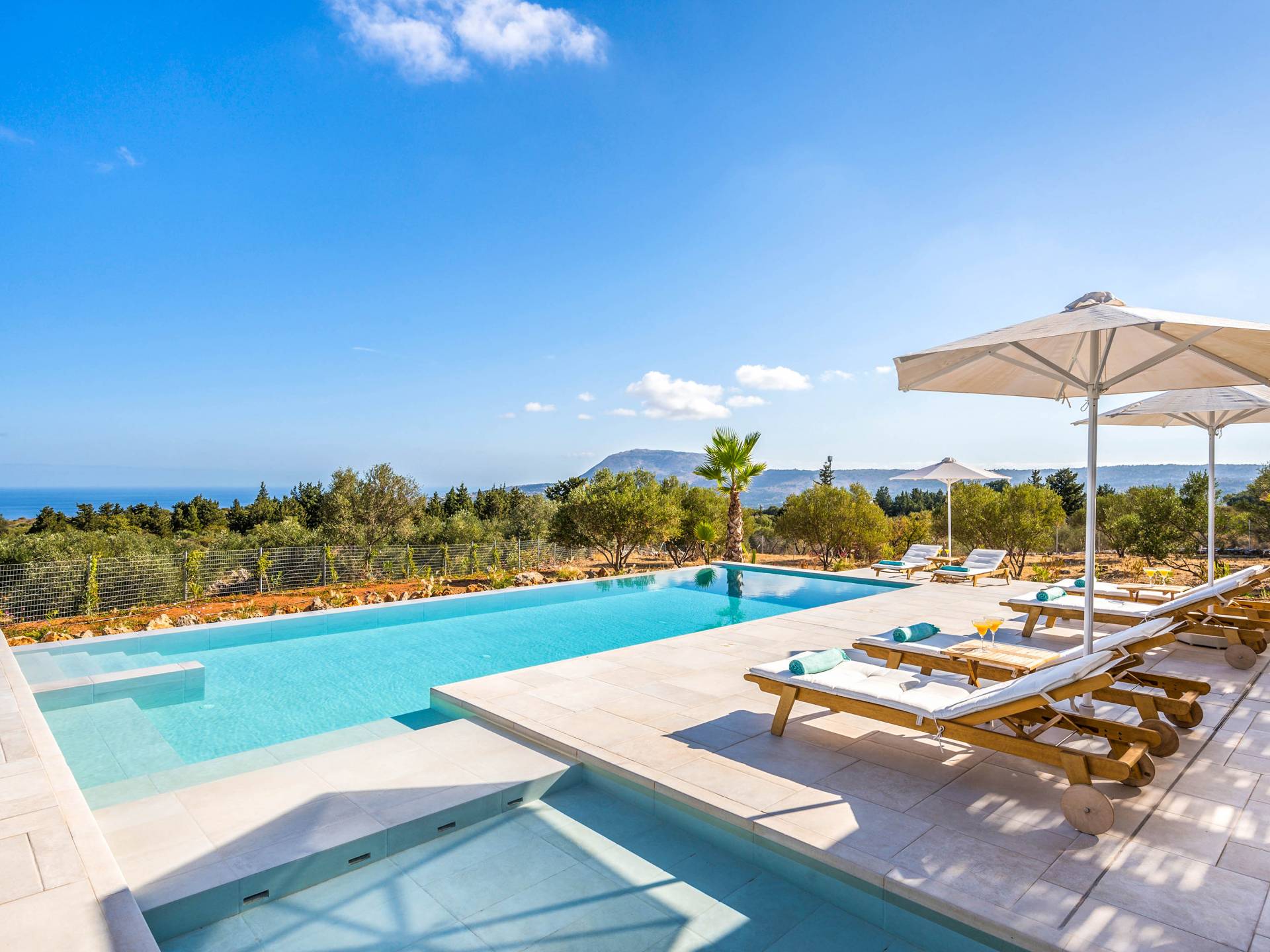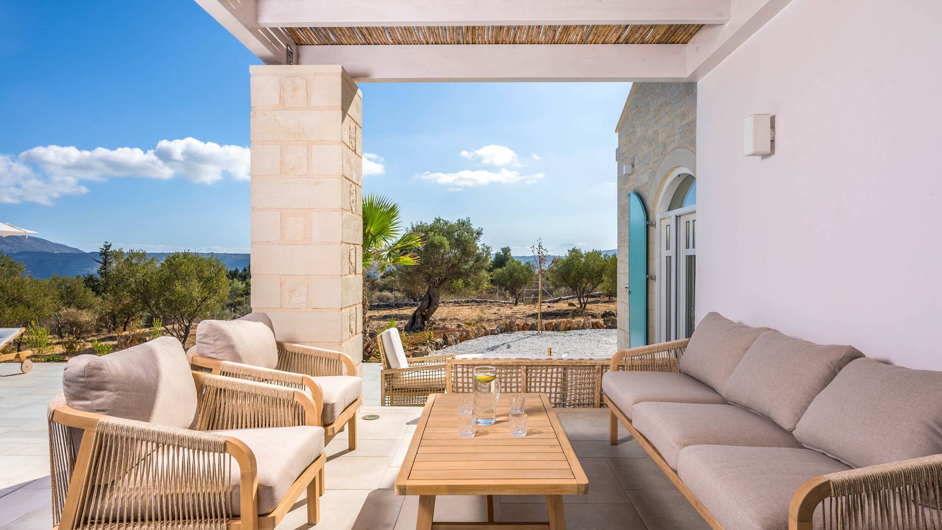 Villa Forever Crete - Everlong is a beautifully crafted, completely private luxury villa with three bedrooms, set within a 4,000 m² olive grove and offering breathtaking panoramic sea views. This radiant, airy retreat seamlessly blends traditional Cretan stone walls with elegant Cycladic influences.